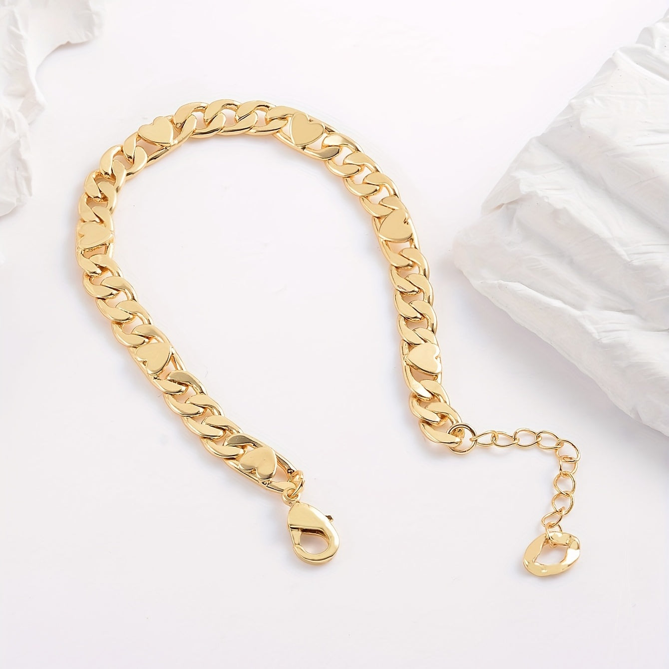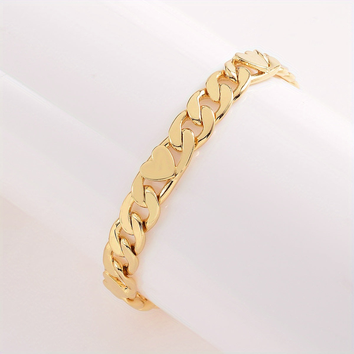 Add a touch of elegance to your look with this stunning 18K plated chunky golden chain bracelet. Features a heart clasp for added charm. Perfect for both men and women.