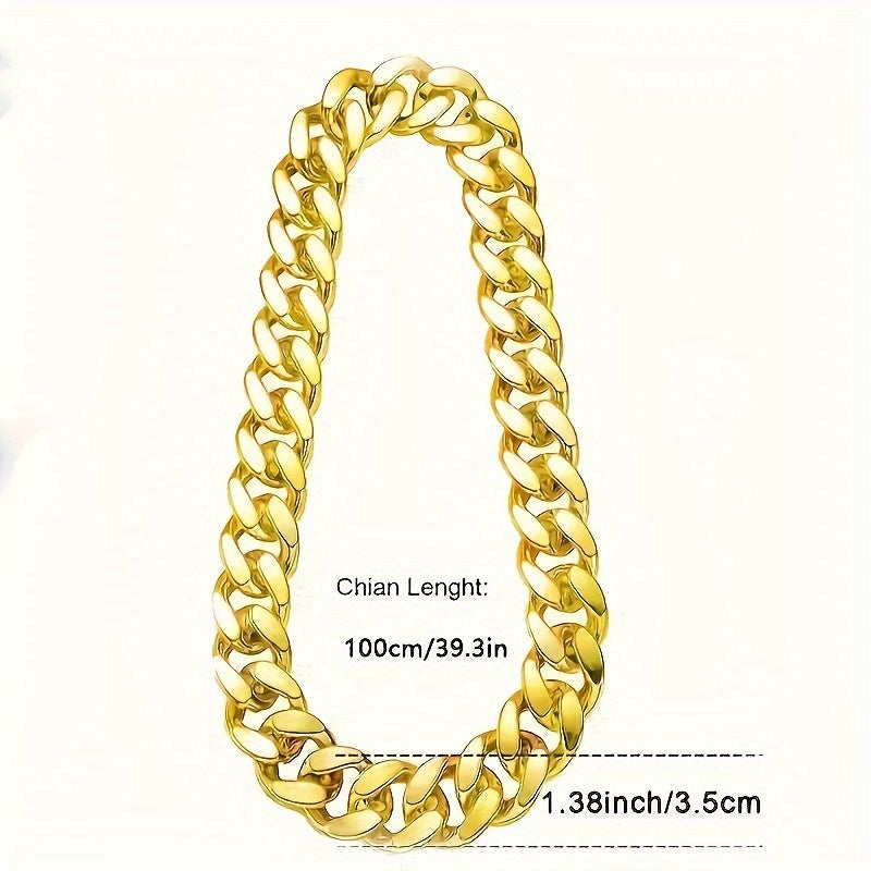 Durable golden chain necklace in bold hip hop style, perfect for parties and performances. Made of acrylic material.