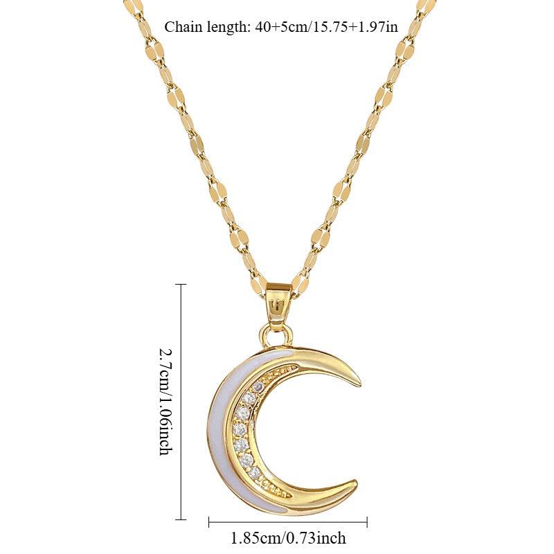 This stylish crescent moon necklace features a sparkling synthetic golden tone stainless steel chain. Perfect for daily wear or special occasions, it's a versatile accessory that makes a great gift year-round.