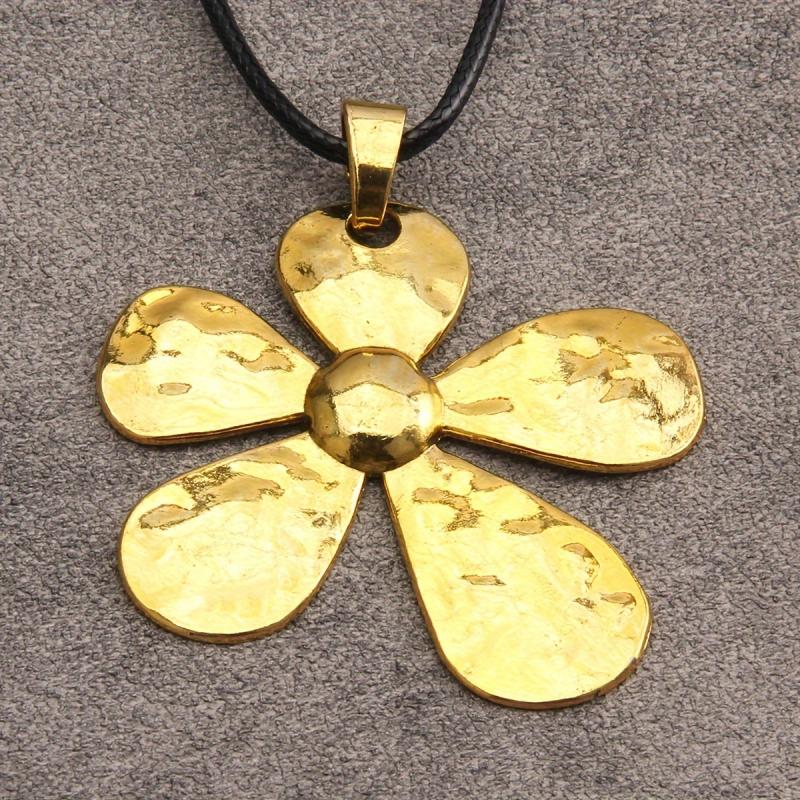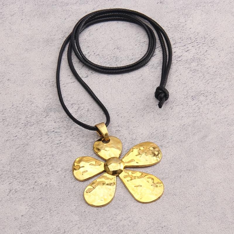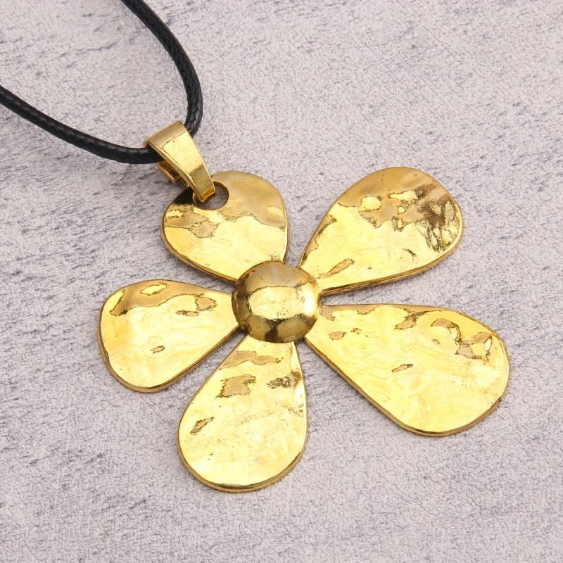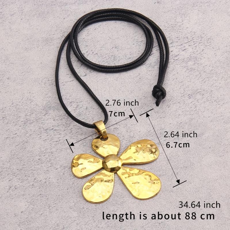 Golden Flower Pendant Long Necklace Middle Eastern Blingbling Unisex Necklace