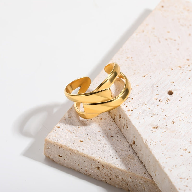 Elevate your style with this stunning Golden Glossy Open Adjustable Ring. Crafted from 18K plated stainless steel, this hand jewelry is a must-have accessory for women.