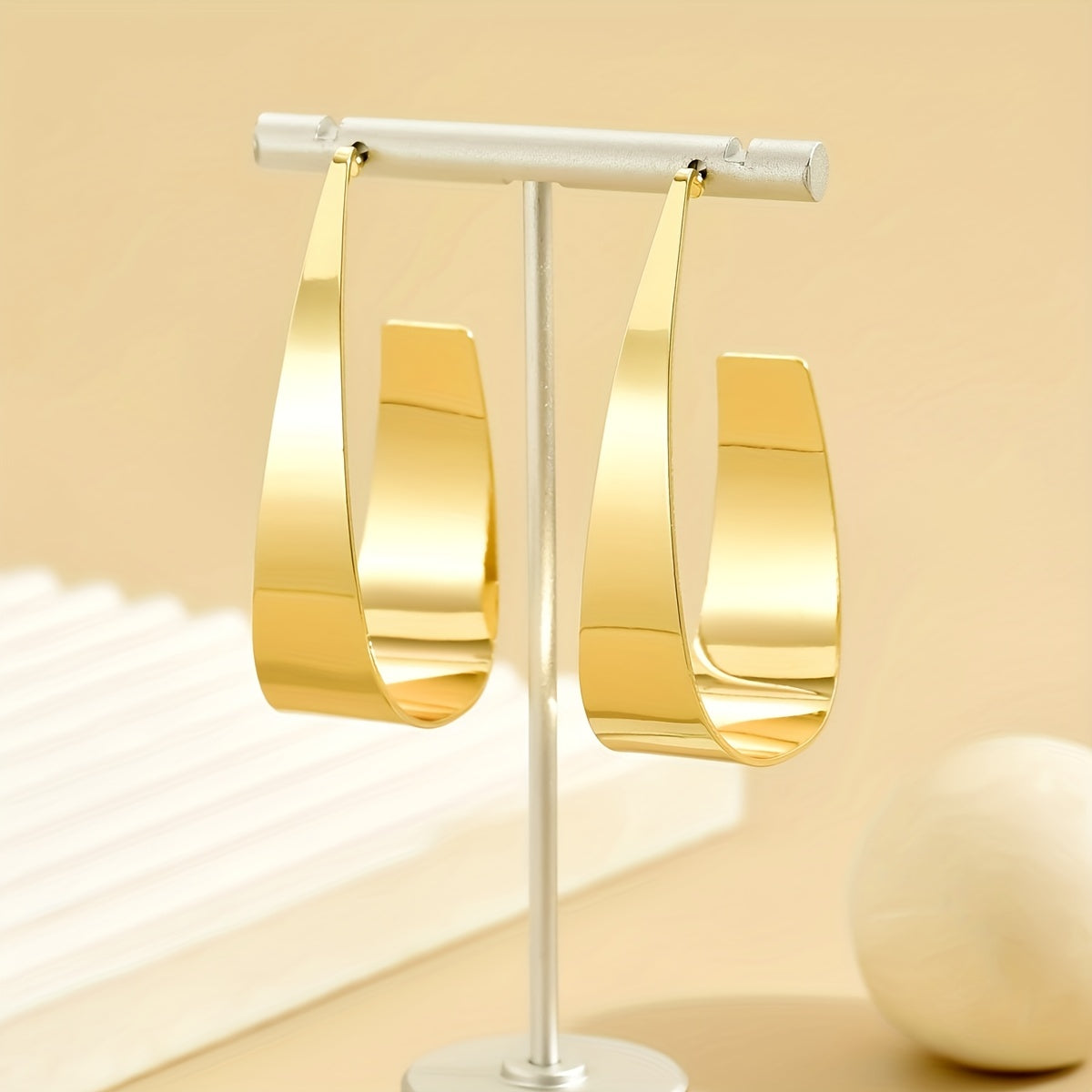 Add a touch of glamour to your outfit with these leisure style hoop earrings. Made of iron with a 14K gold plating, these earrings are perfect for daily casual wear or special occasions.