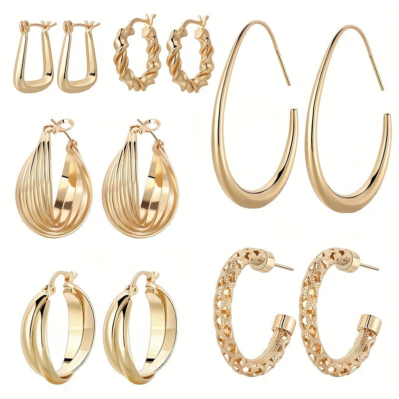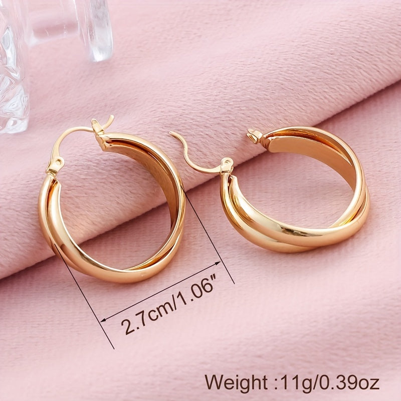 Golden Hoop Earrings Minimalist Style 14K Plated Jewelry Gift