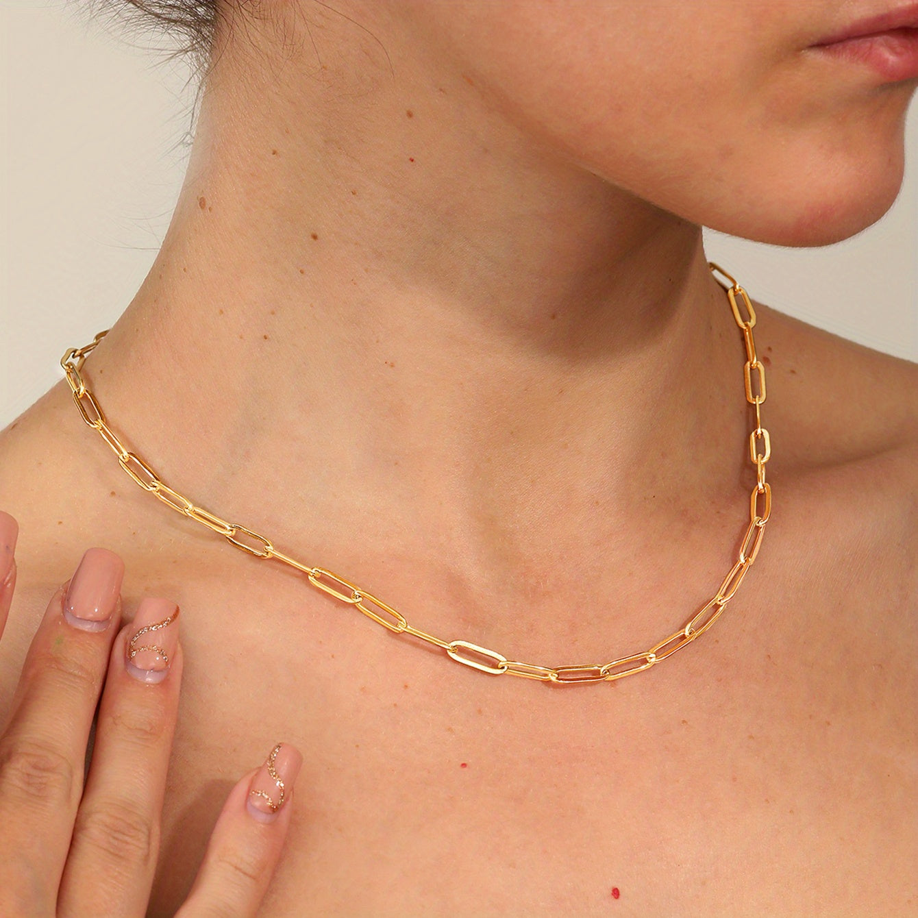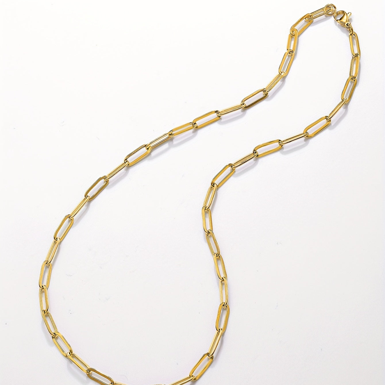 Add a touch of elegance to your outfit with this golden paperclip chain necklace. Perfect for daily wear, holidays, and vacations.