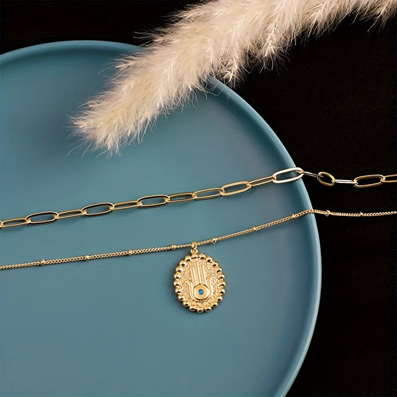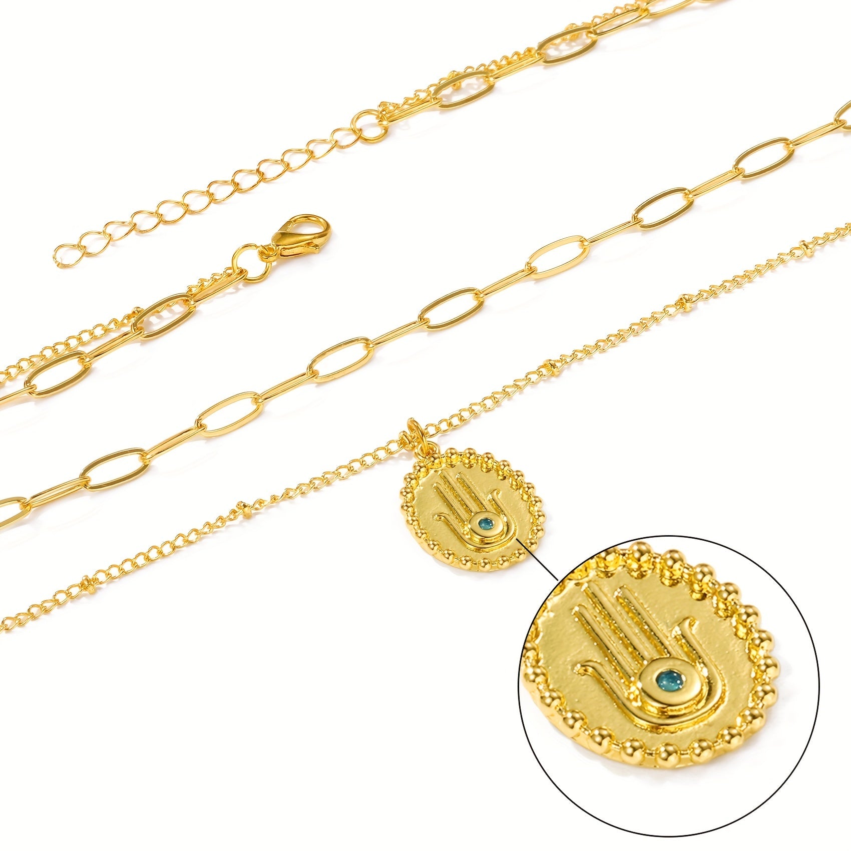 Stay stylish and protected with this evil's eye lucky amulet necklace featuring a hamsa hand eye pendant on a trendy paperclip chain.