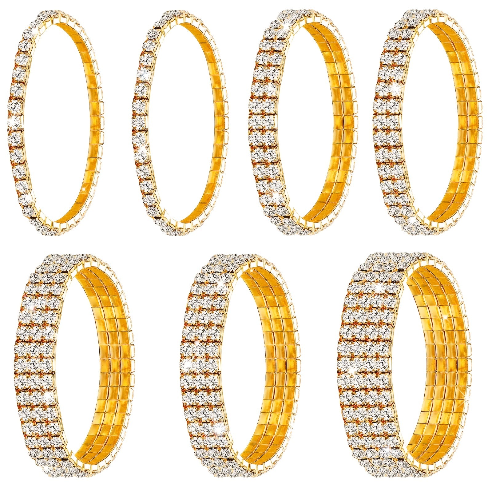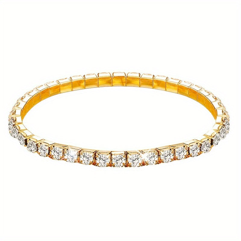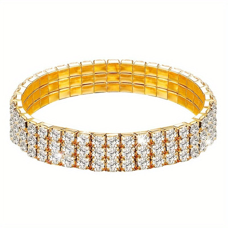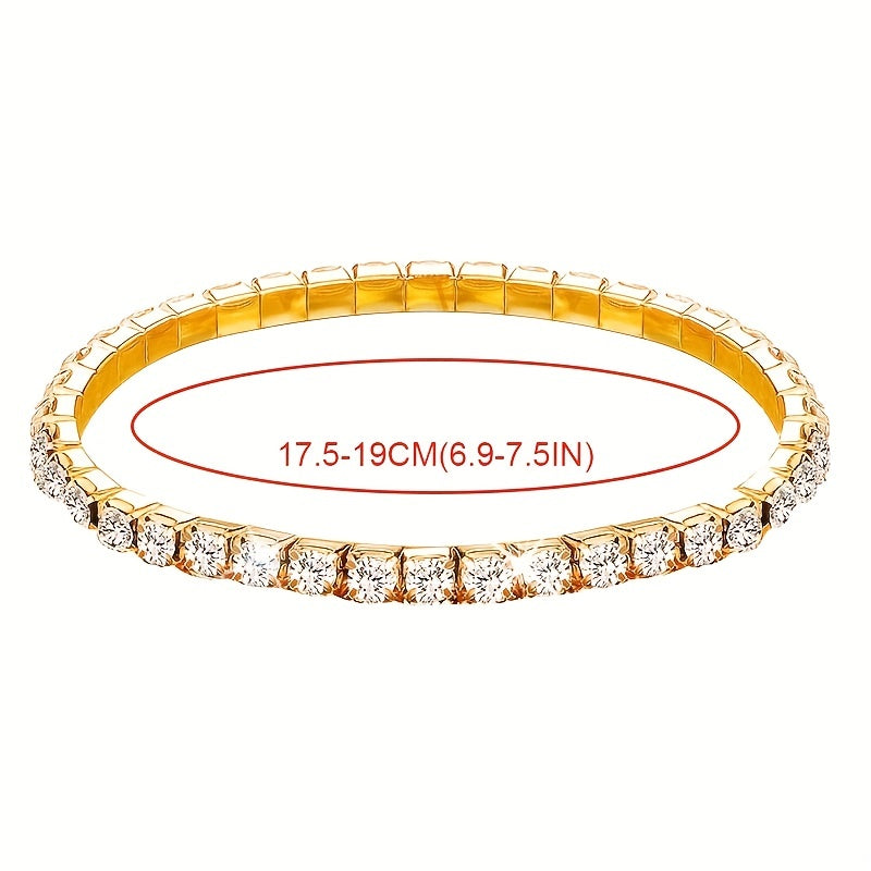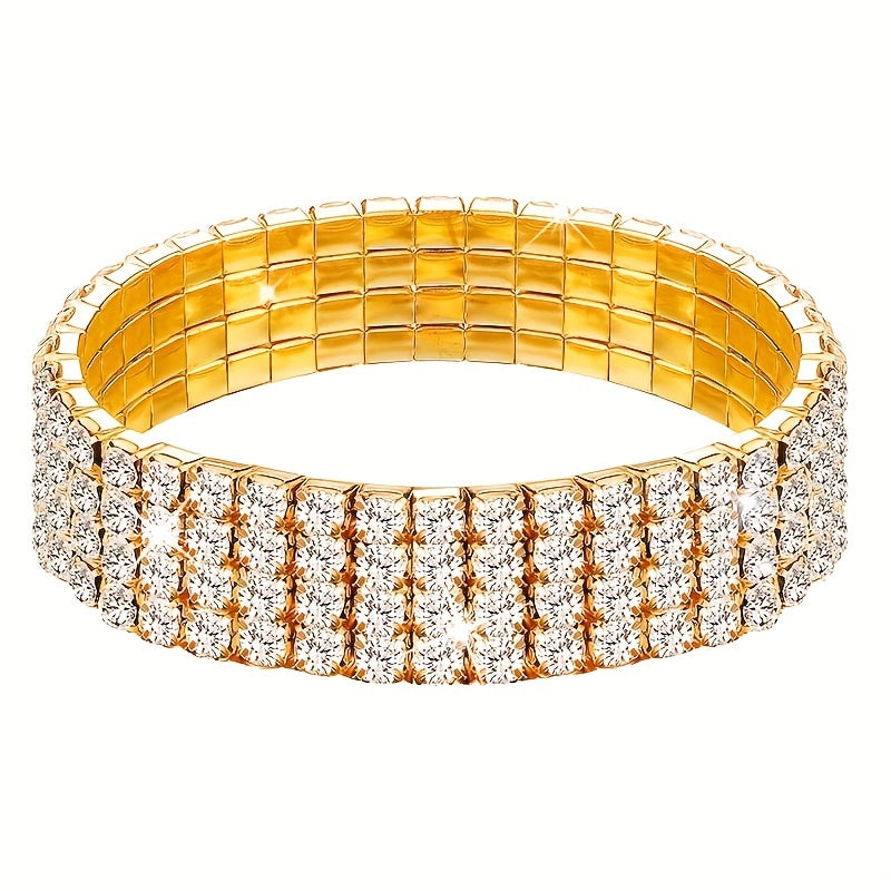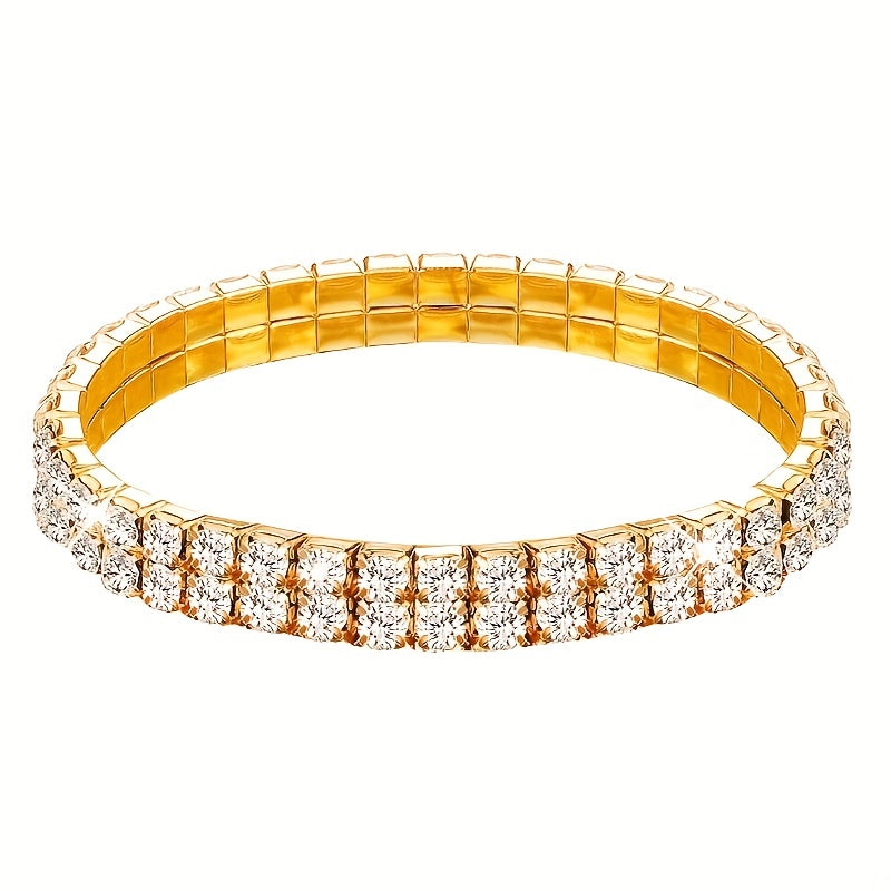 Add a touch of elegance to your look with this stunning golden rhinestone stretch bracelet. The beautiful design and sparkling rhinestones make it a perfect accessory for any occasion.
