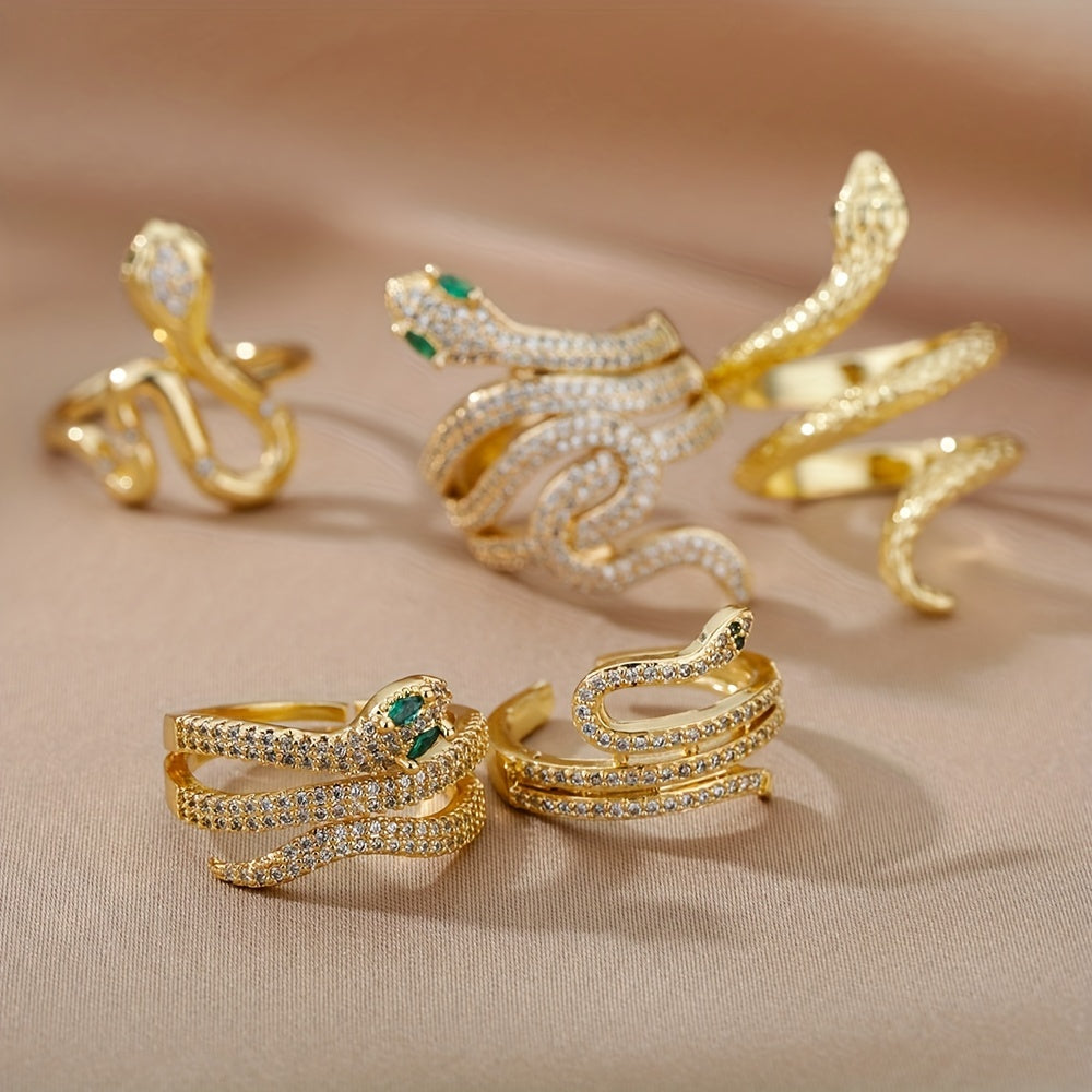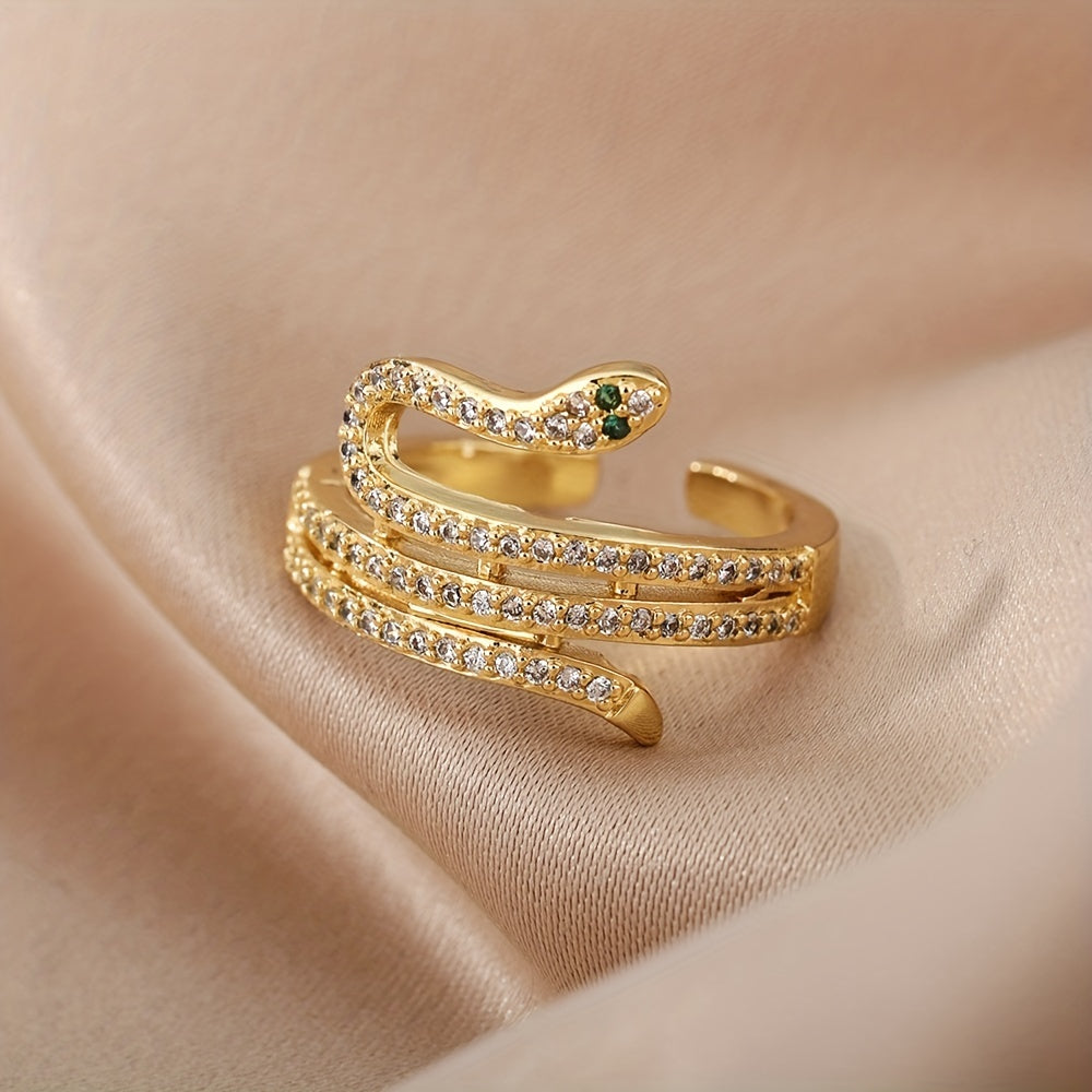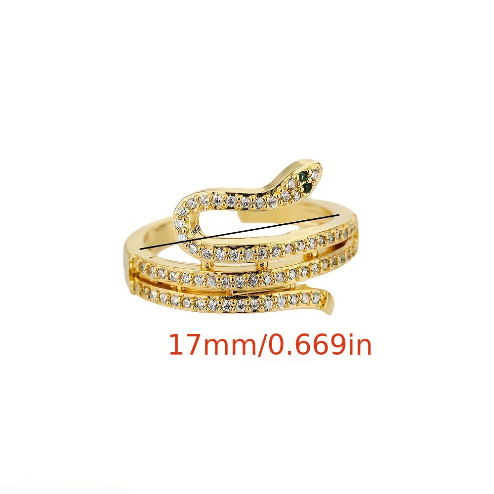 Elevate your look with this stunning Golden Snake Ring. It is 18k plated and inlaid with zircon, making it a perfect accessory for daily outfits or party styles.