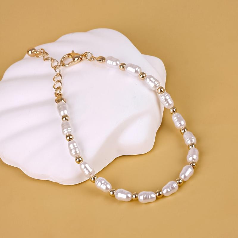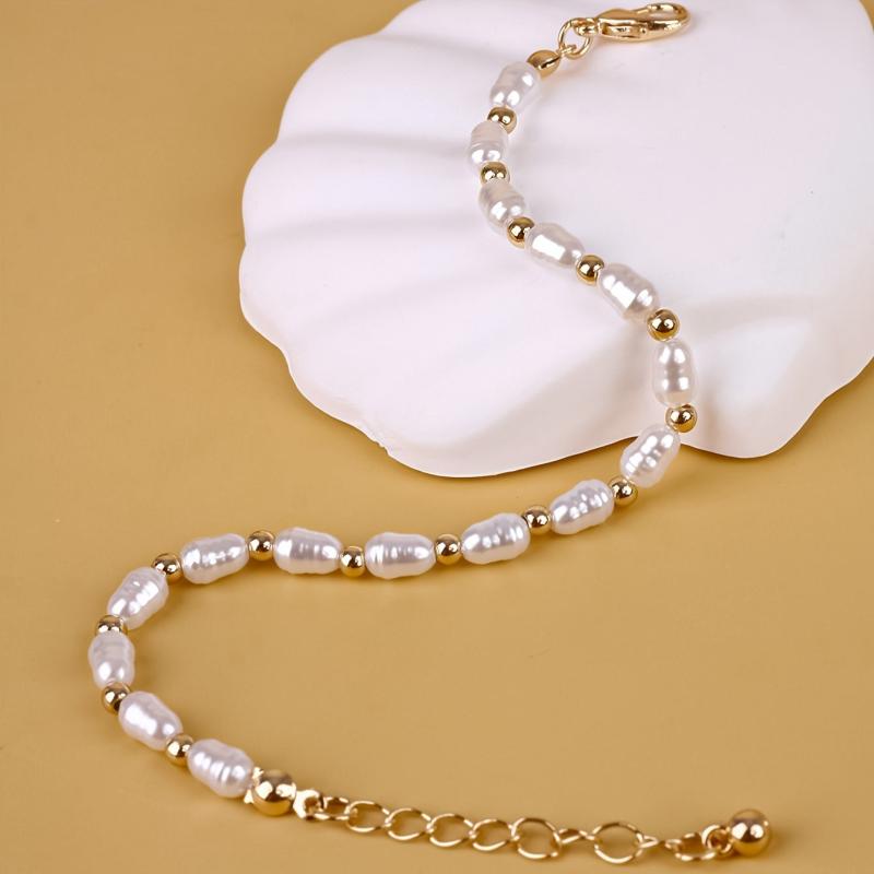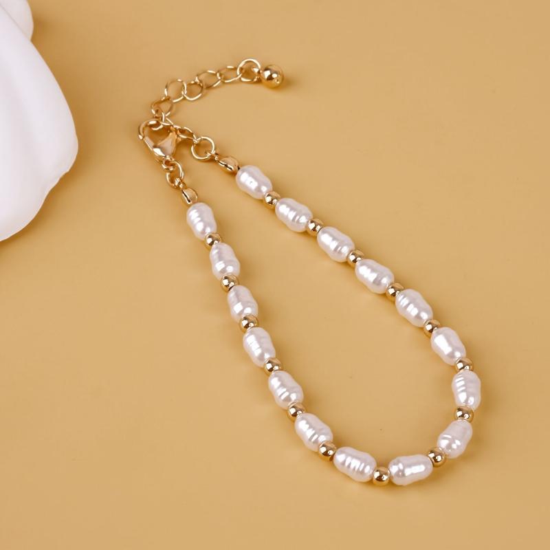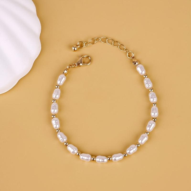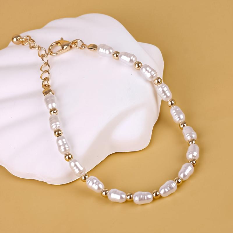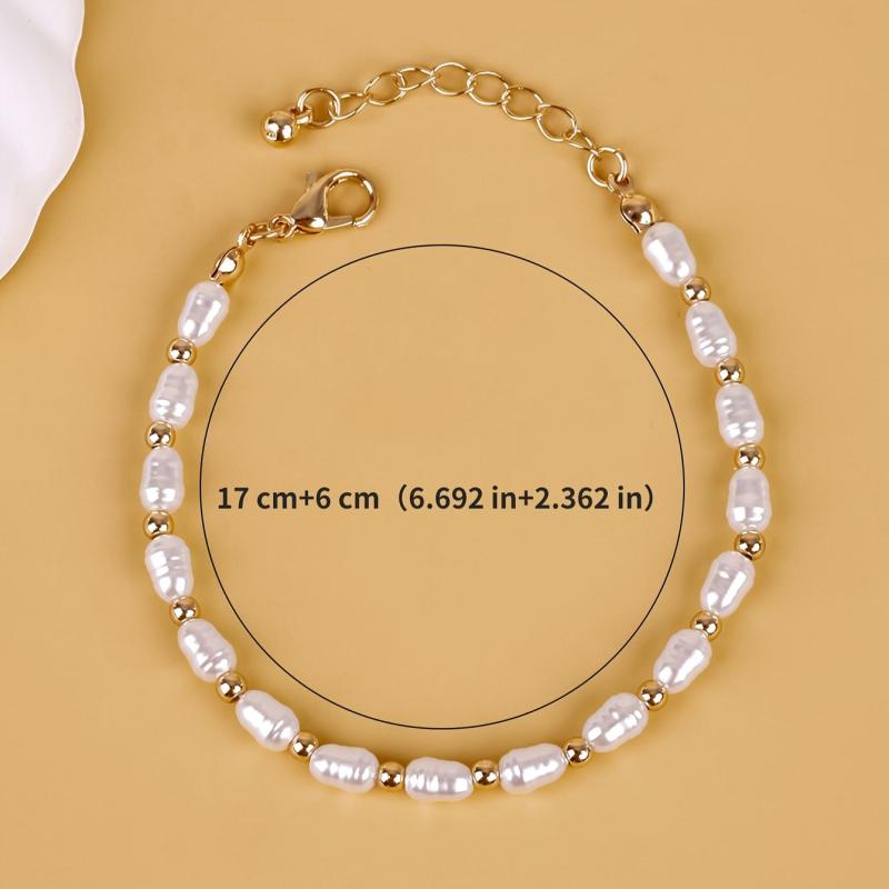 This elegant bracelet features faux pearls with a golden tone finish. It is perfect for everyday wear or as a gift for women, especially mothers. This seasonal and minimalist jewelry piece is versatile and stylish.