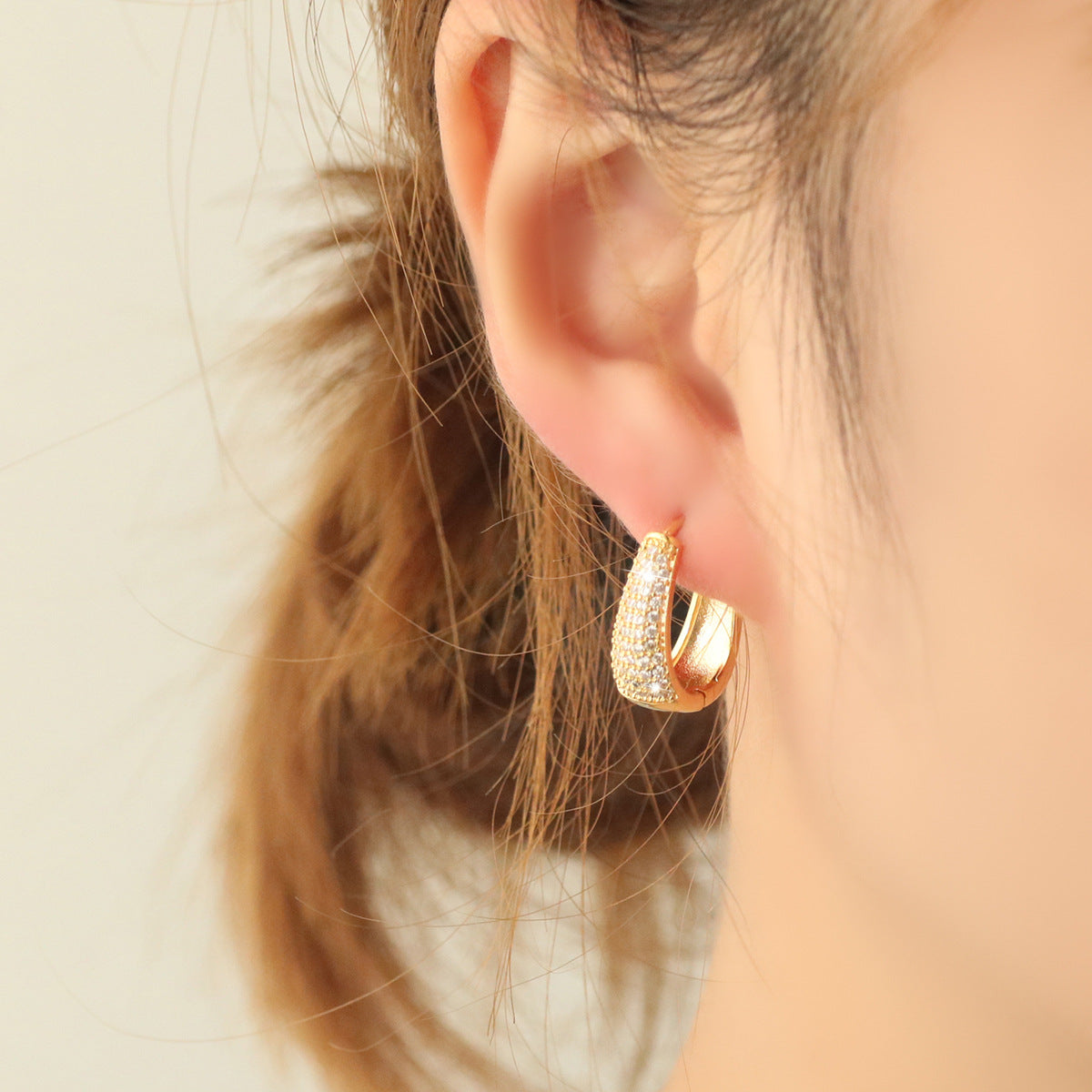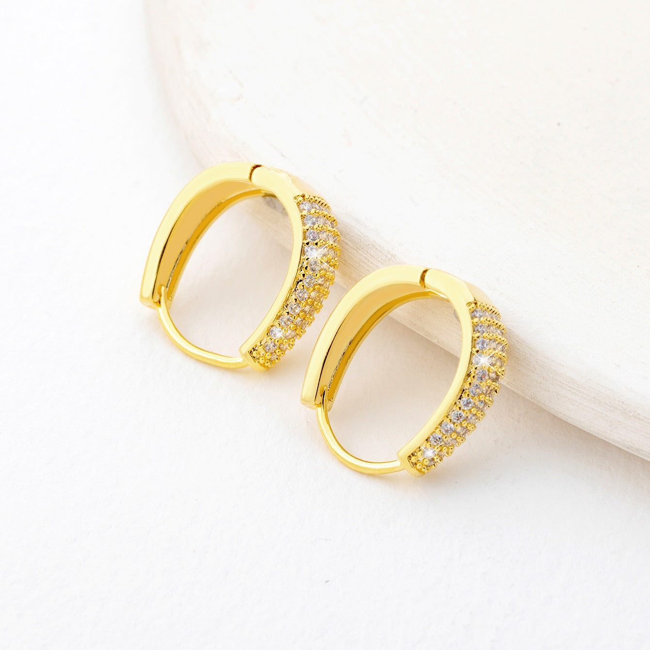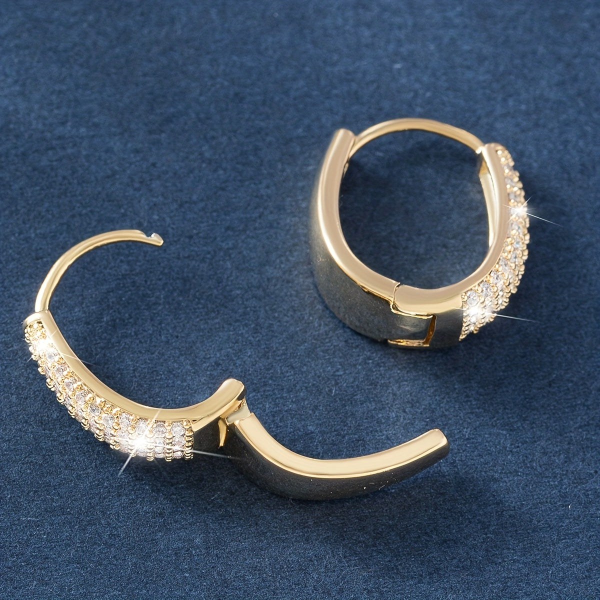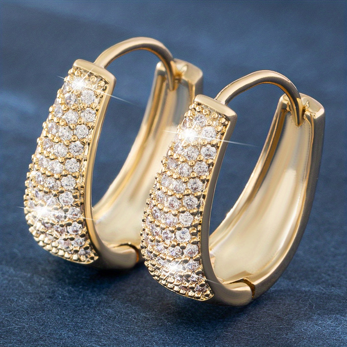 Add glamour to your look with these stunning golden U-shaped zirconium ear buckles. Perfect for any occasion.