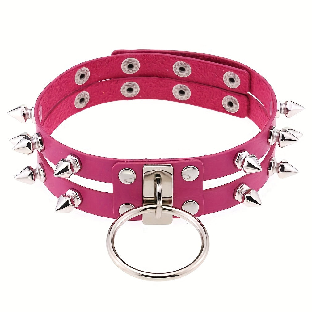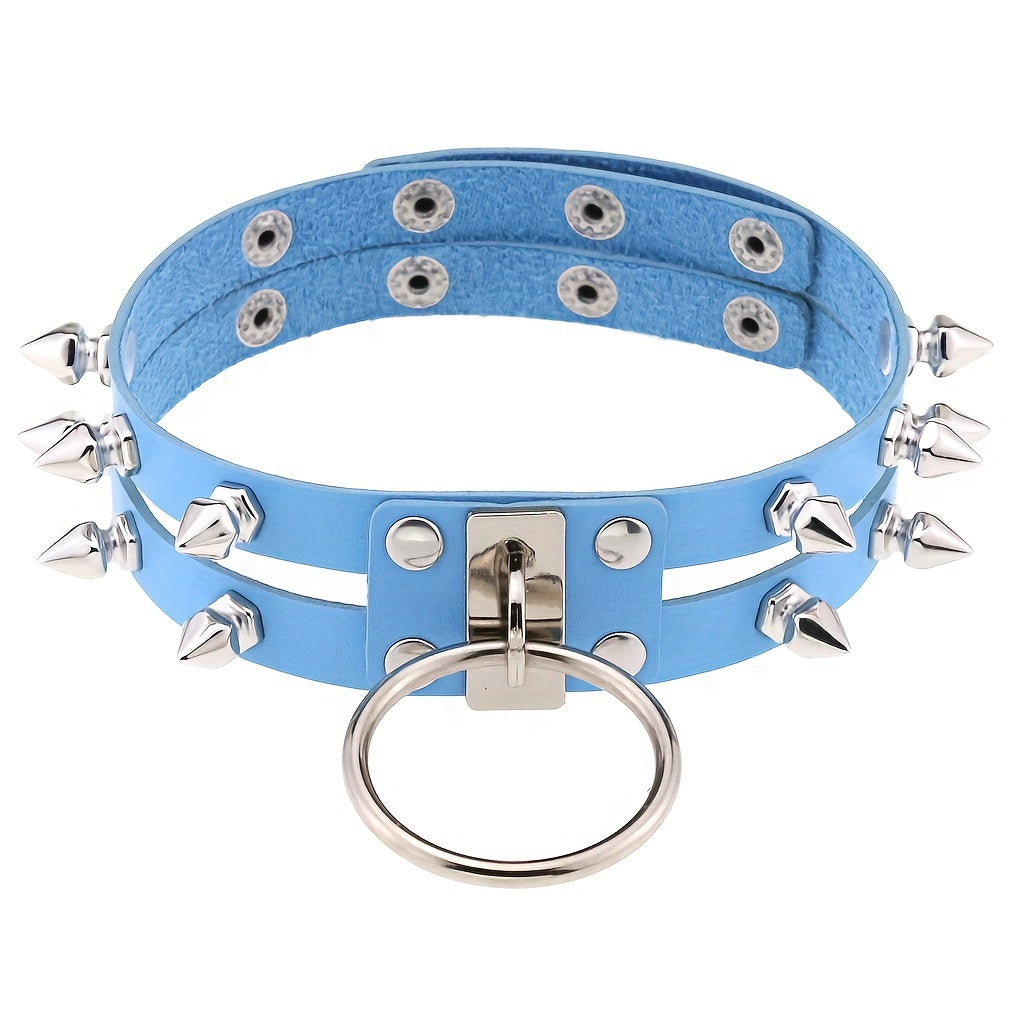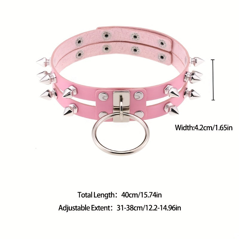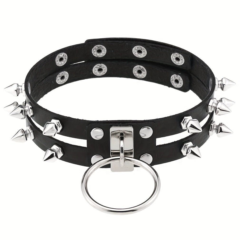 Rock the punk style with this Y2K inspired PU leather choker collar adorned with rivets and spikes. Perfect for making a bold statement.