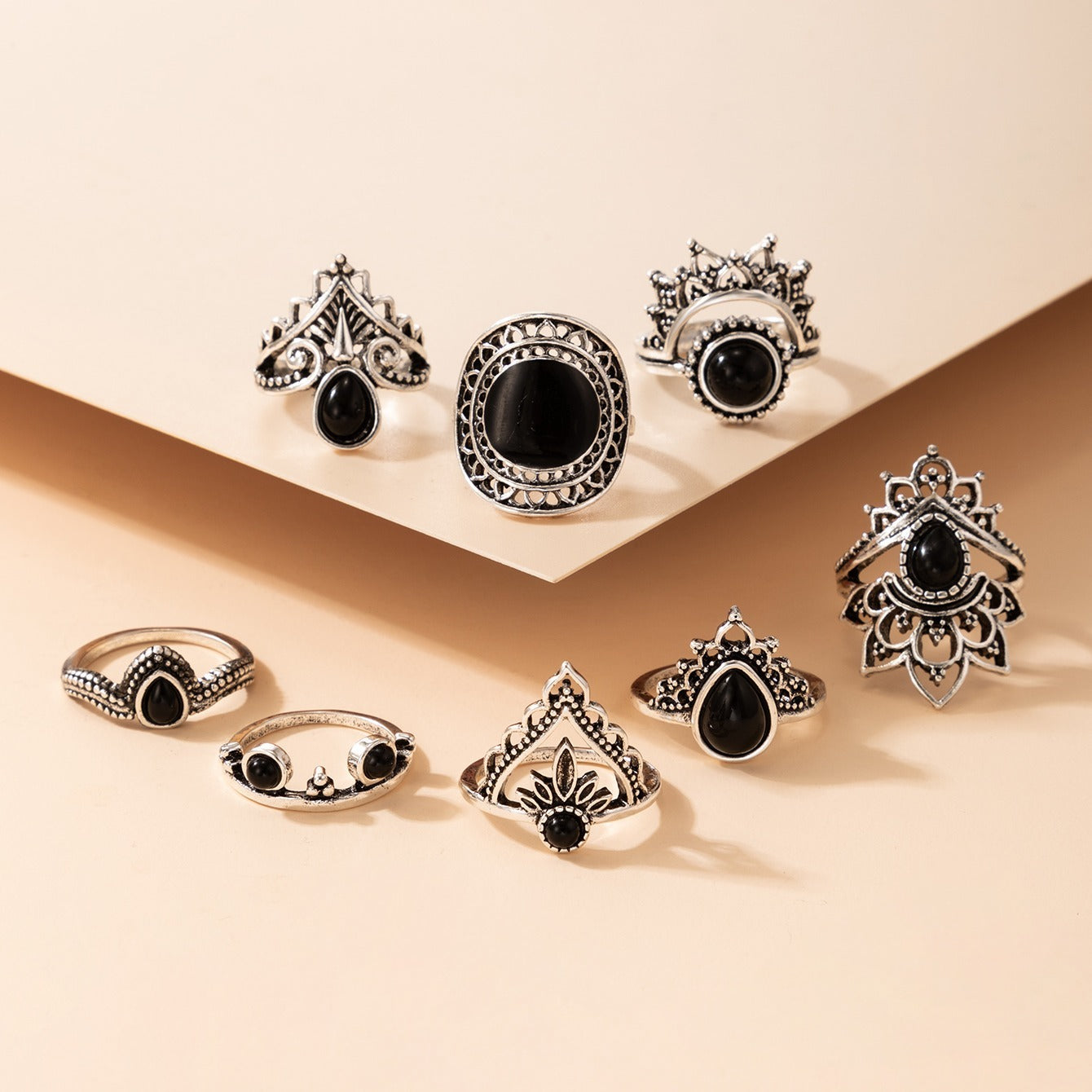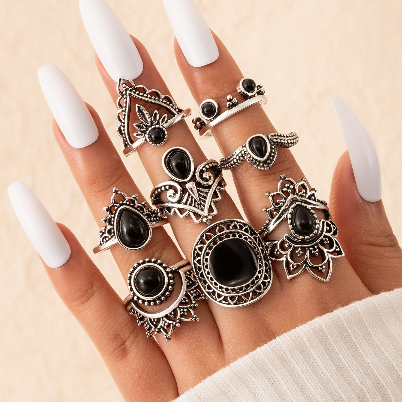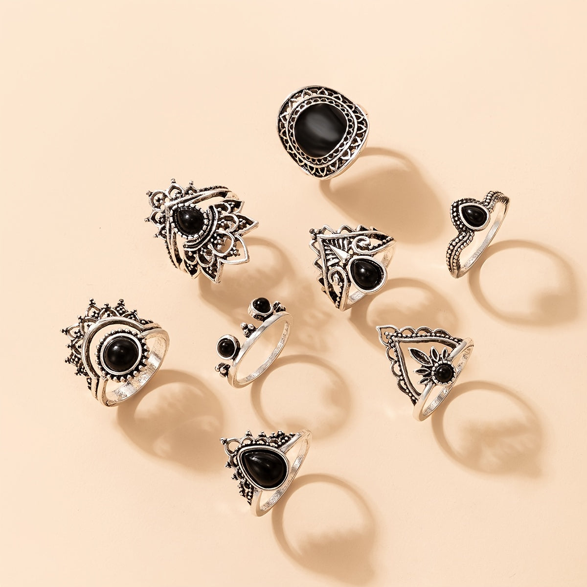 Embrace a touch of gothic style with this set of 8 geometric knuckle rings designed for women and girls. The irregular hollow design adds edginess to any outfit.
