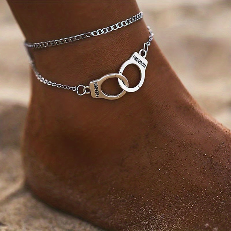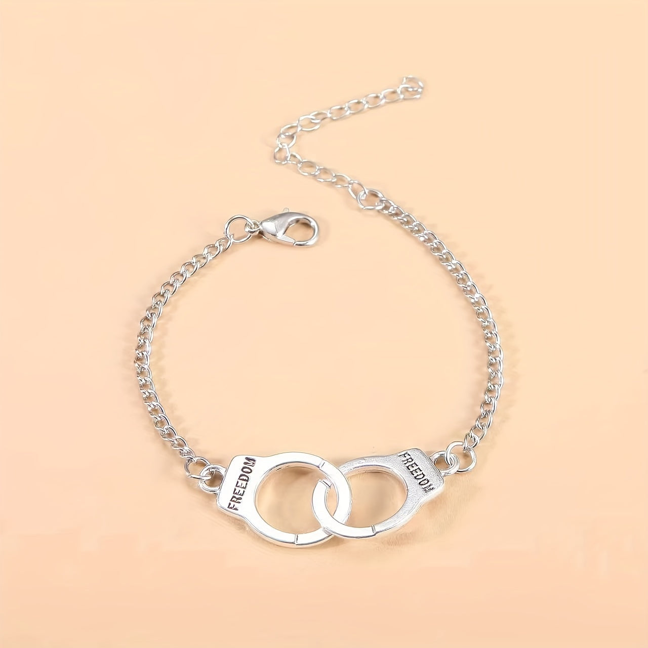 Express your freedom with this versatile Gothic handcuff chain jewelry set. Perfect for adding a touch of edgy style to any outfit.