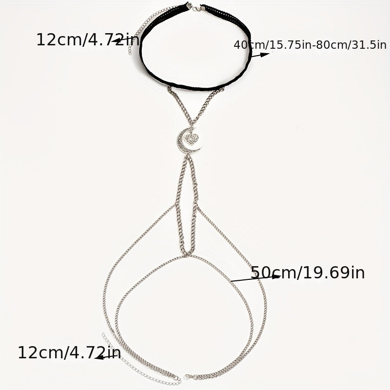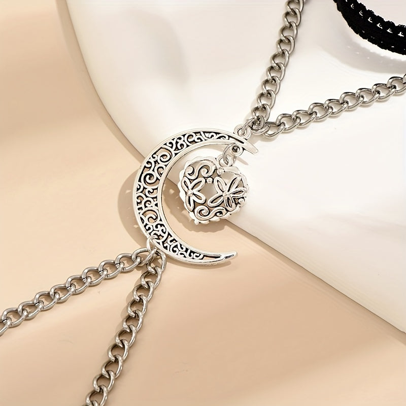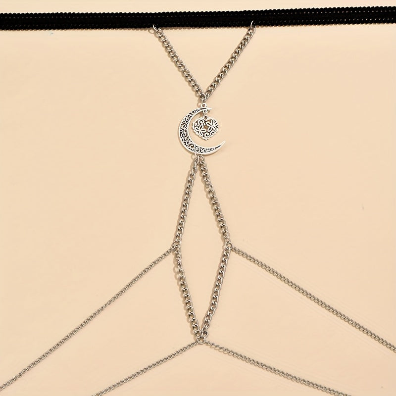 Enhance your Gothic look with this vintage leg chain featuring a moon and love heart shape pendant. Perfect for adding a touch of mystery and style to your outfit.