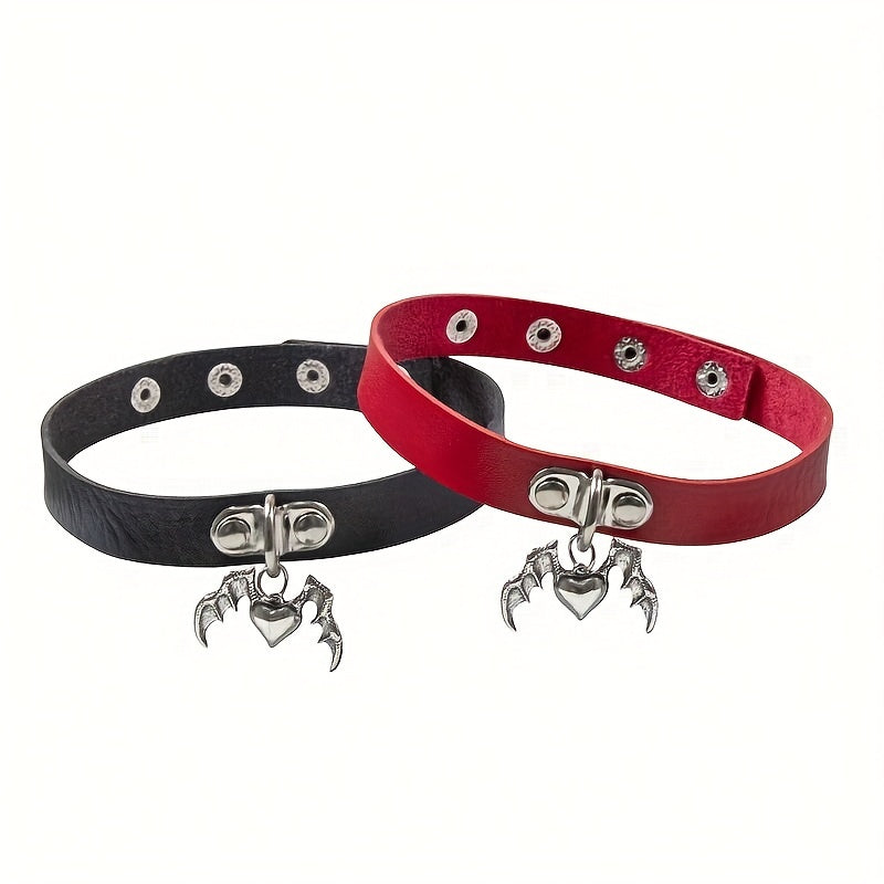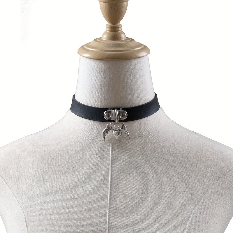 This punk style collar choker features intricate design with love wings, made of high-quality PU leather. Perfect for Halloween parties or gothic fashion lovers.