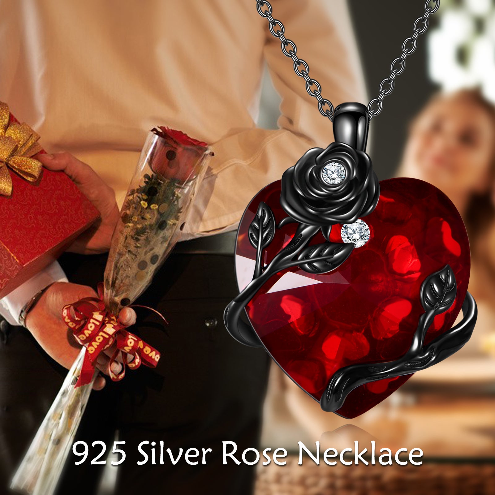 Elegant rose pendant necklace made of 925 sterling silver, perfect for Halloween Gothic party or Christmas. Enhance your style with this stunning piece of jewelry.