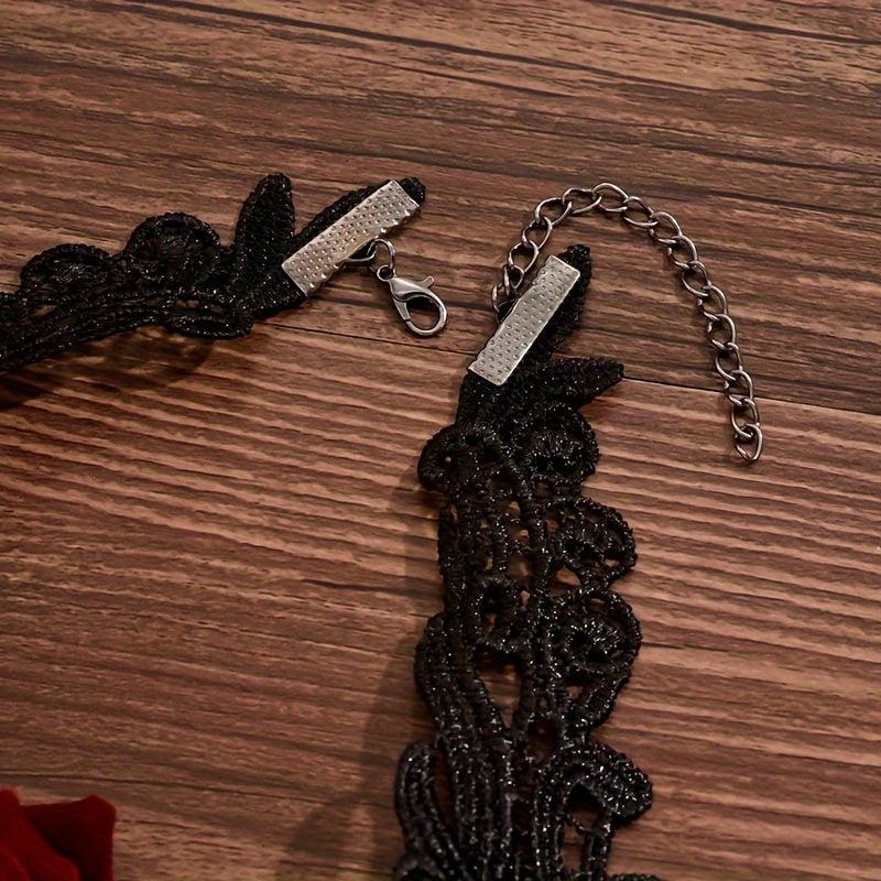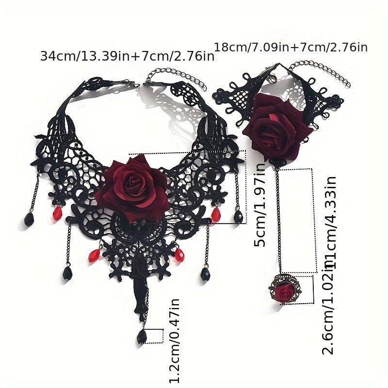 This 2-piece set features a gothic punk style with openwork lace flower design. It includes a bracelet and necklace for women.