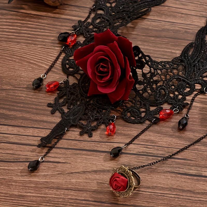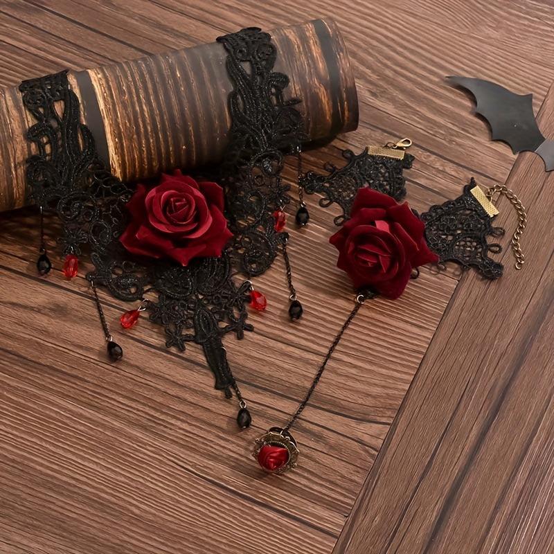 Gothic Punk Lace Flower Bracelet & Necklace Set