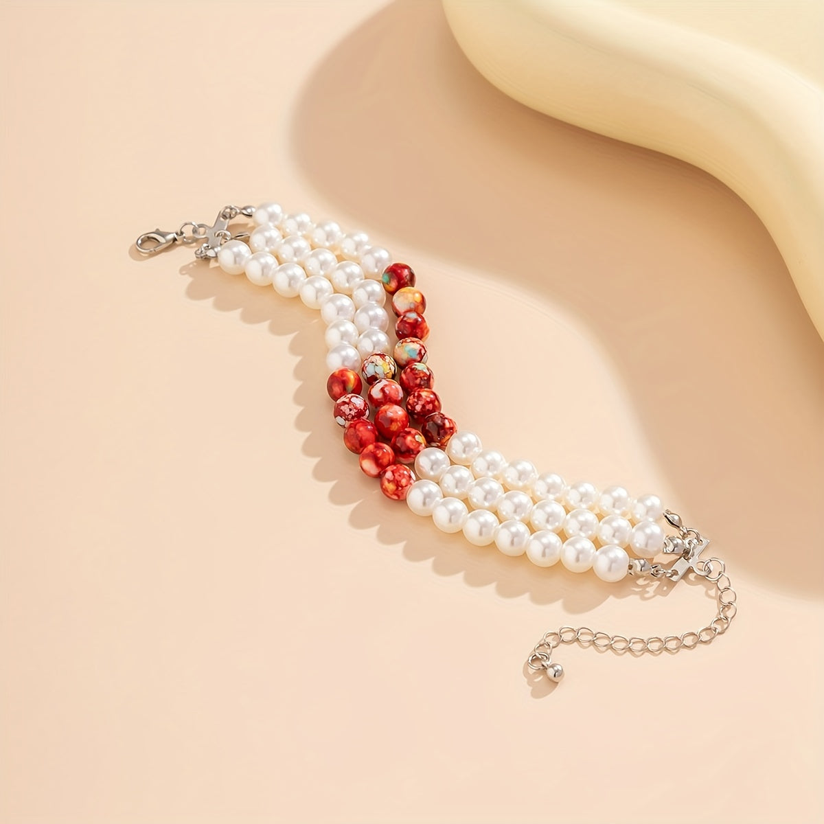Embrace your Halloween spirit with this Gothic Style Blood Pattern Bracelet featuring tassel and faux pearls for a unique and edgy look.