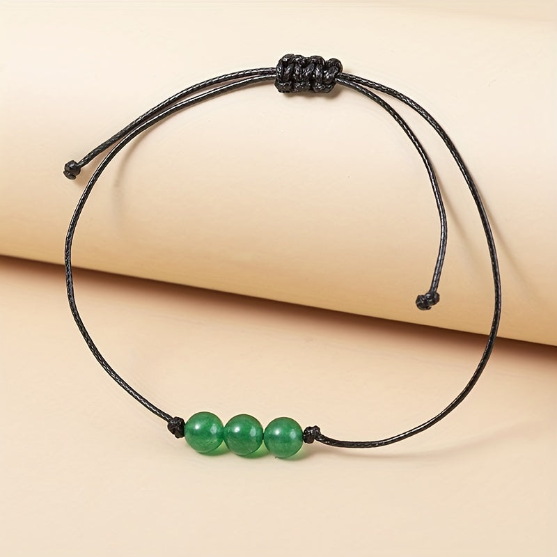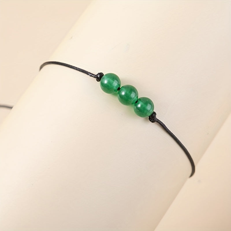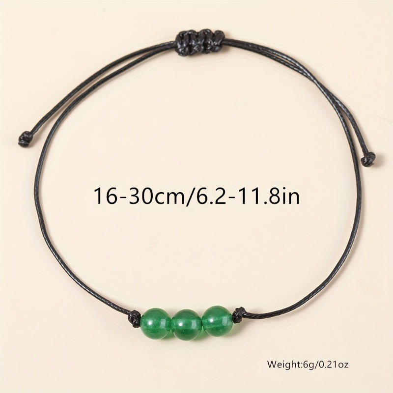 This exquisite bracelet features green crystal glass beads strung on a dainty string. Perfect for adding a touch of elegance to your hand jewelry collection.