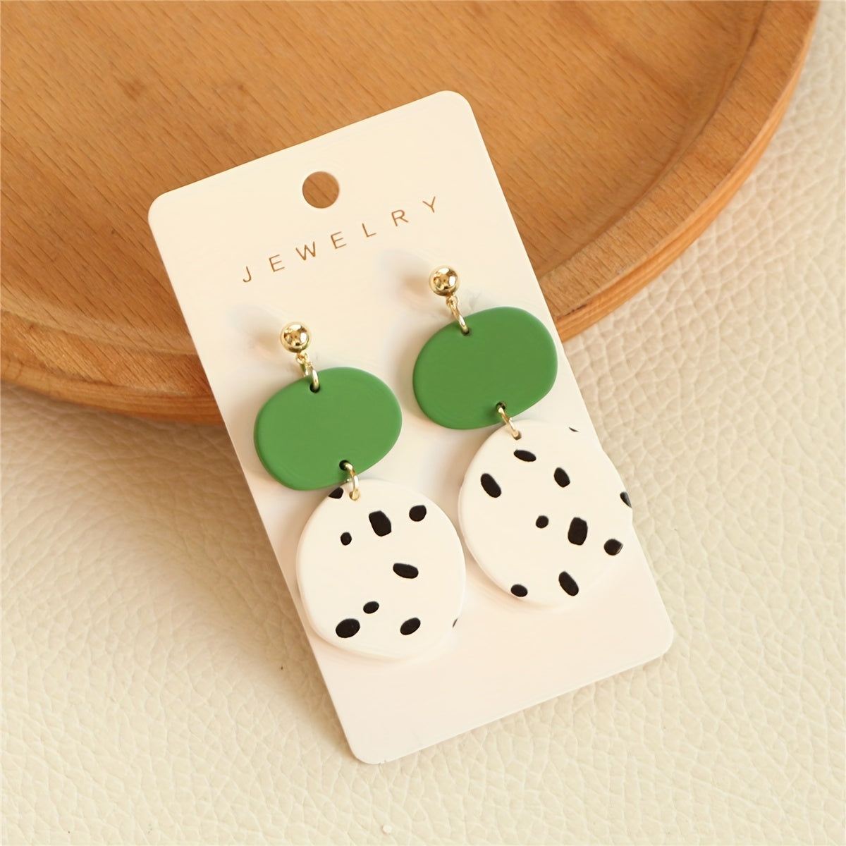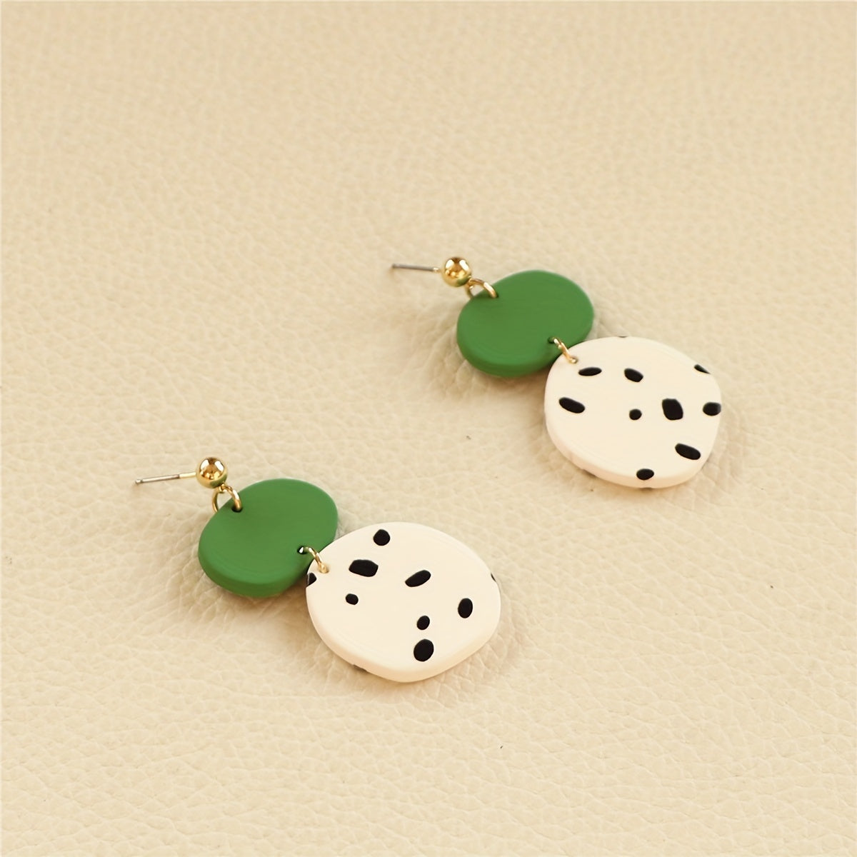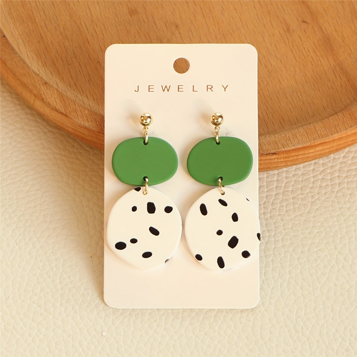 Add a touch of sexy style to your look with these green dangle earrings featuring a chic dot pattern. Made of acrylic, these earrings make a perfect gift for any fashion-forward female.
