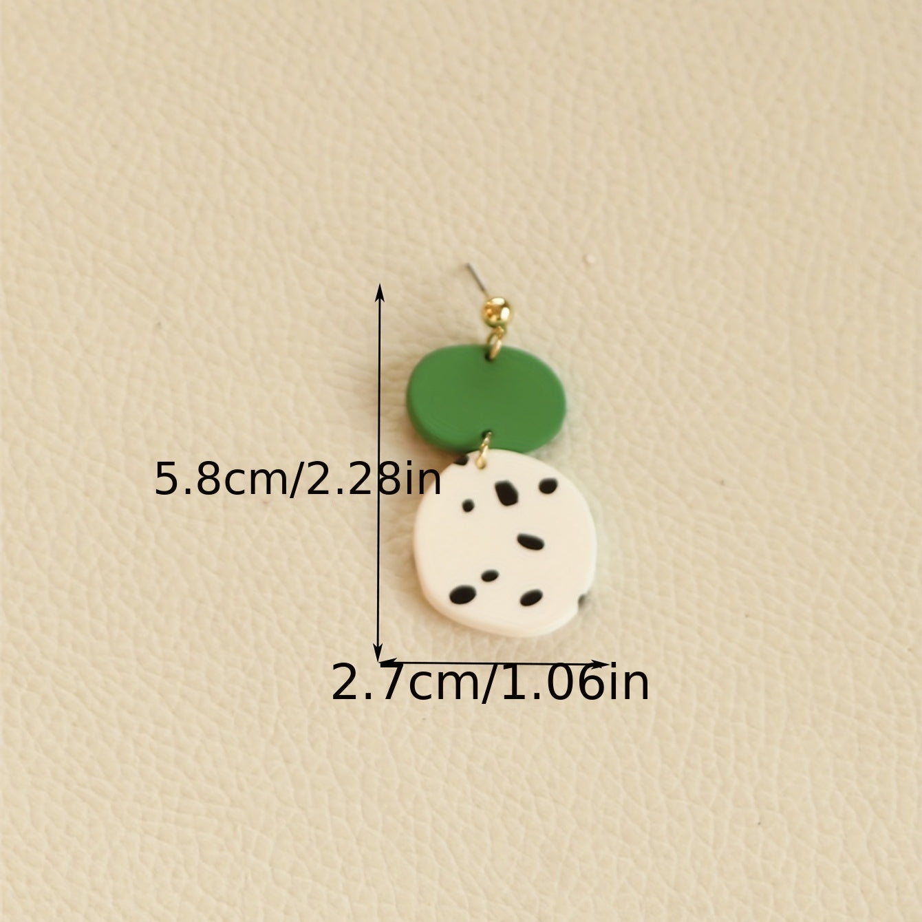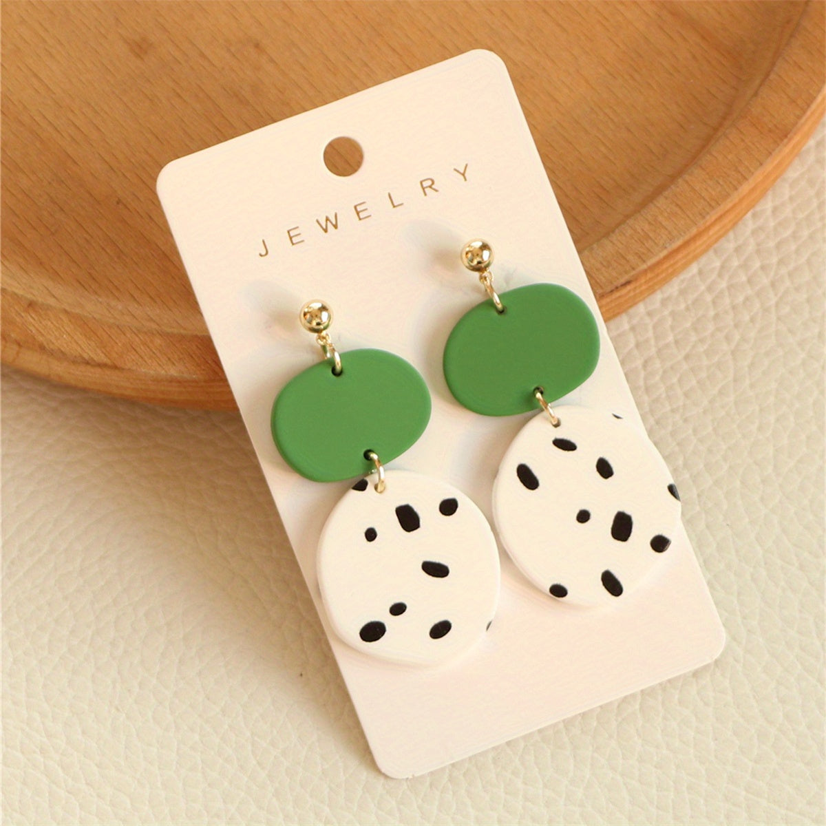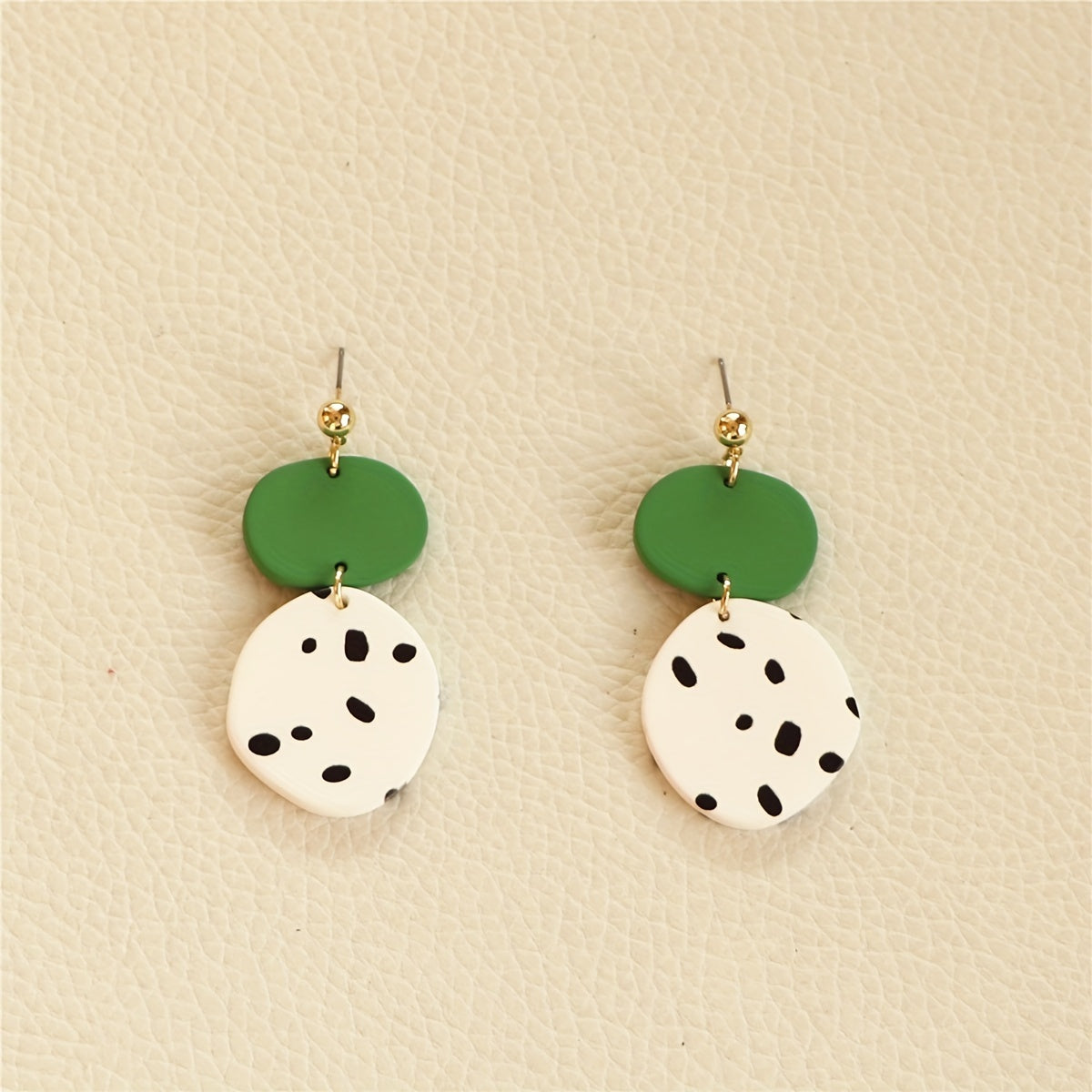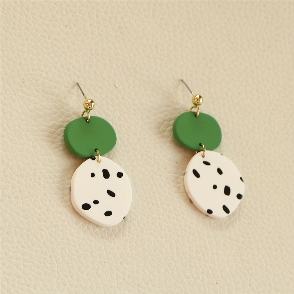 Add a touch of sexy style to your look with these green dangle earrings featuring a chic dot pattern. Made of acrylic, these earrings make a perfect gift for any fashion-forward female.