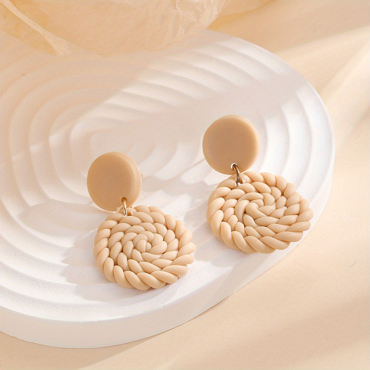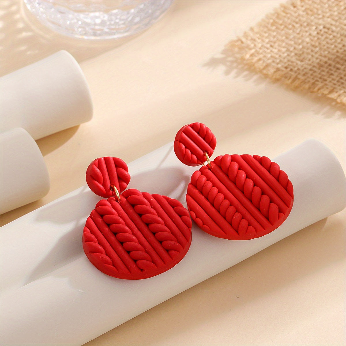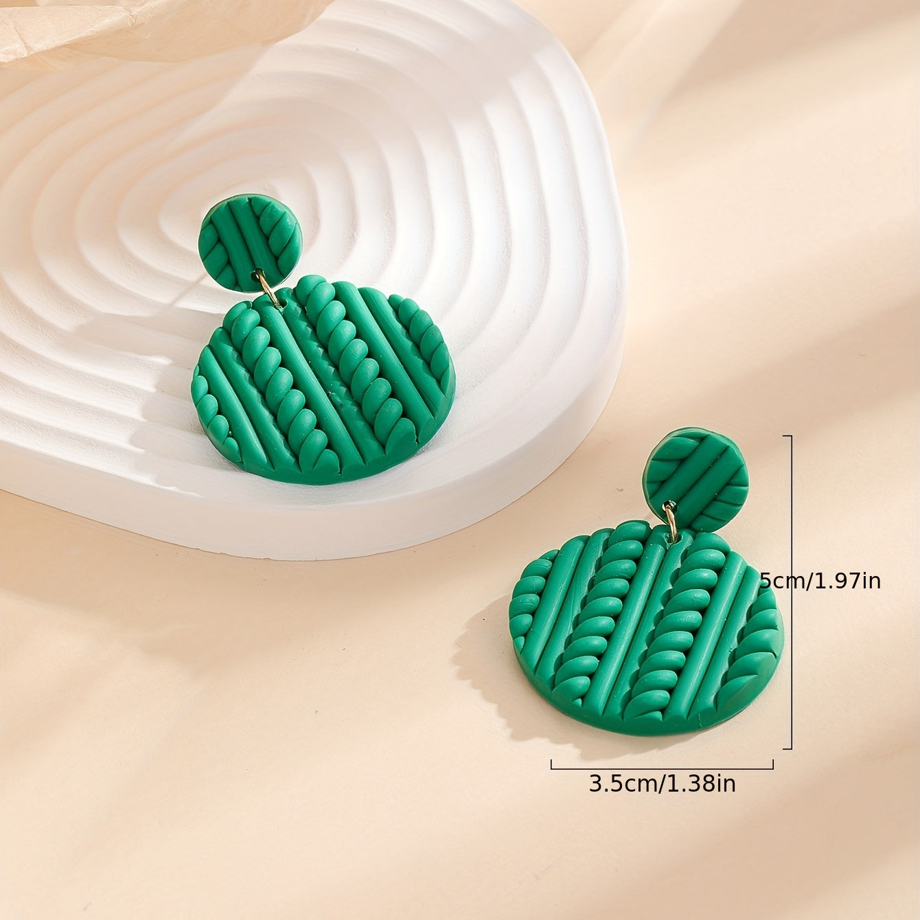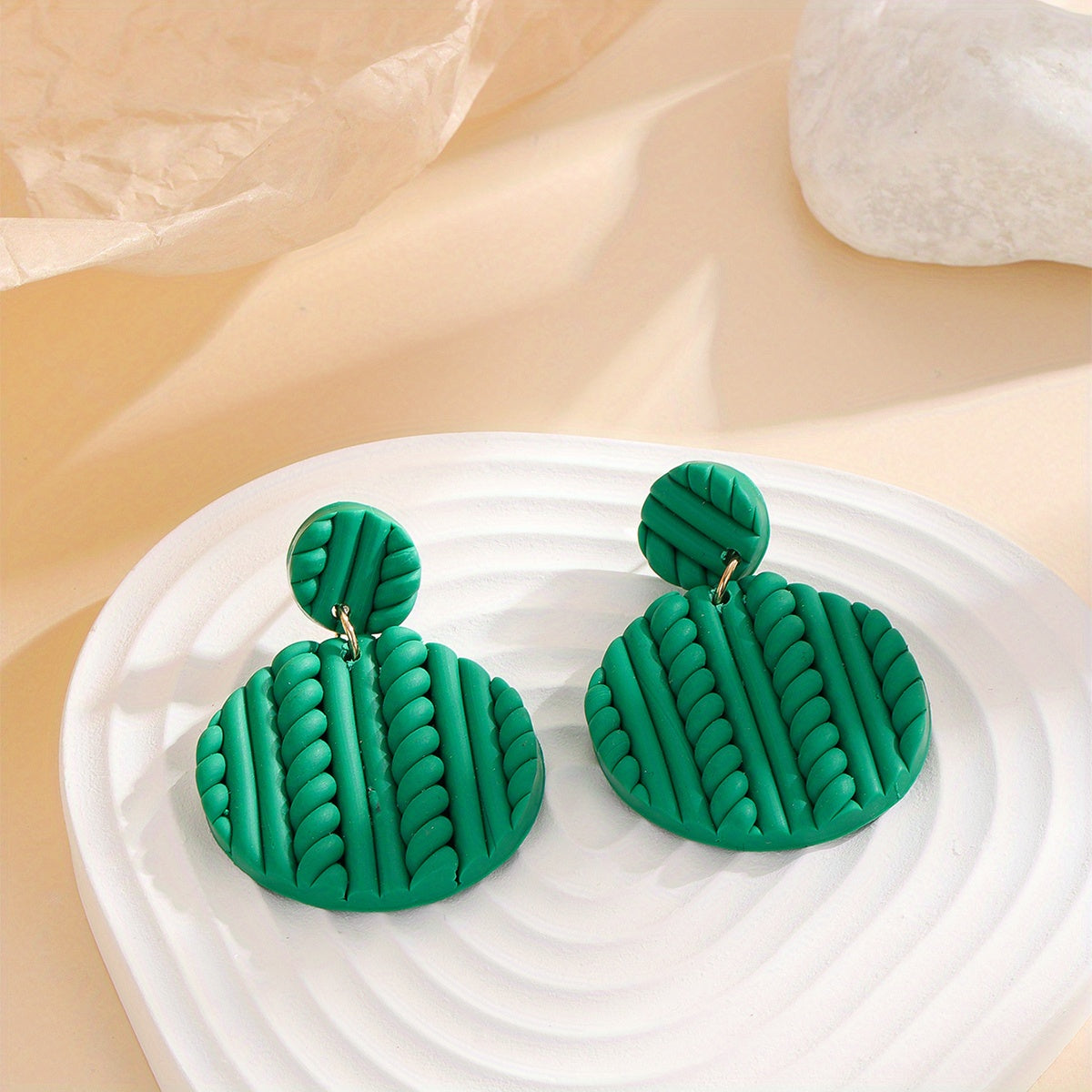 Elegant dangle earrings with a classic style, featuring round green and red beads, light beige twisted pattern design.