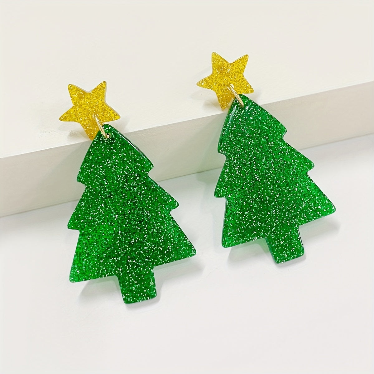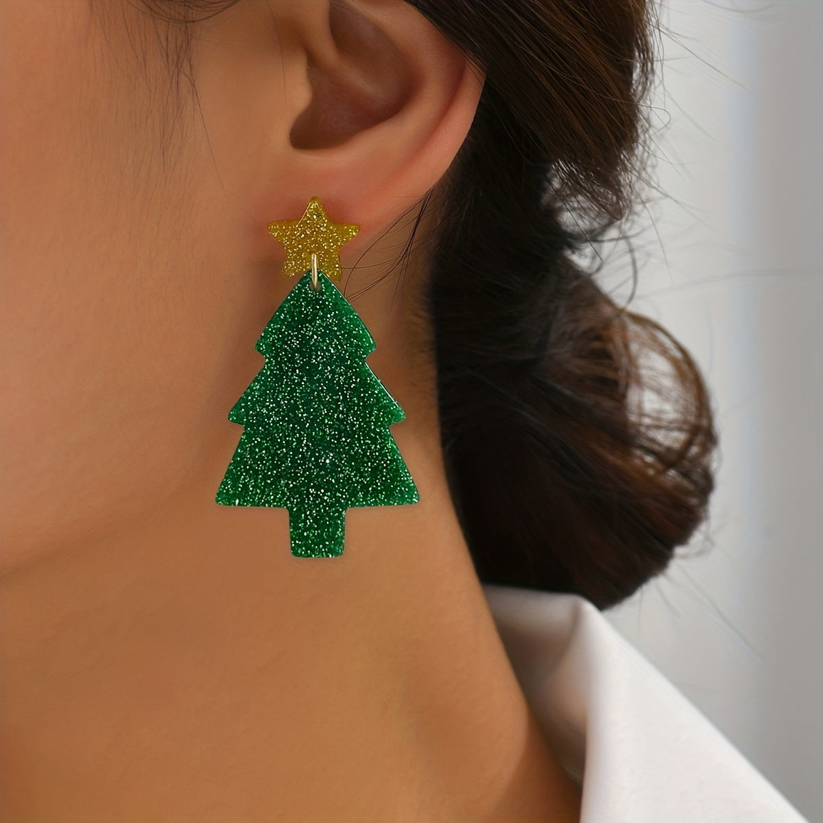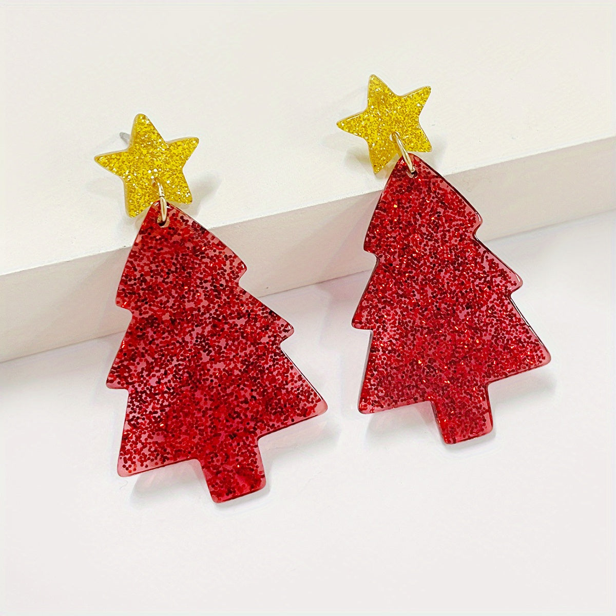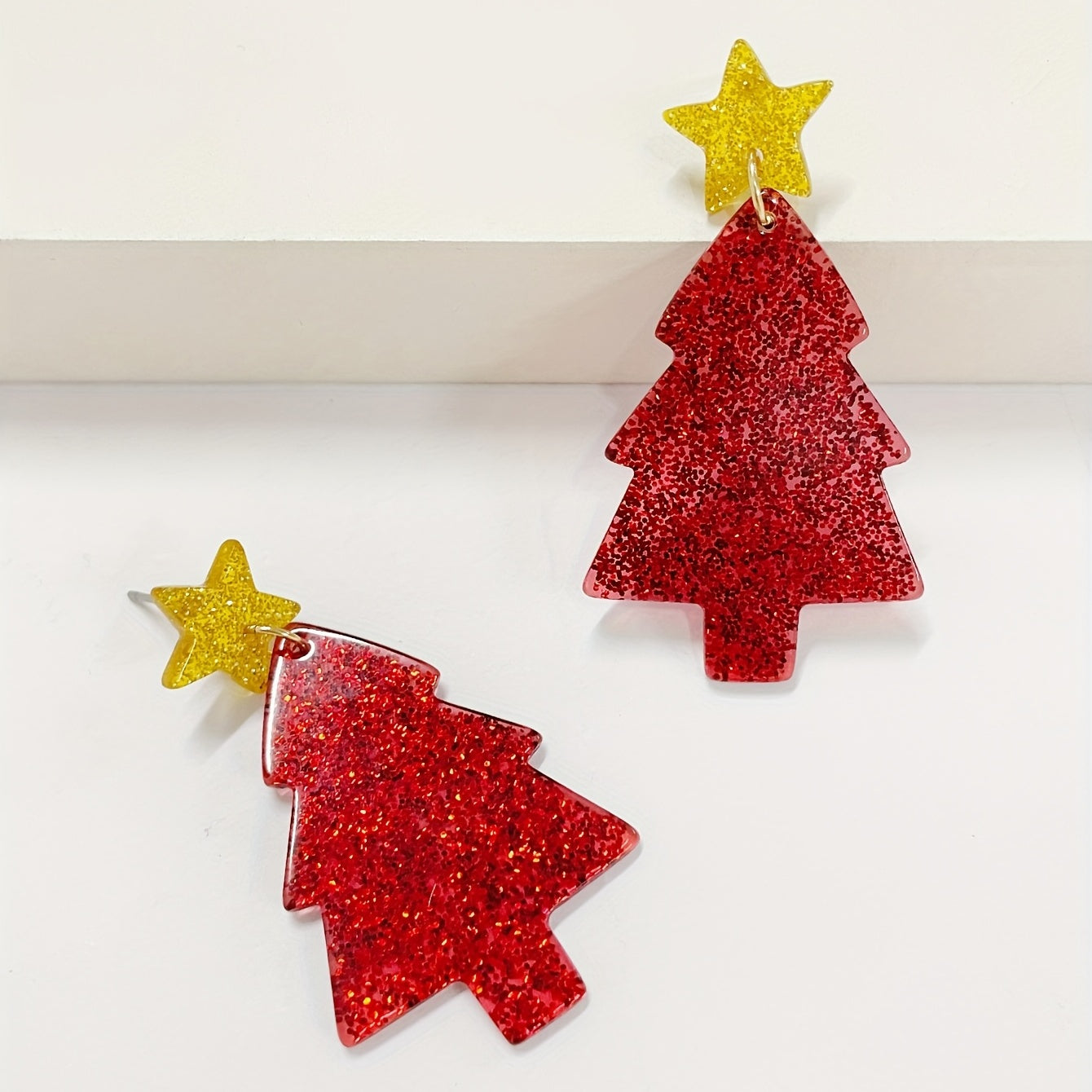 Add a festive touch to your party style with these delicate green and red Christmas tree earrings adorned with sequins. Perfect as a gift for females.