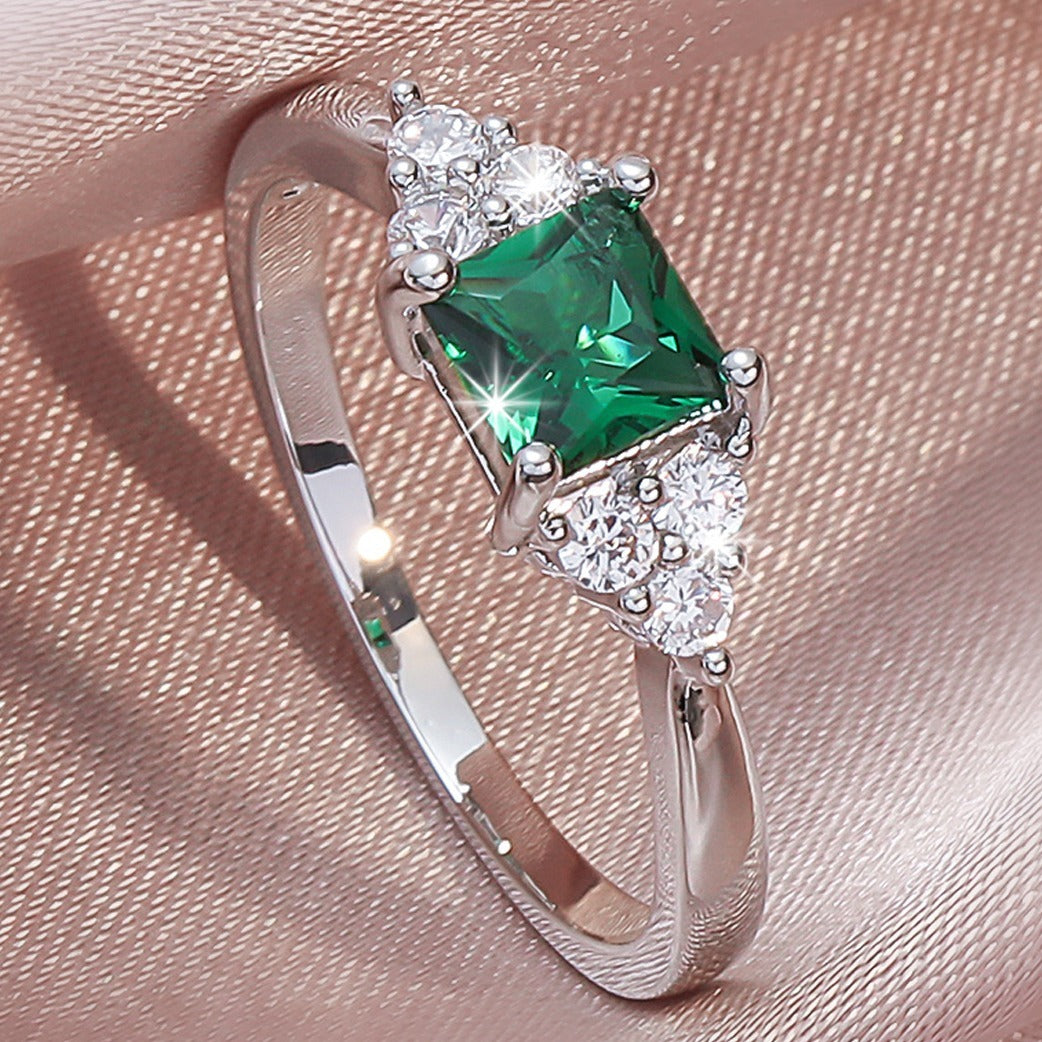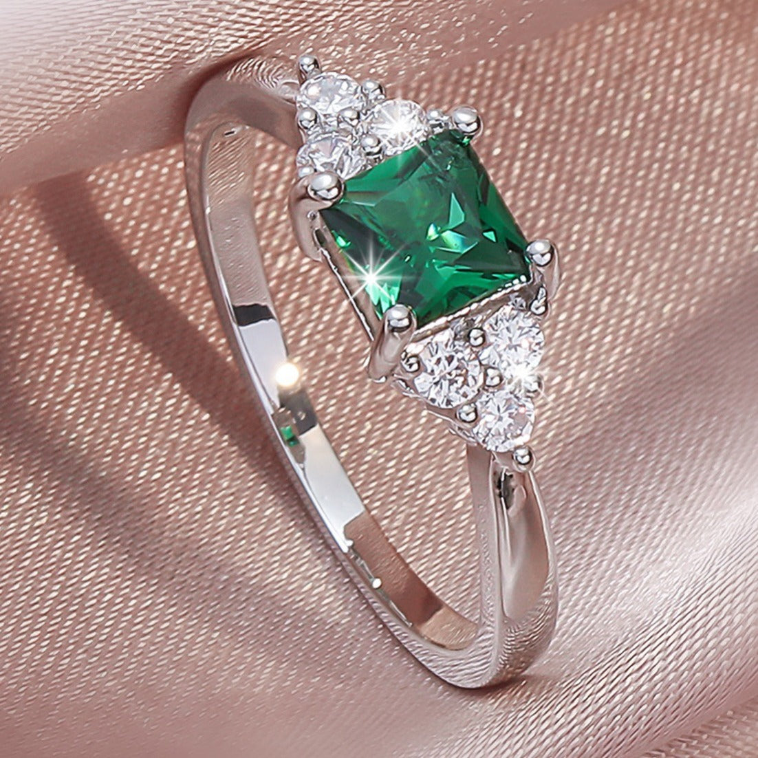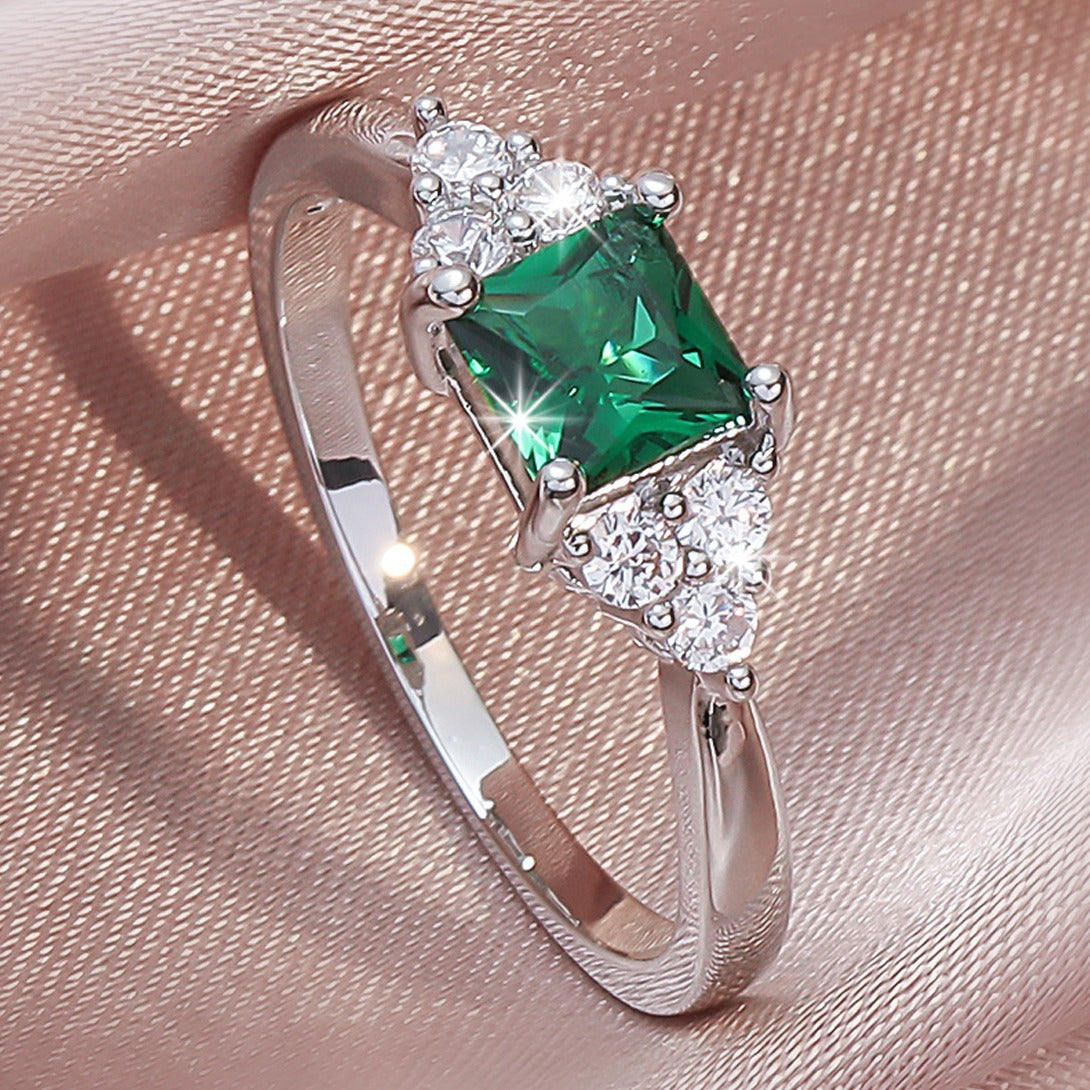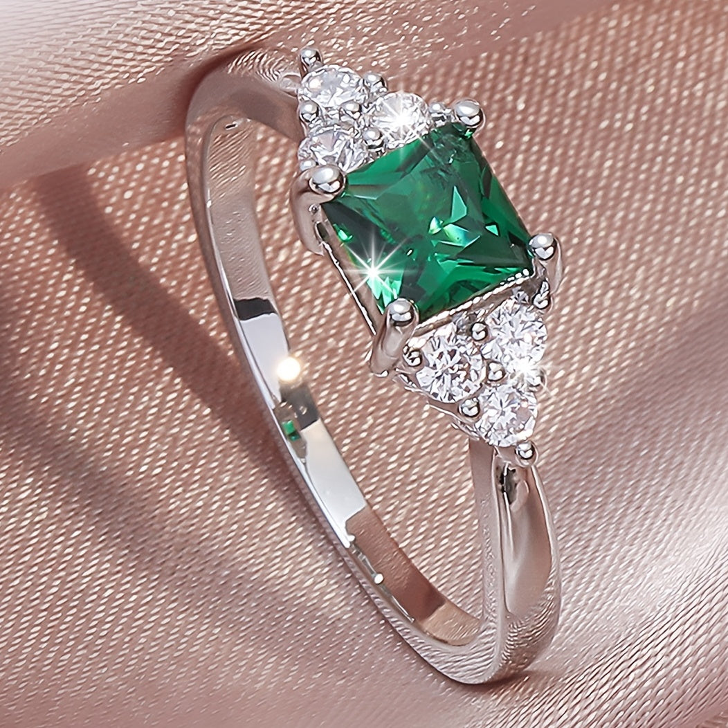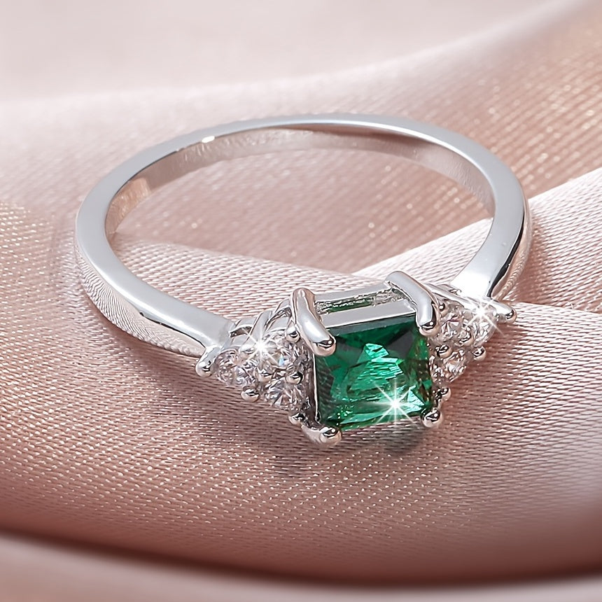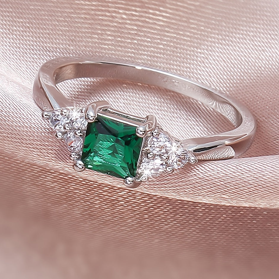 Elegant and stylish women's ring featuring a green square zircon. Perfect for weddings and bridal occasions.