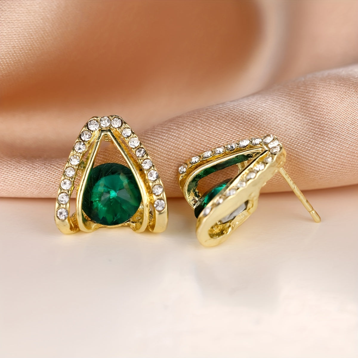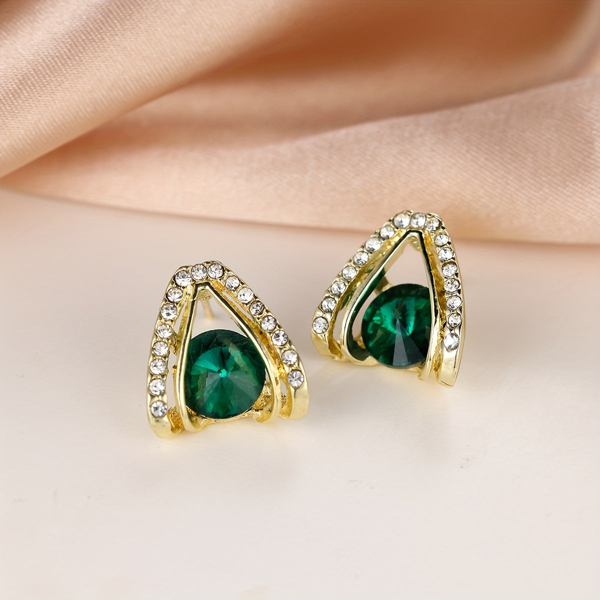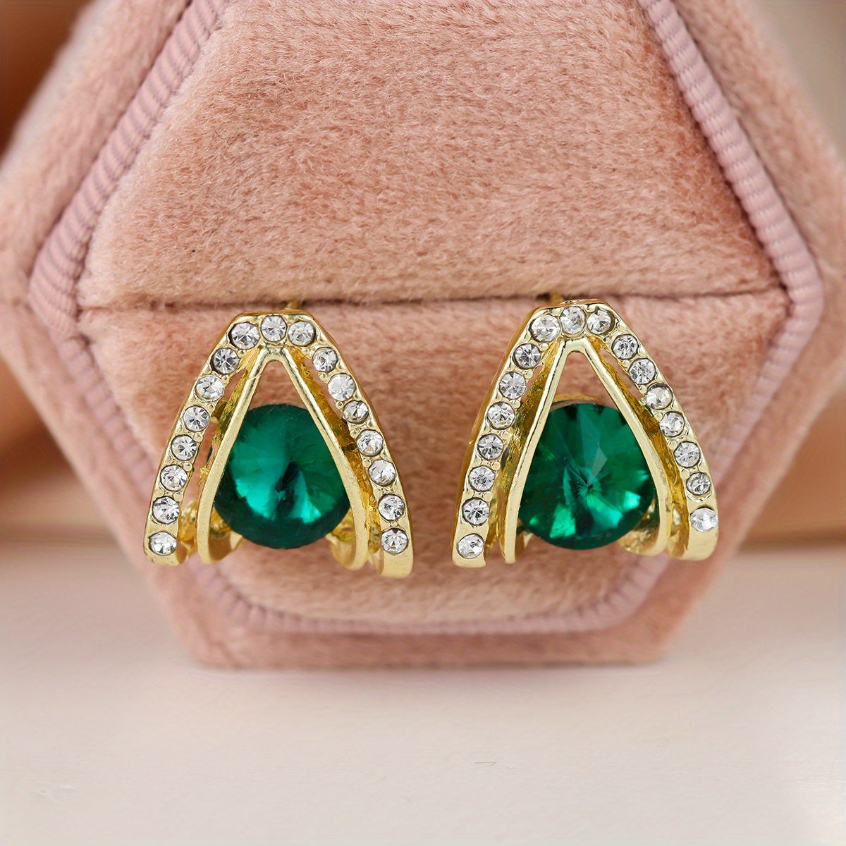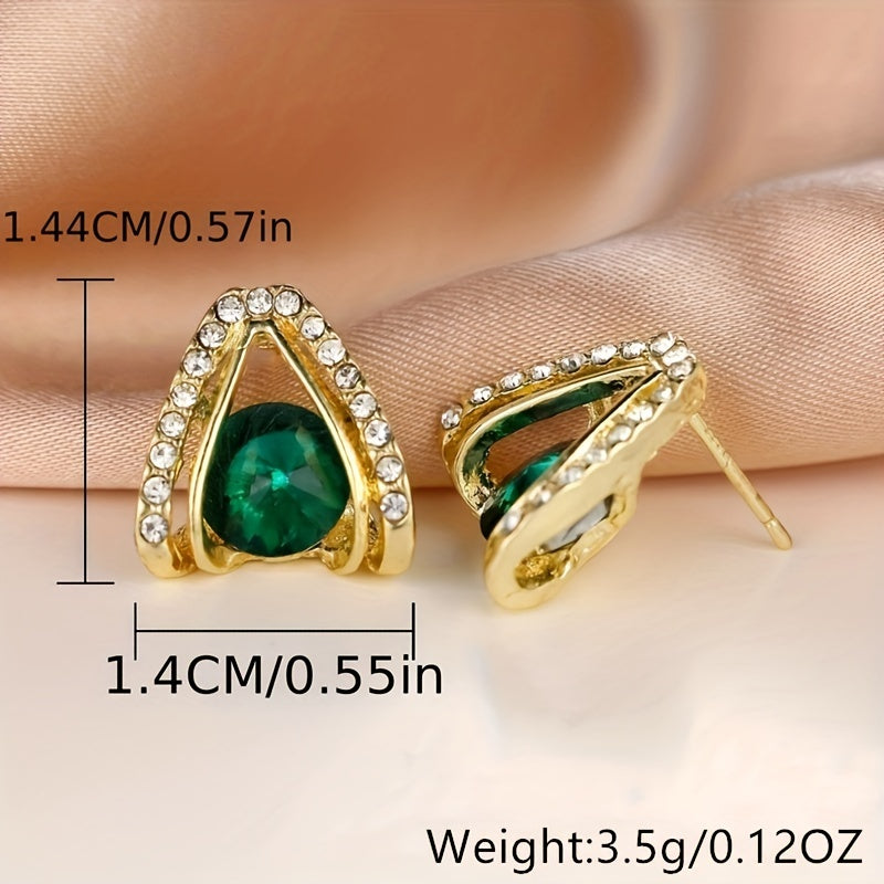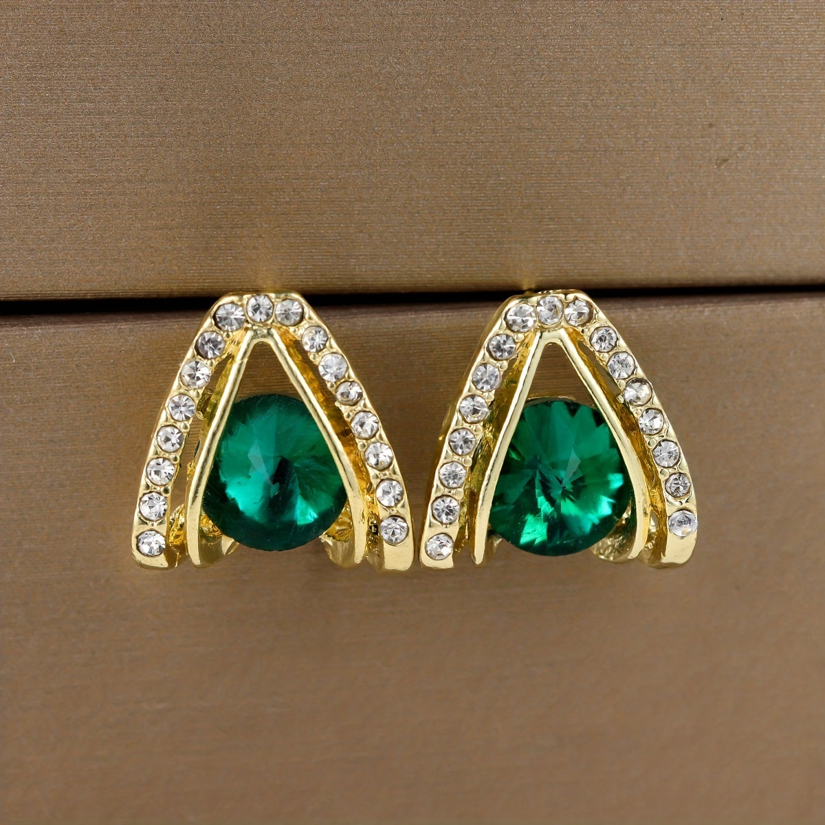 Green Stone Stud Earrings 18K Plated Women Girls 1Pair