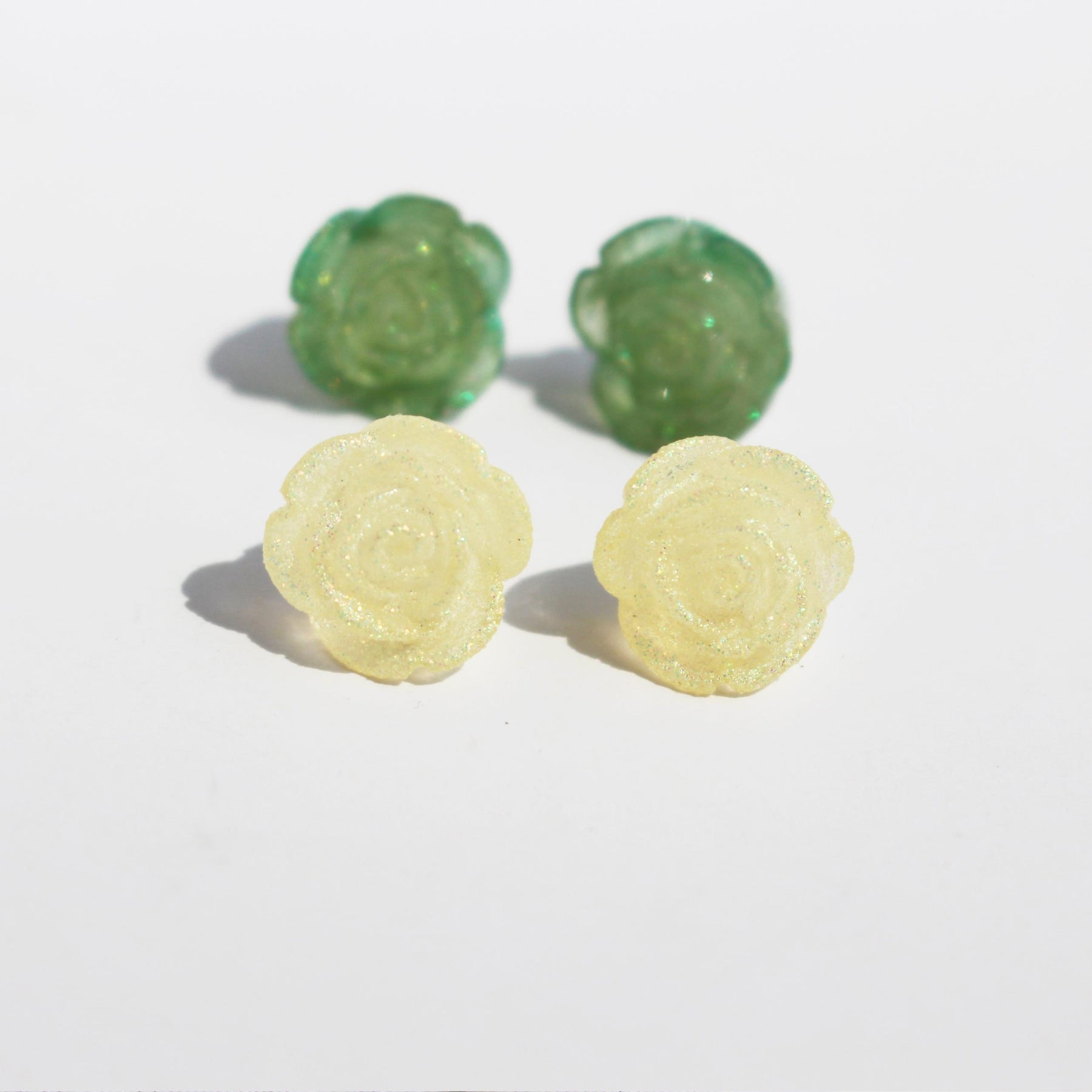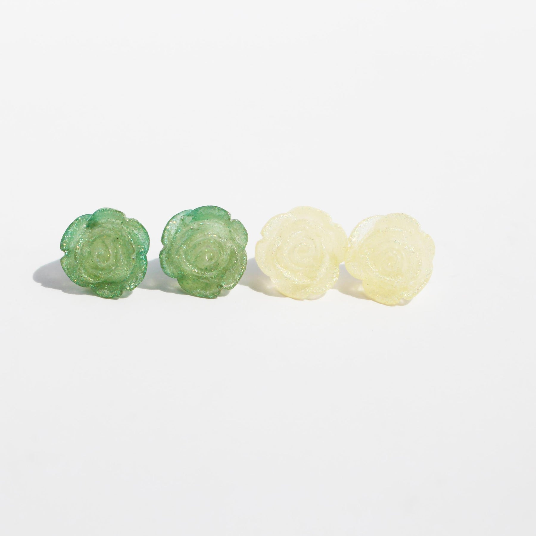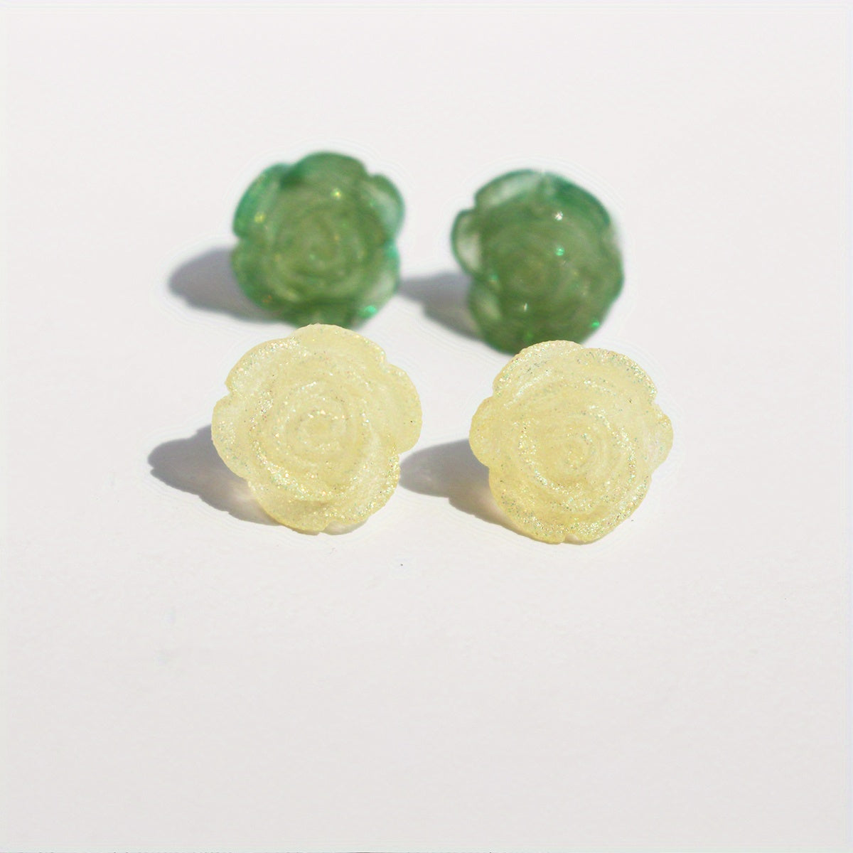 Add a touch of vocation style to your outfits with these charming camellia stud earrings. Crafted from resin, these earrings feature a blend of green and yellow colors, making them a perfect gift for any female.