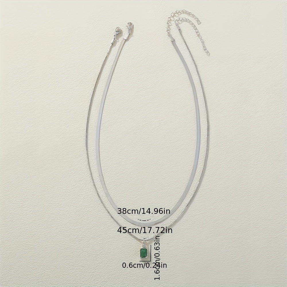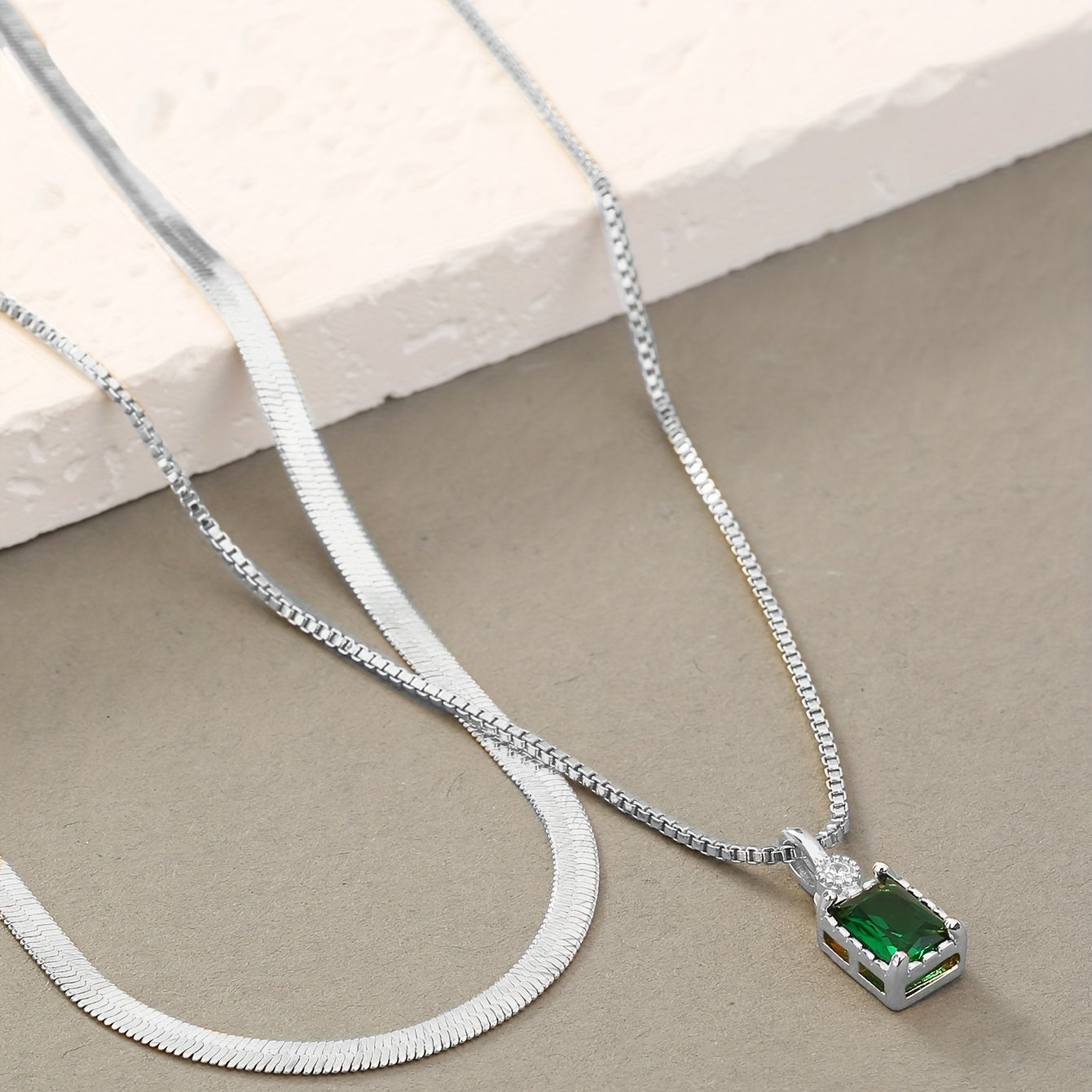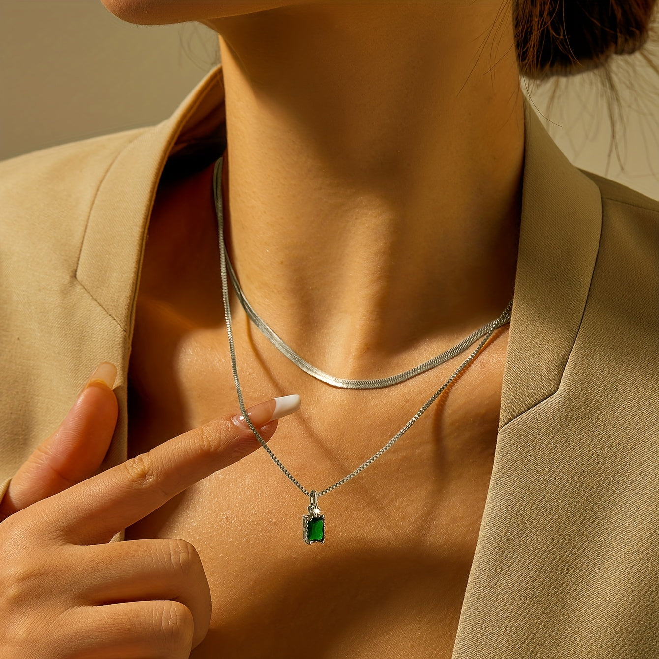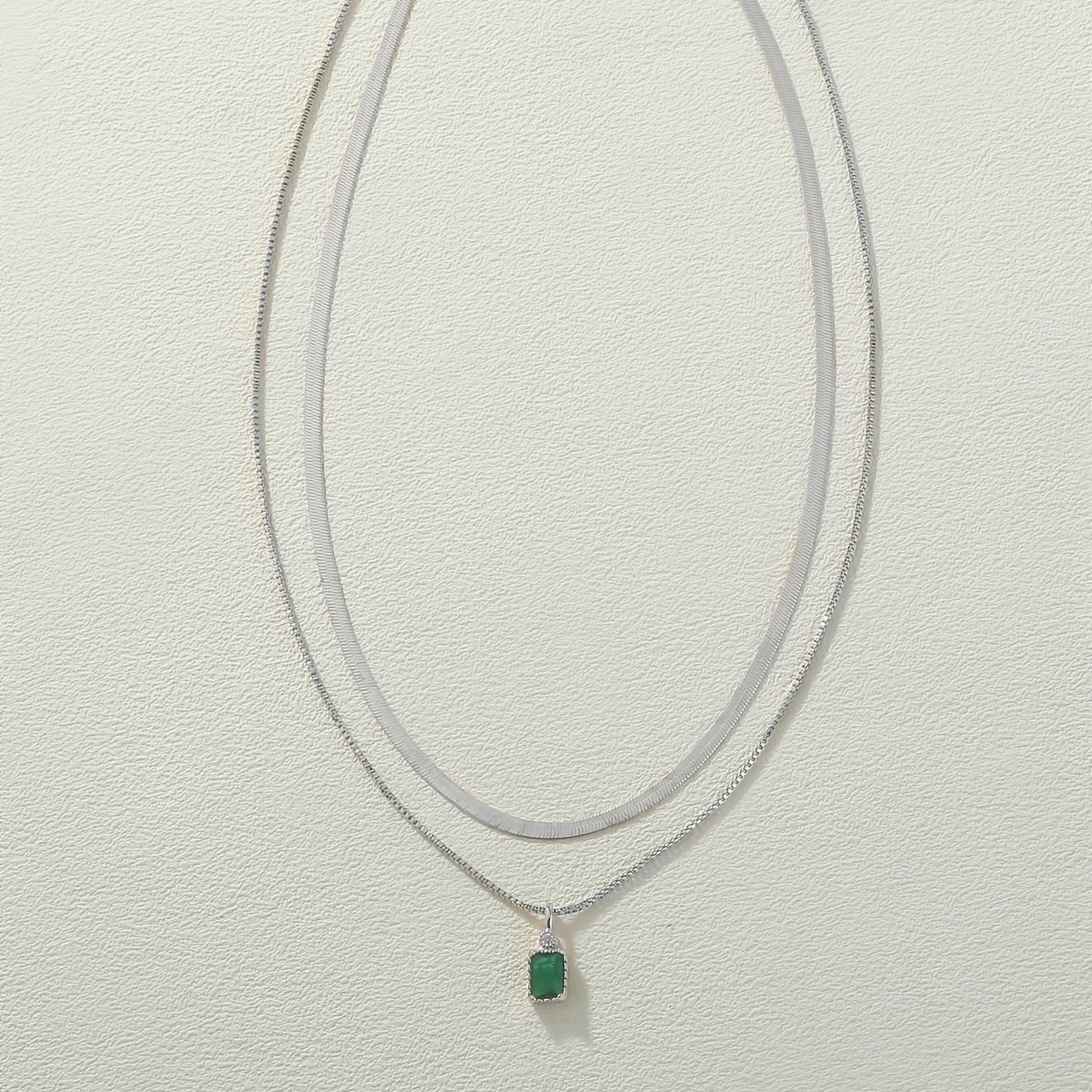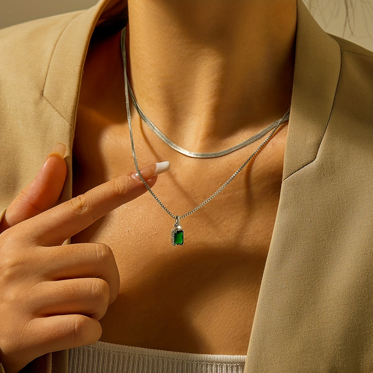 This 2-piece set features green square cut zircon necklaces on Venetian chains. A perfect neck jewelry gift.