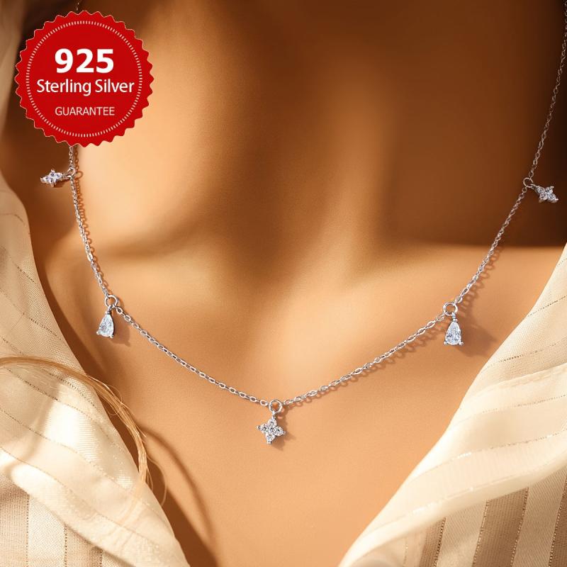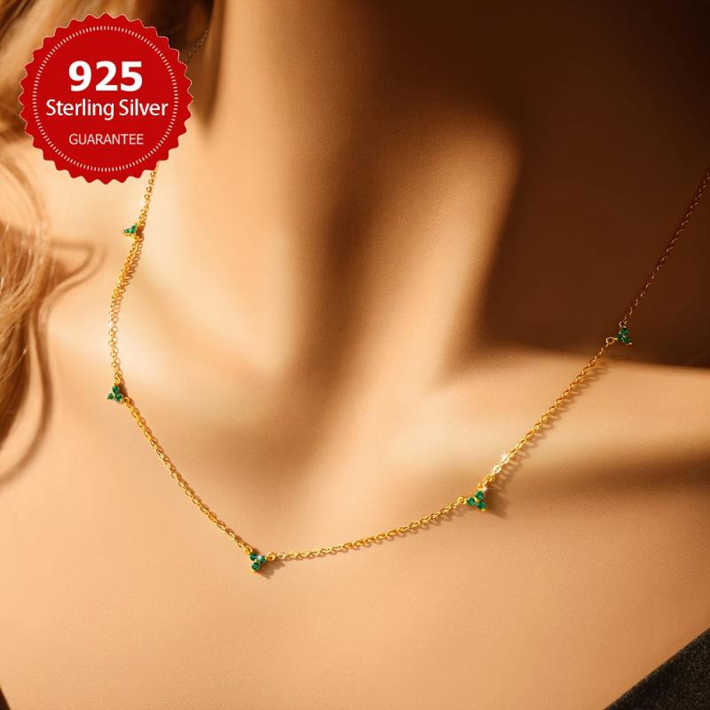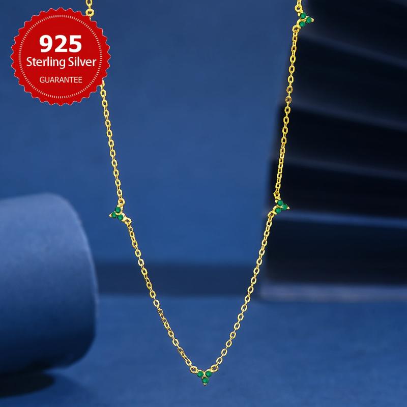This stunning green Synthetic Zirconia necklace is perfect for women. Made of S925 sterling silver, it is ideal for a birthday or date party. The necklace features a Silvery weight Style design.