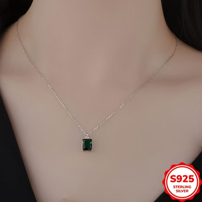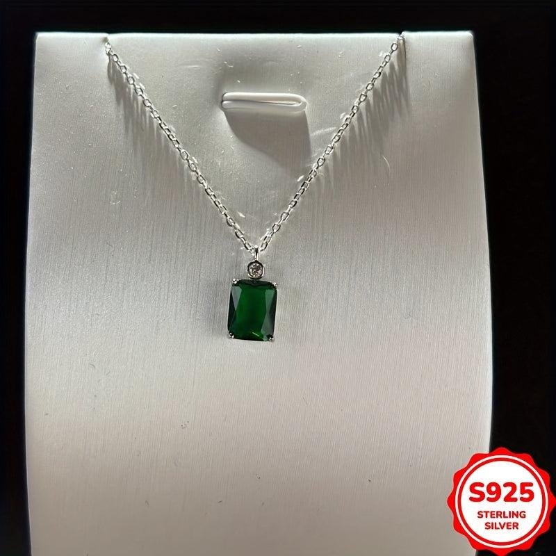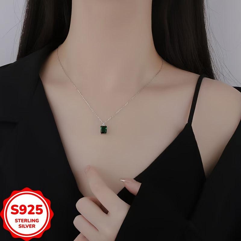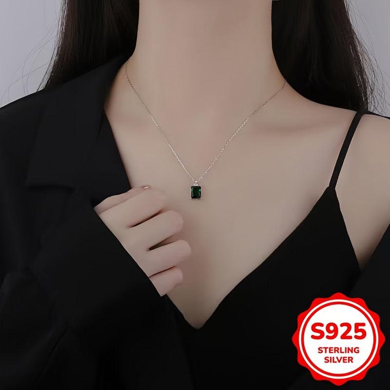 Add a touch of elegance with this unique green synthetic zirconia pendant necklace. Made of S925 sterling silver, it is lightweight and perfect for parties or everyday wear.