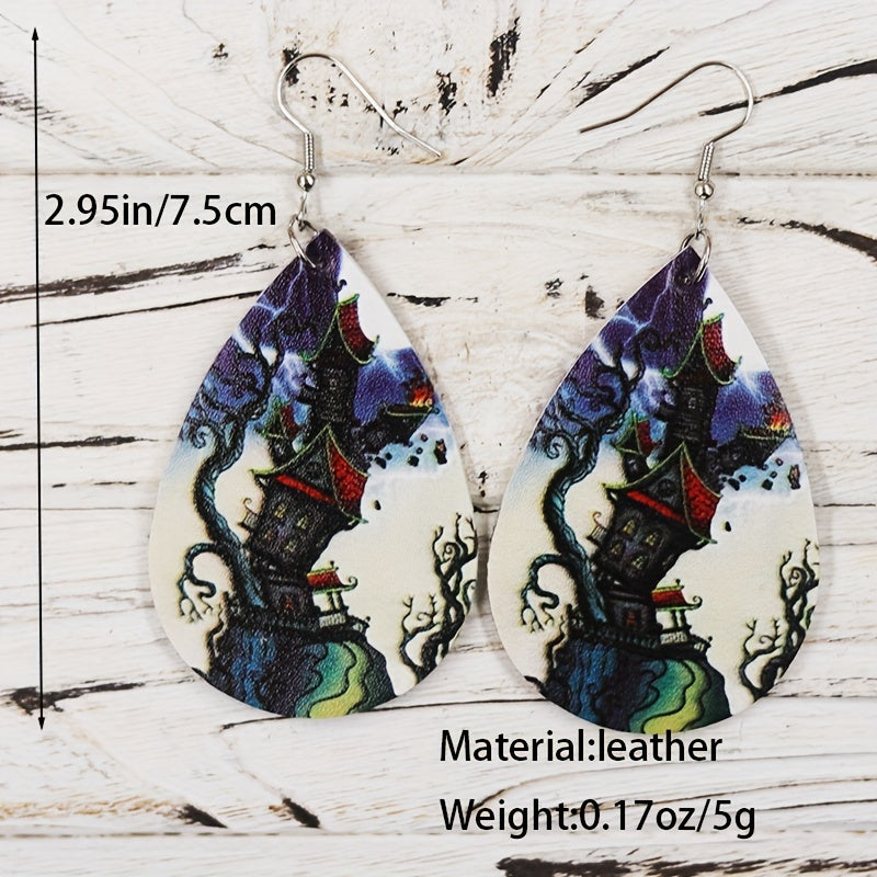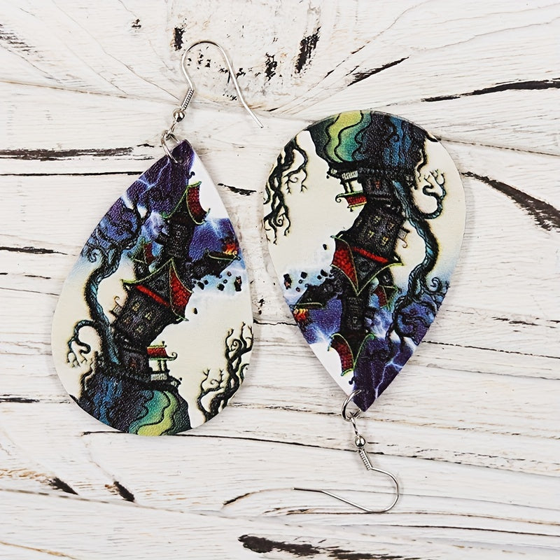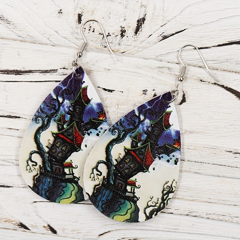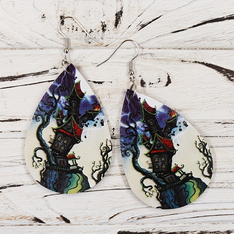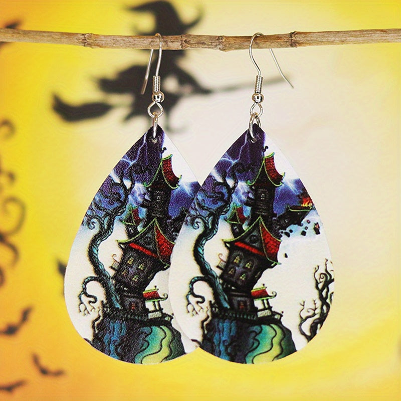 Get into the spooky spirit with these Halloween-themed teardrop earrings featuring a magical castle pattern. Perfect for adding a touch of vocation style to your outfit. Makes a great gift for females.