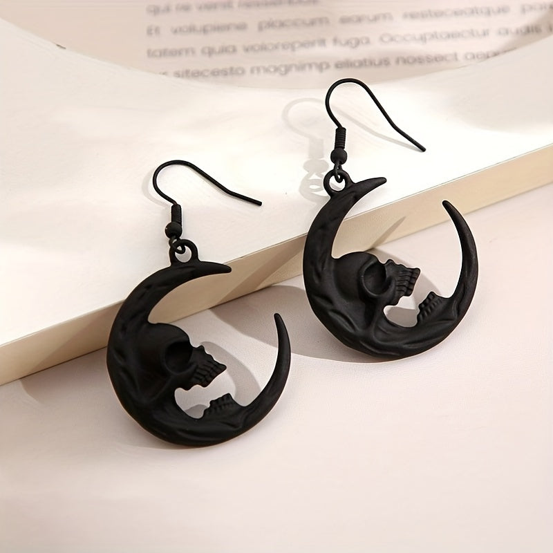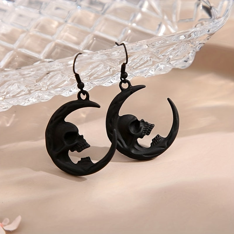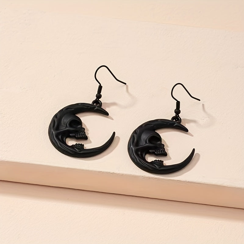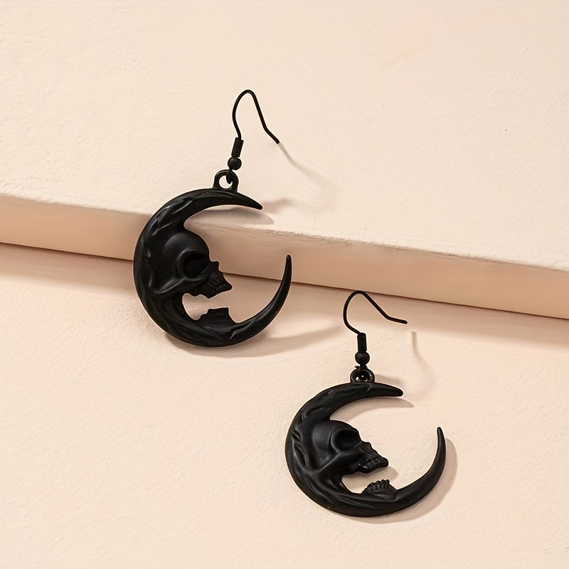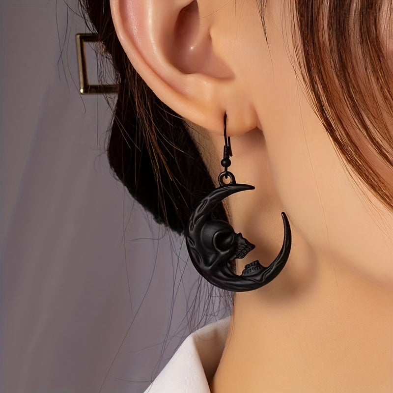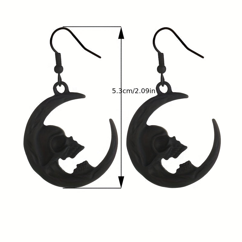 Add a touch of spooky charm to your look with these unique Halloween Moon Skull Dangle Earrings. These earrings are perfect for punk and goth style enthusiasts. Made from high-quality zinc alloy, they make a creative gift for ghost lovers.