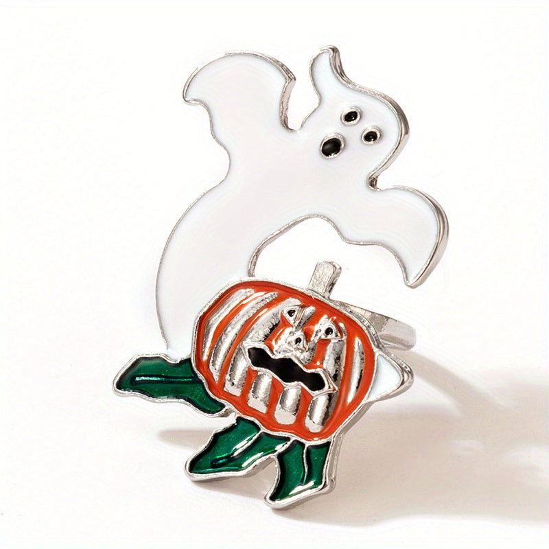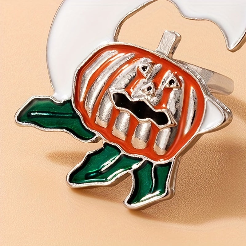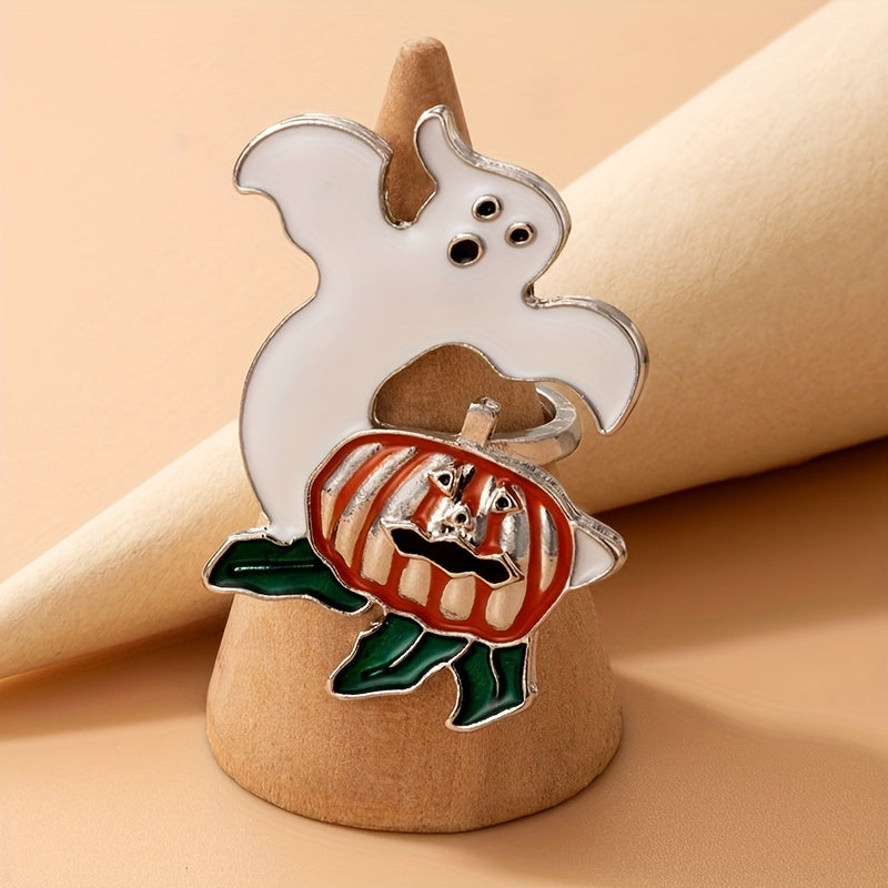 Stand out this Halloween with this fun and spooky ring featuring pumpkin and ghost patterns. It's a perfect accessory to add a festive touch to your daily outfits. Makes a great Halloween gift for teens.