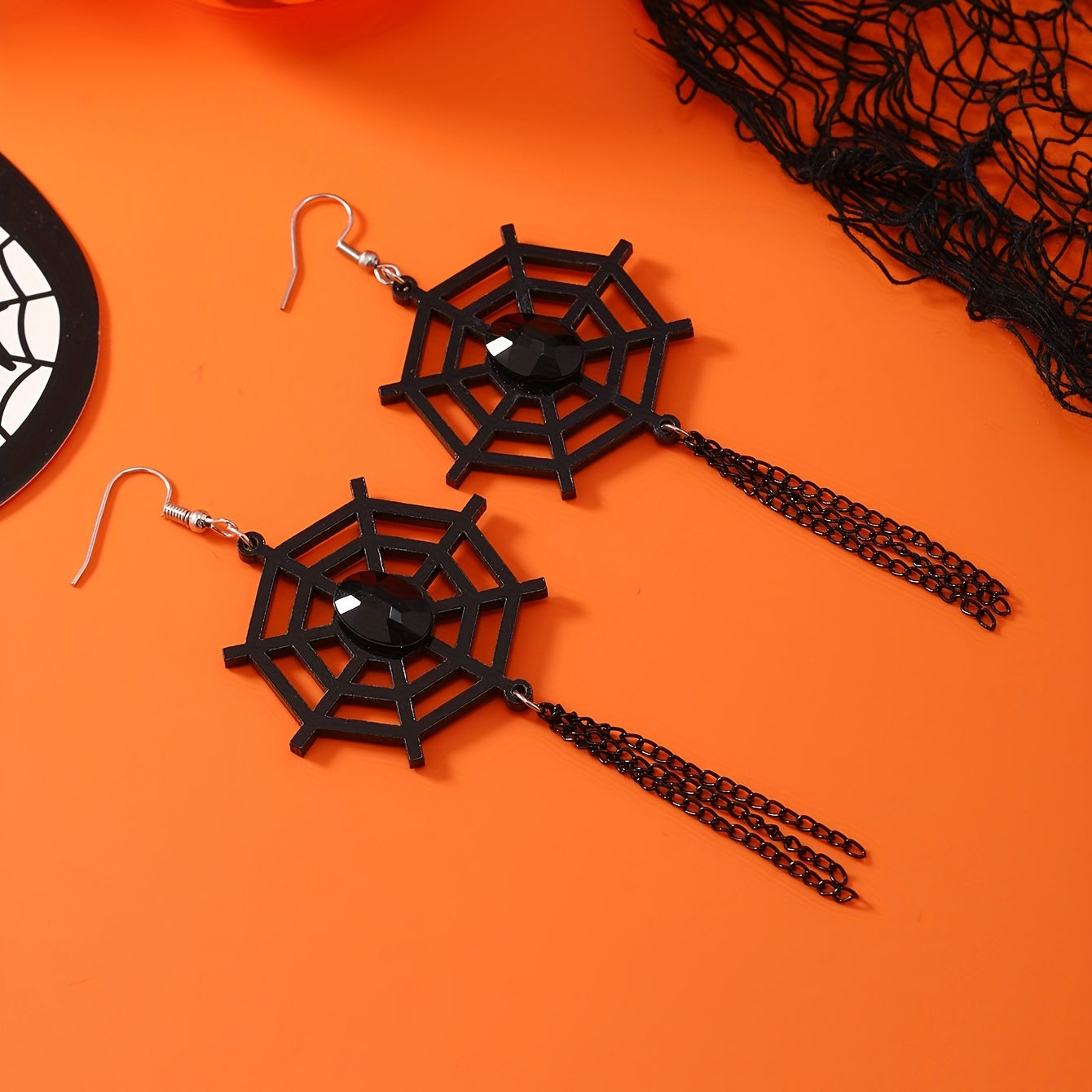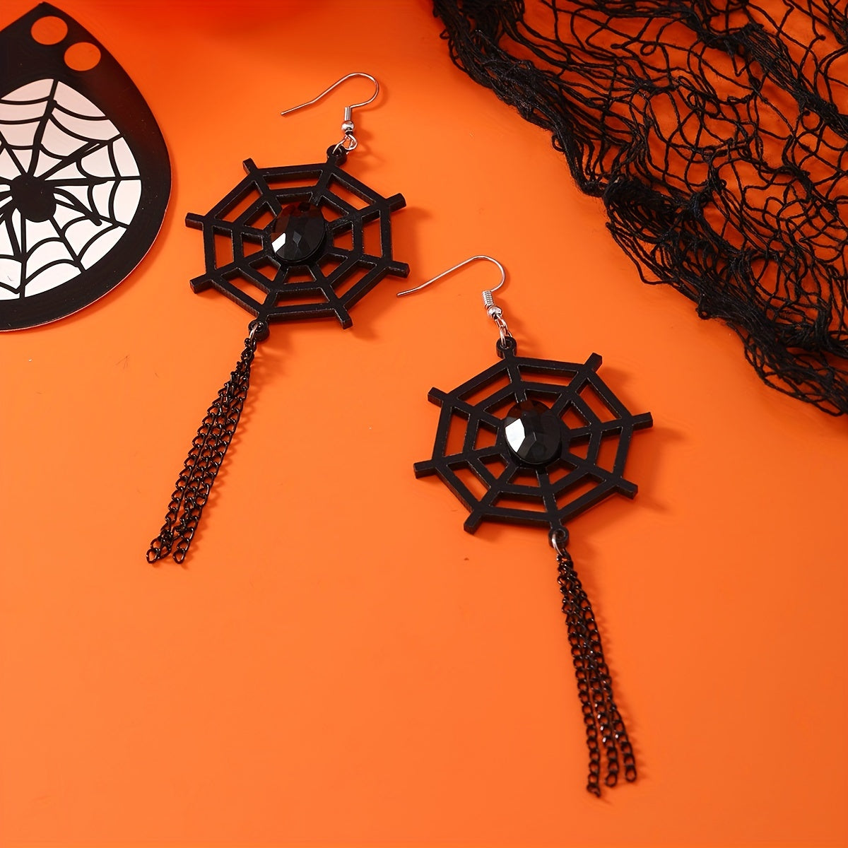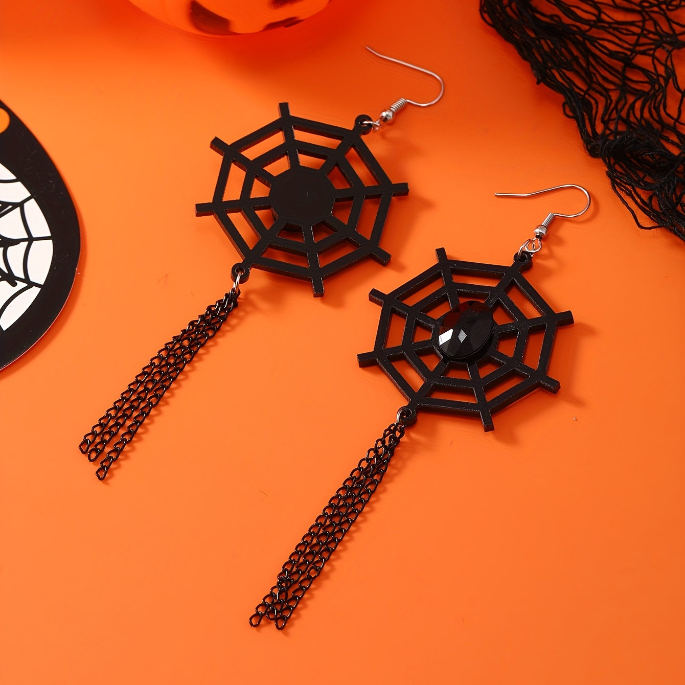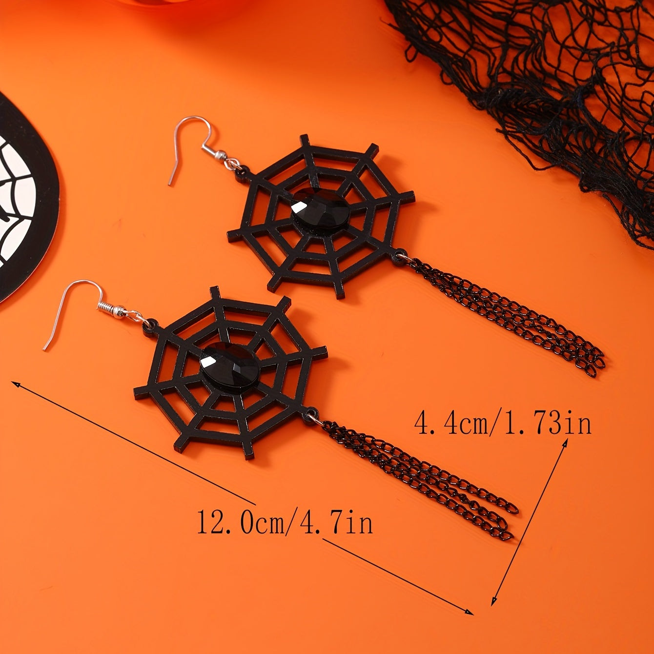 These dark and creative earrings are a fun accessory for Halloween. Spider web design with tassel pendant adds a punk vibe to your outfit. Perfect as a gift or for your Halloween costume.