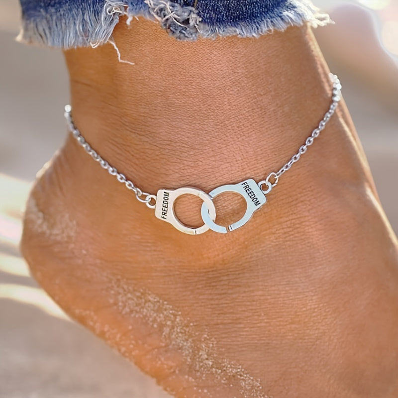 Add a touch of unique style to your beach look with this creative handcuff shape thin chain anklet. Perfect for summer vibes and beach outings.