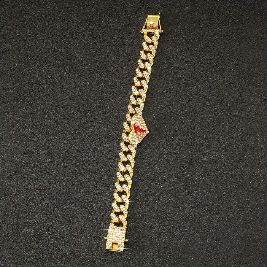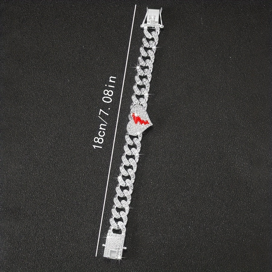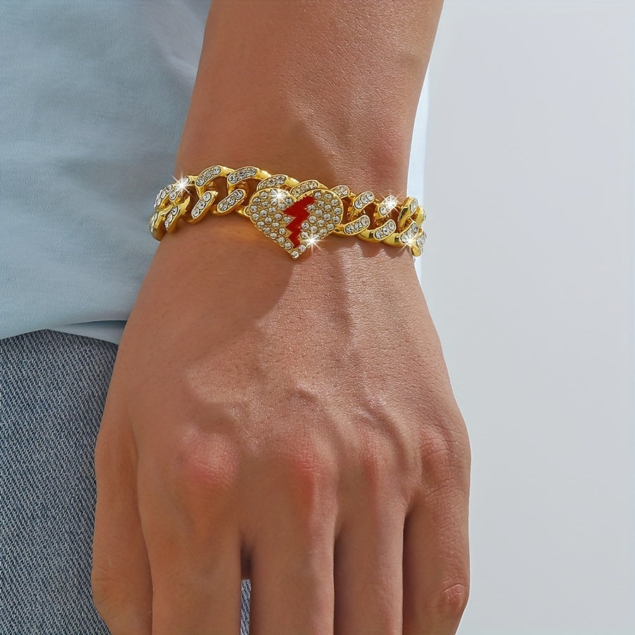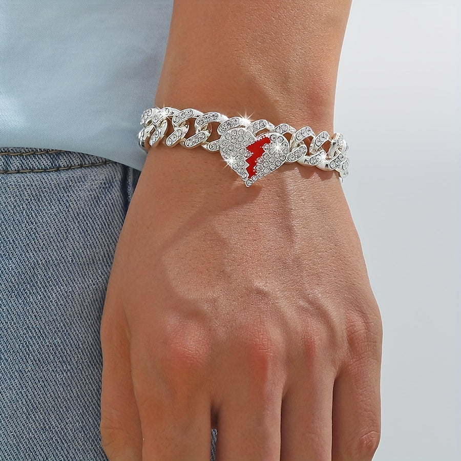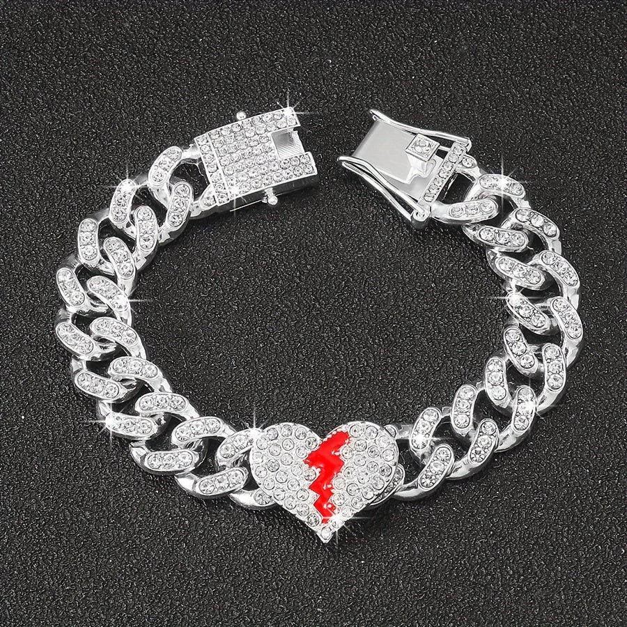 Add a touch of glamour to your outfit with this stunning heart broken love bracelet. Perfect for women and girls, this hip hop Cuban chain bracelet is adorned with sparkly rhinestones. It makes a great gift for any occasion.