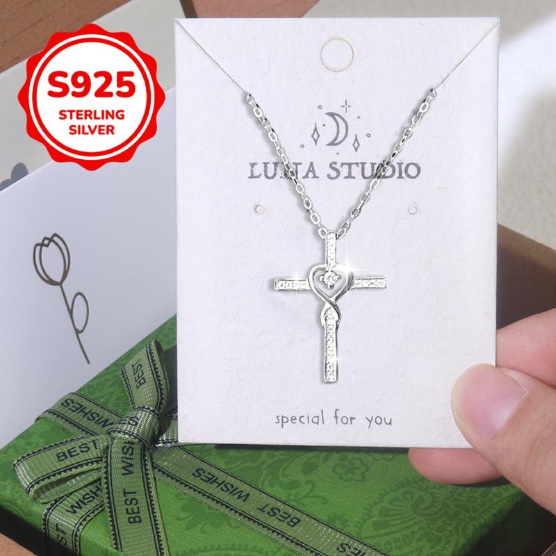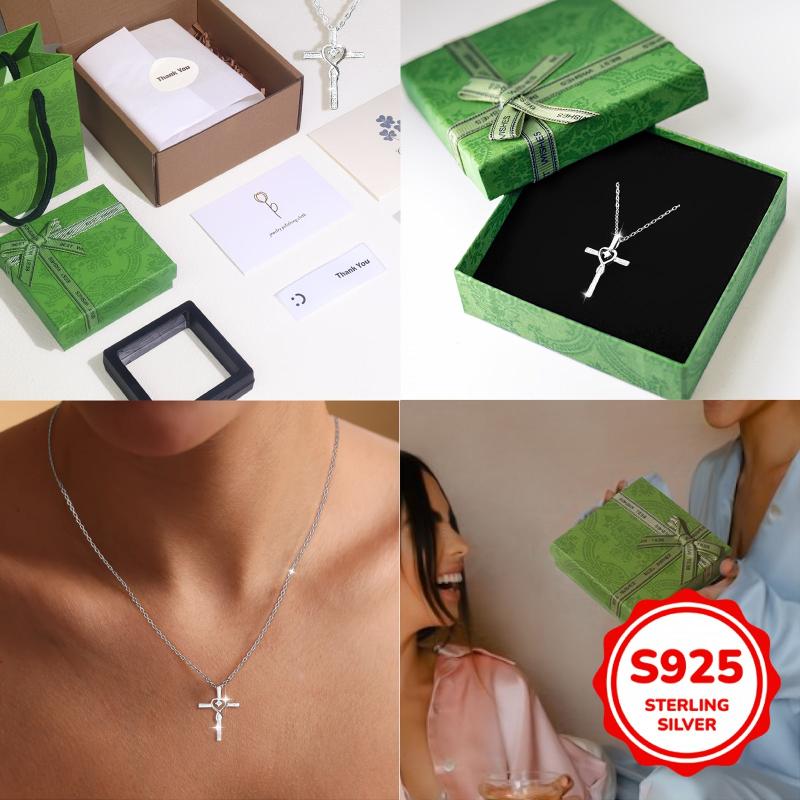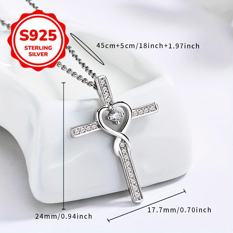 Elegant pendant necklace for women with high-quality cubic zirconia on an S925 silver chain. The design features a heart, cross, and infinity loop for a timeless and stylish look.