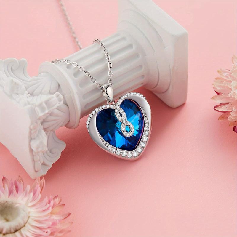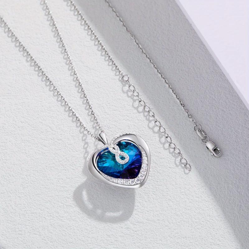 This stunning heart-shaped crystal necklace is made of 925 sterling silver, symbolizing infinite love. It is a perfect piece of jewelry for women.