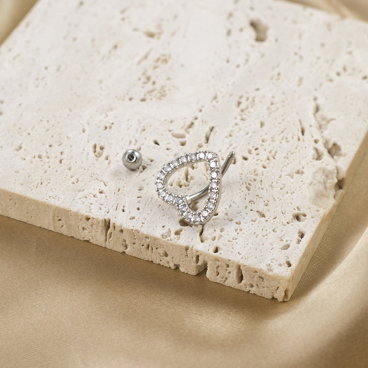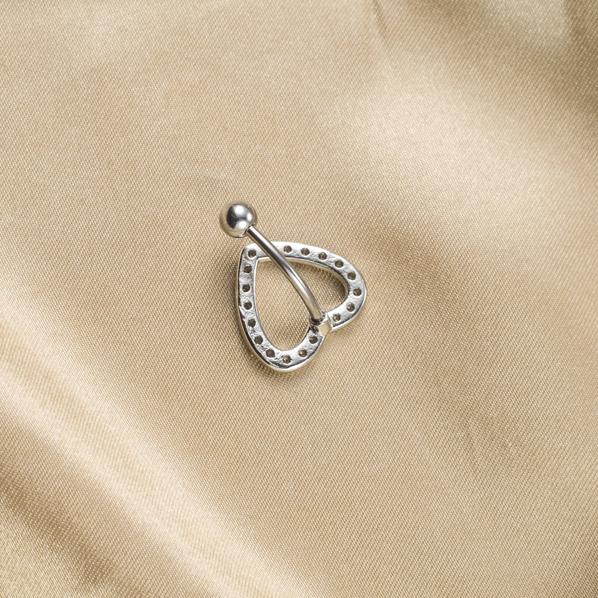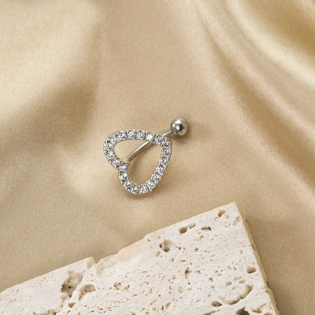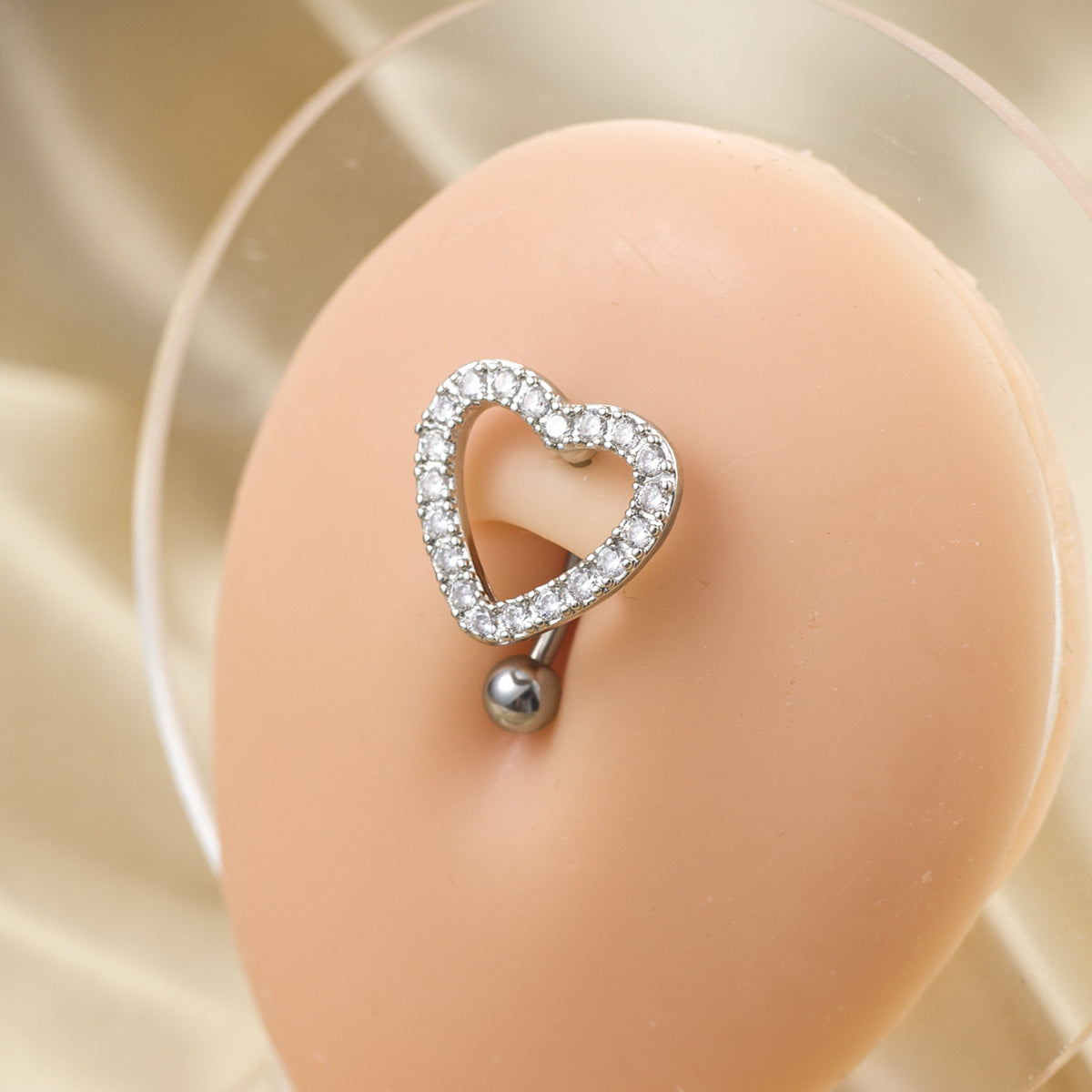 Heart Cutout Stainless Steel Navel Piercing with Zircon