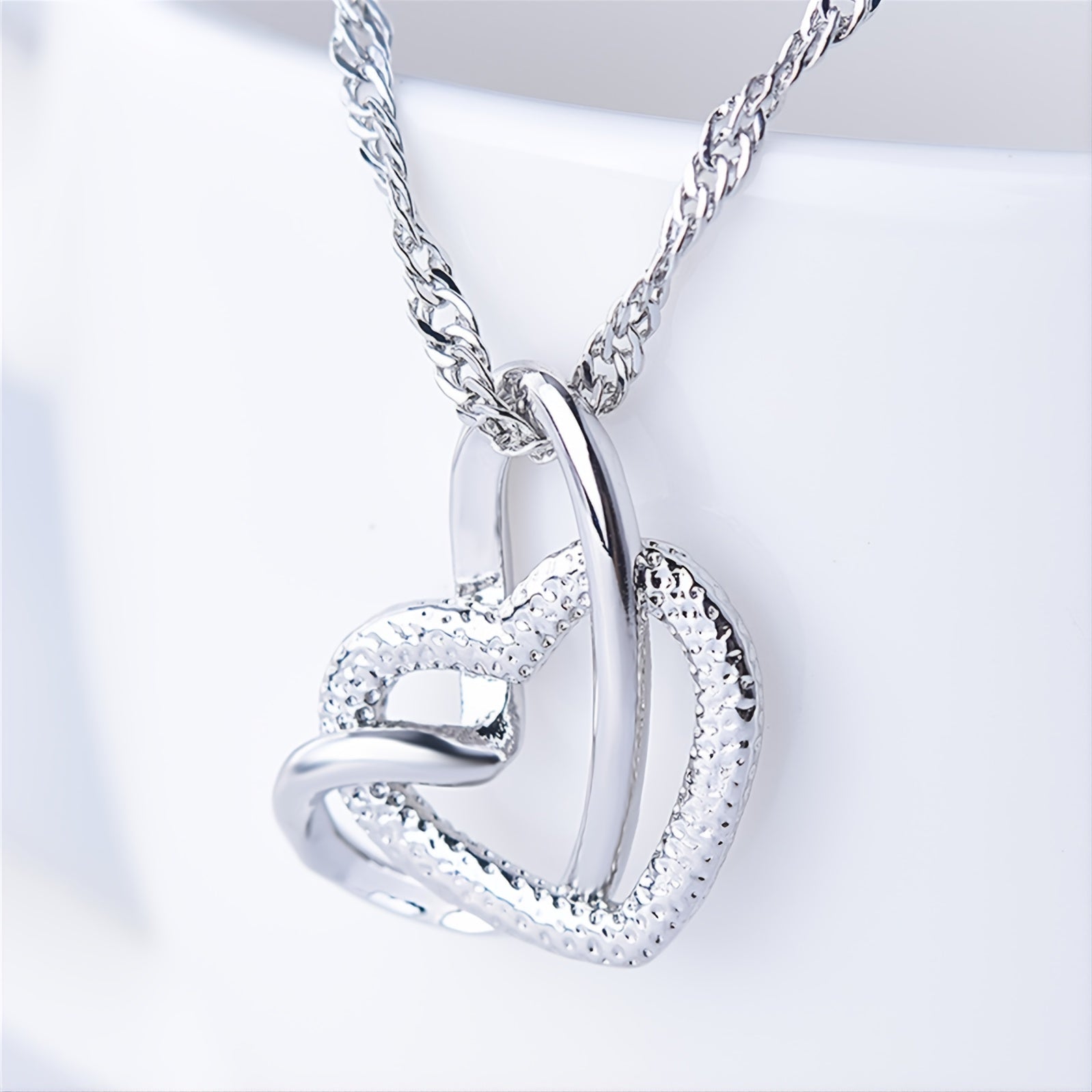 Enhance your style with this creatively designed hollow out heart double wafer pendant necklace accessory.