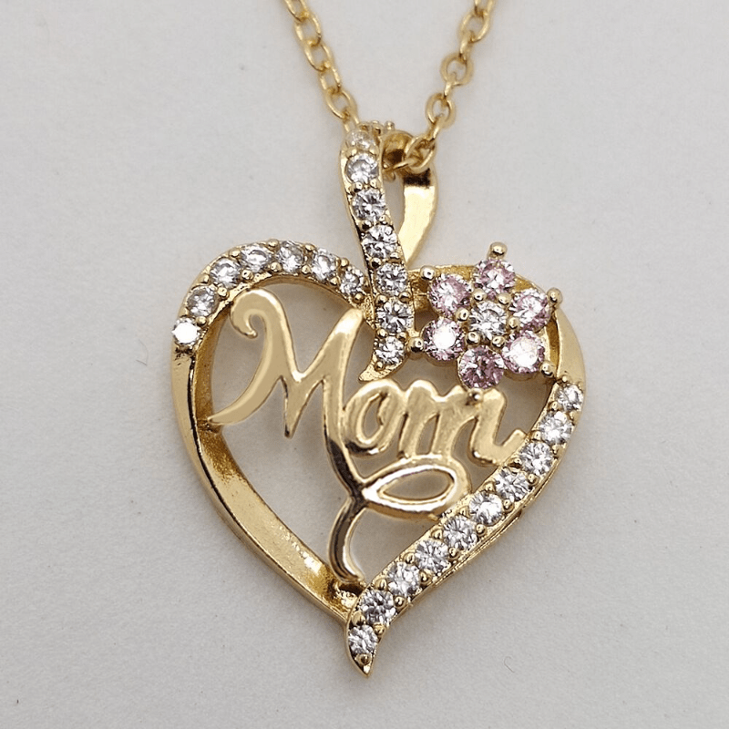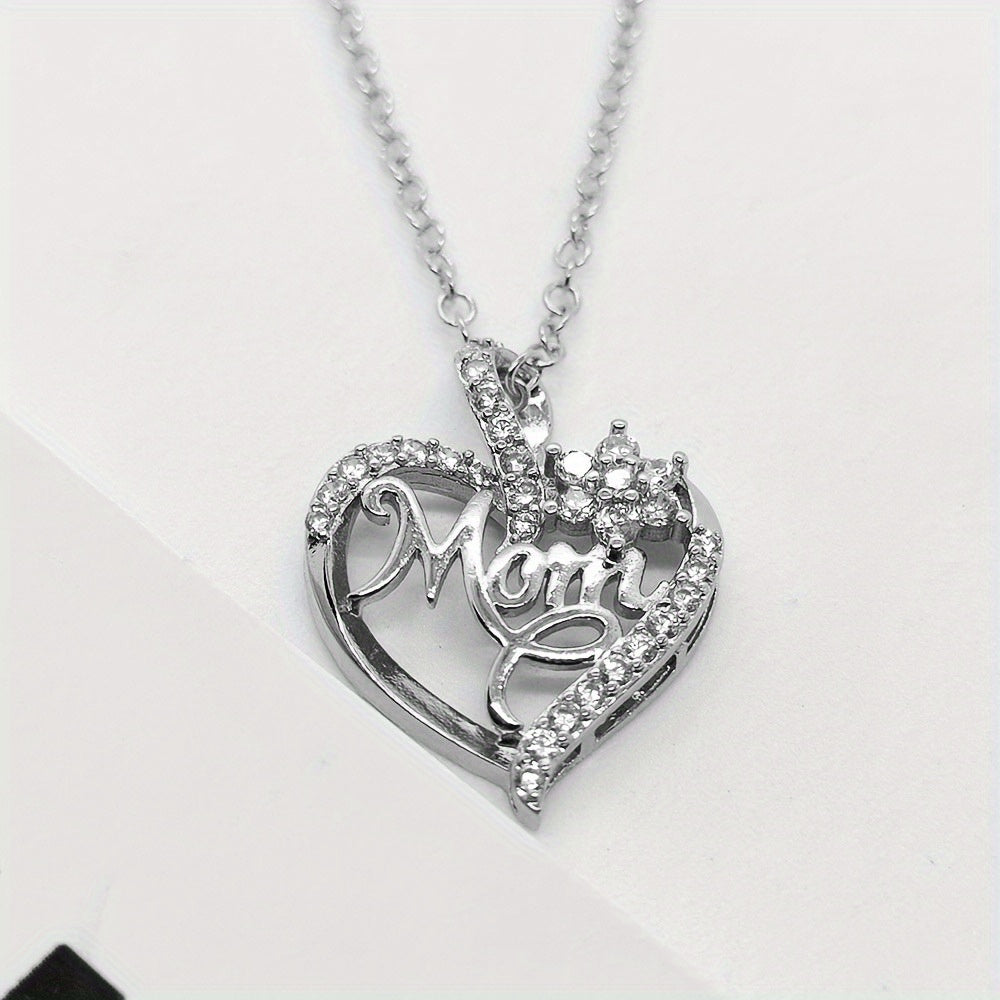 This charming necklace features a heart and flower design with inlaid MOM letter pattern. It makes a perfect gift for mothers.