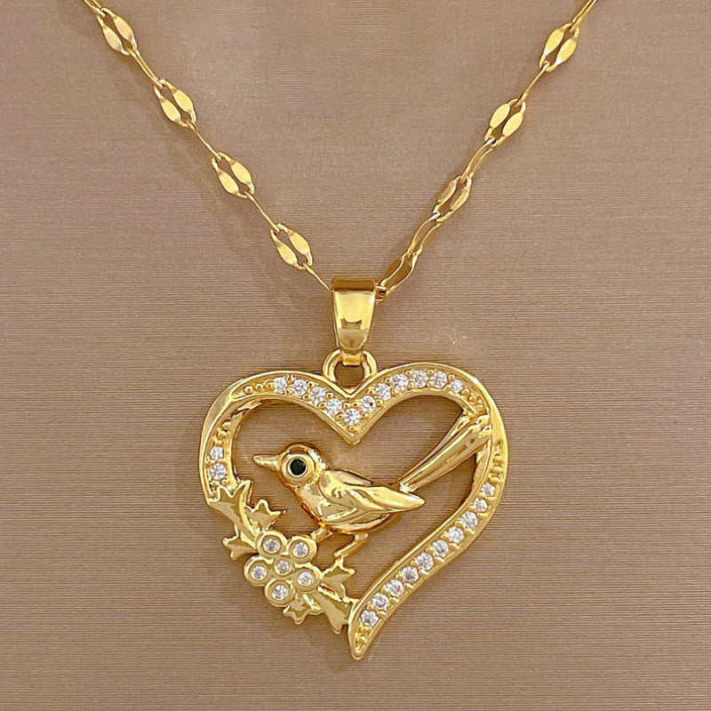 Elegant and charming necklace featuring a golden bird design with full zircon stones on a 14K gold plated chain. Perfect gift for women.