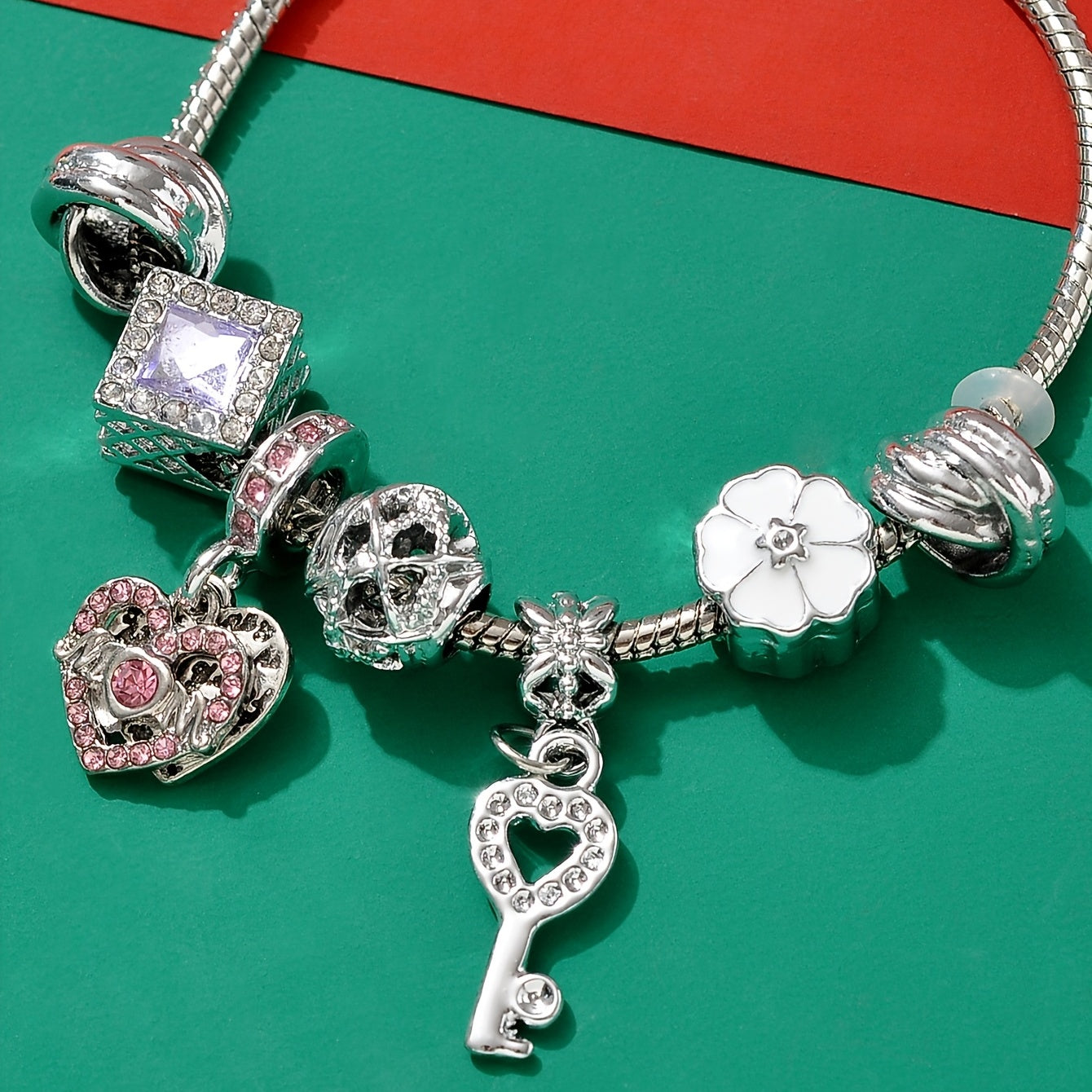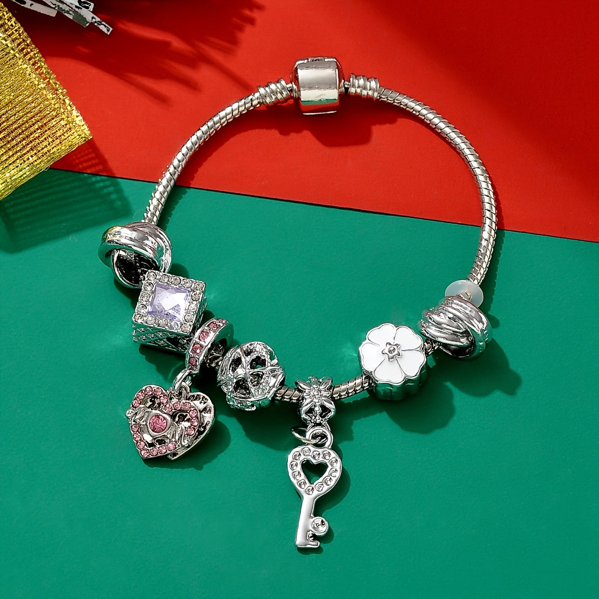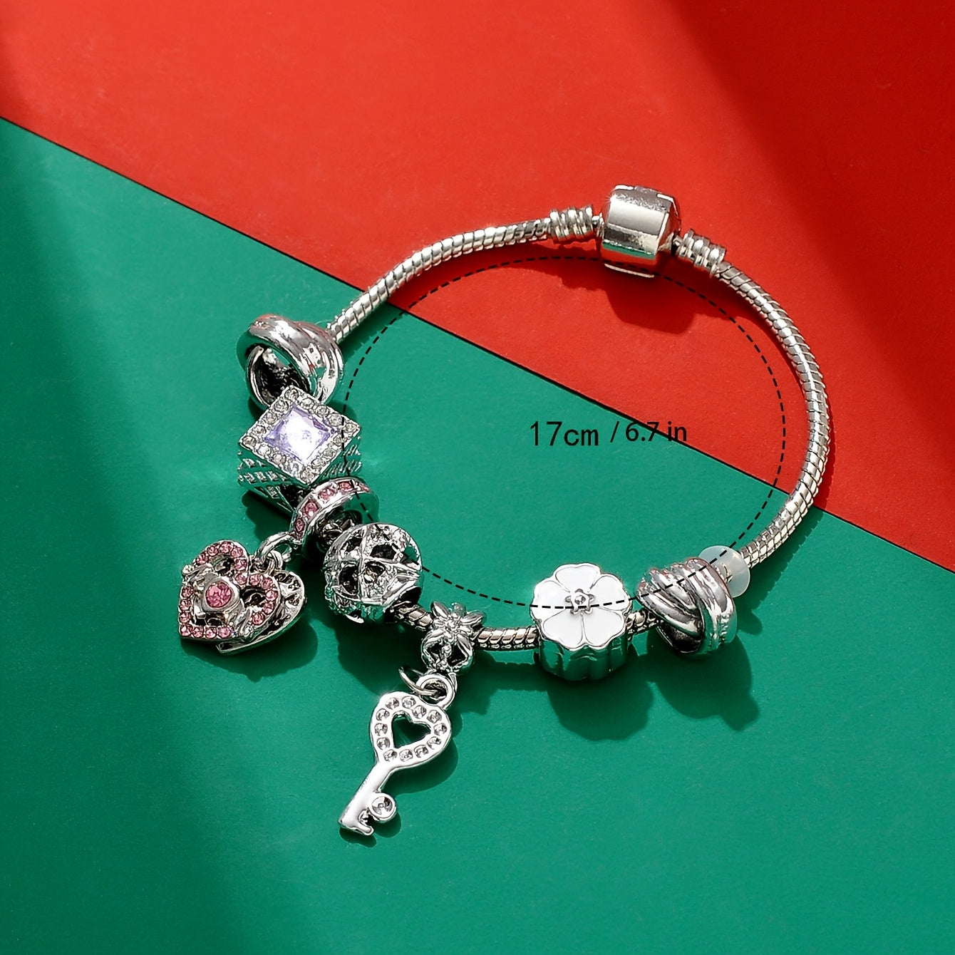 Heart Key Rhinestone Beaded Bracelet Charms Jewelry Gift for Her