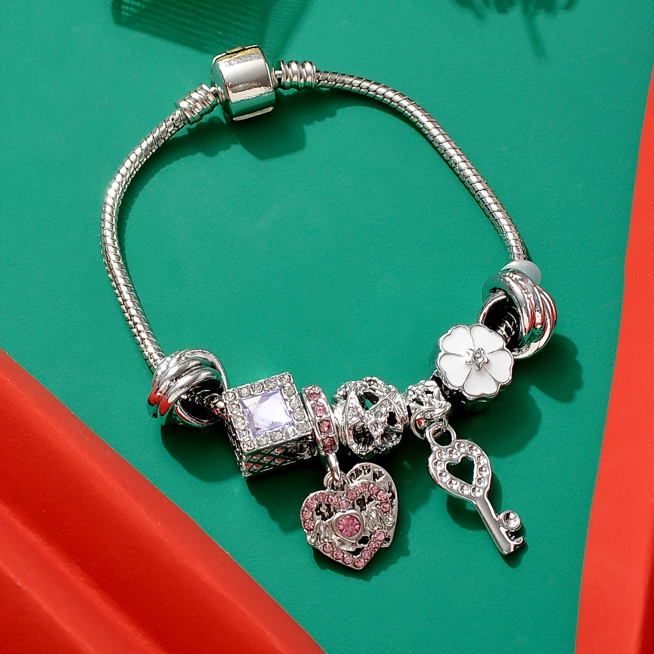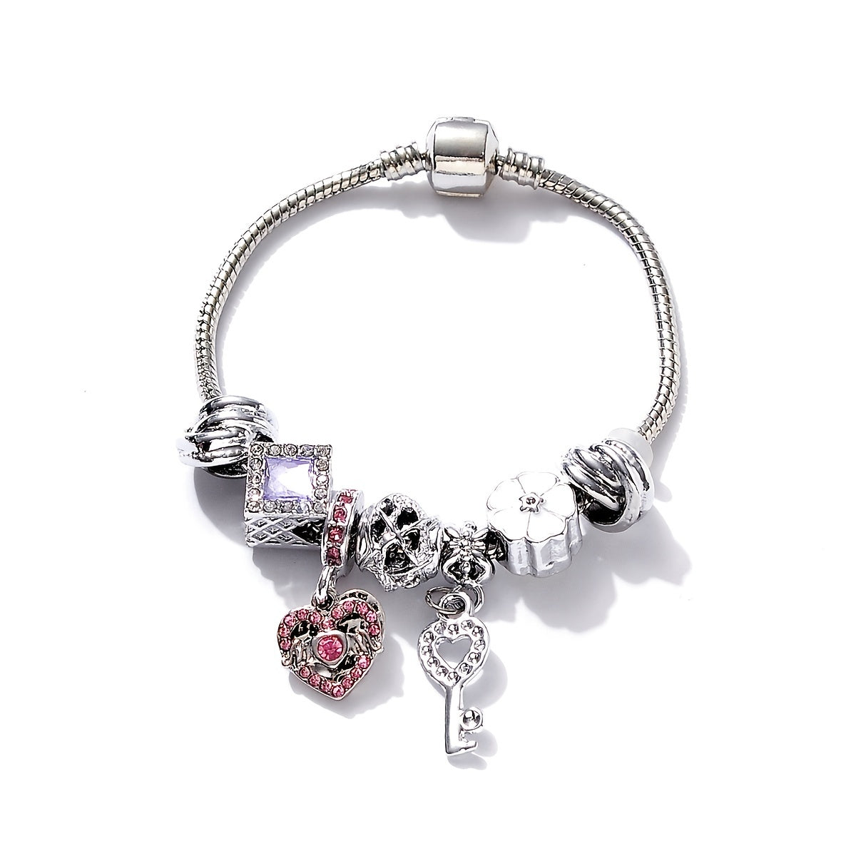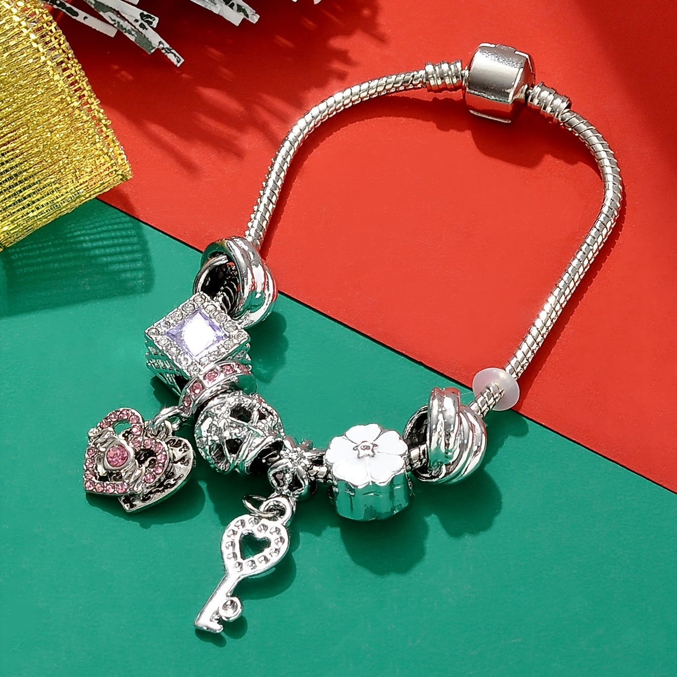 Heart Key Rhinestone Beaded Bracelet Charms Jewelry Gift for Her