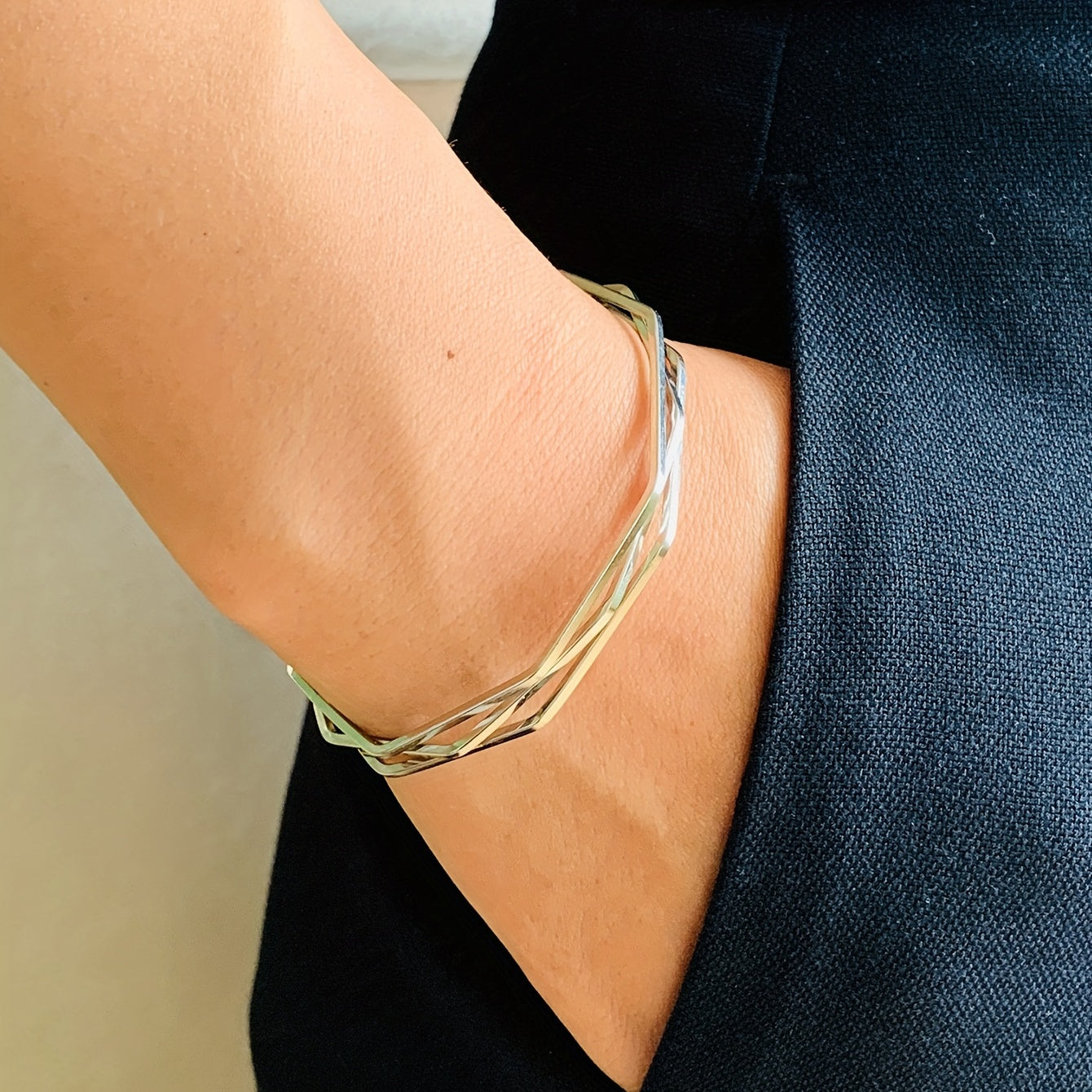 This stunning heart layered twist cuff bangle bracelet is the perfect accessory for daily wear or holiday parties. It adds a touch of elegance to any outfit.