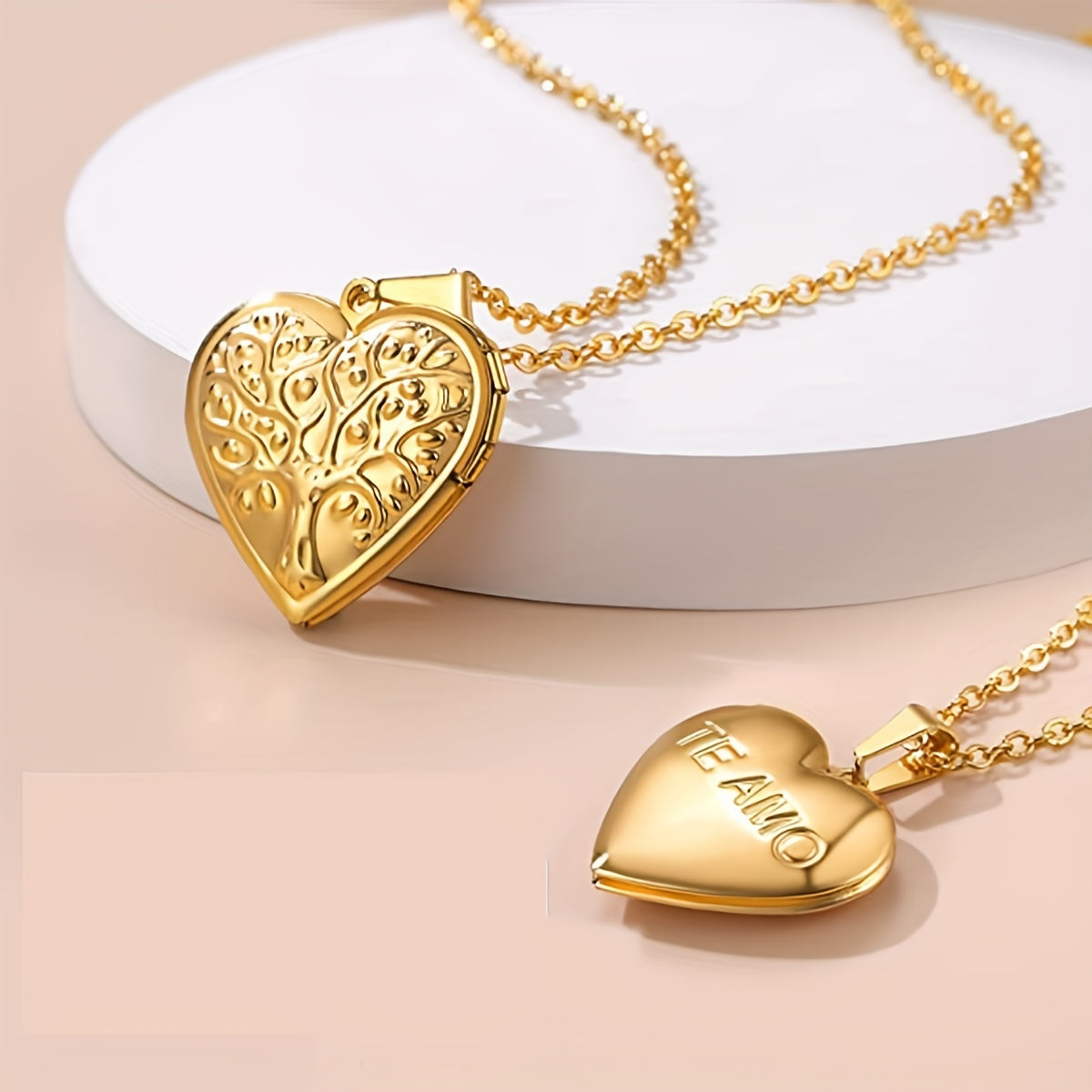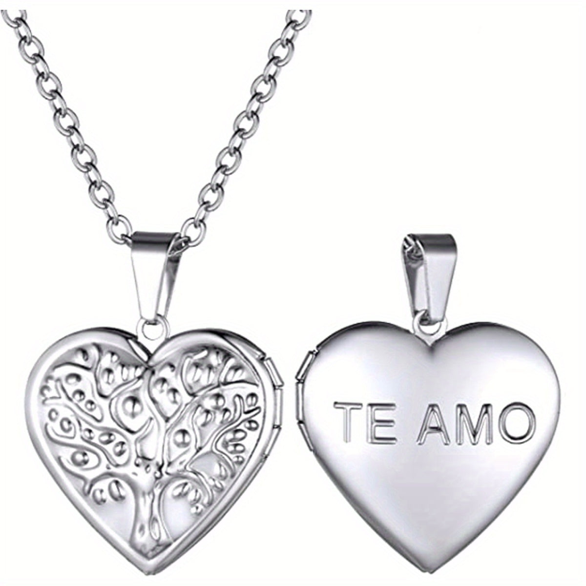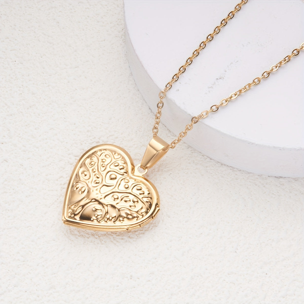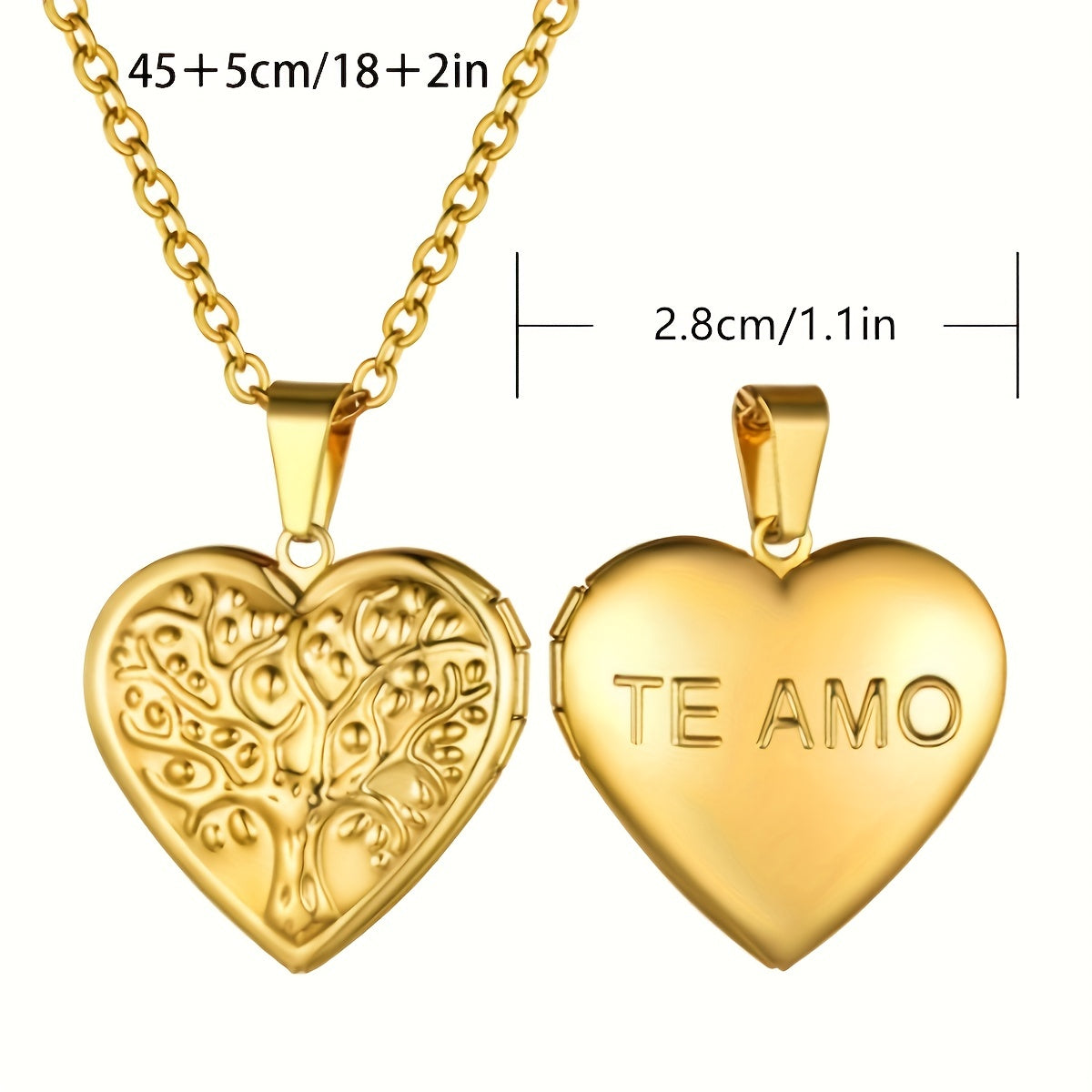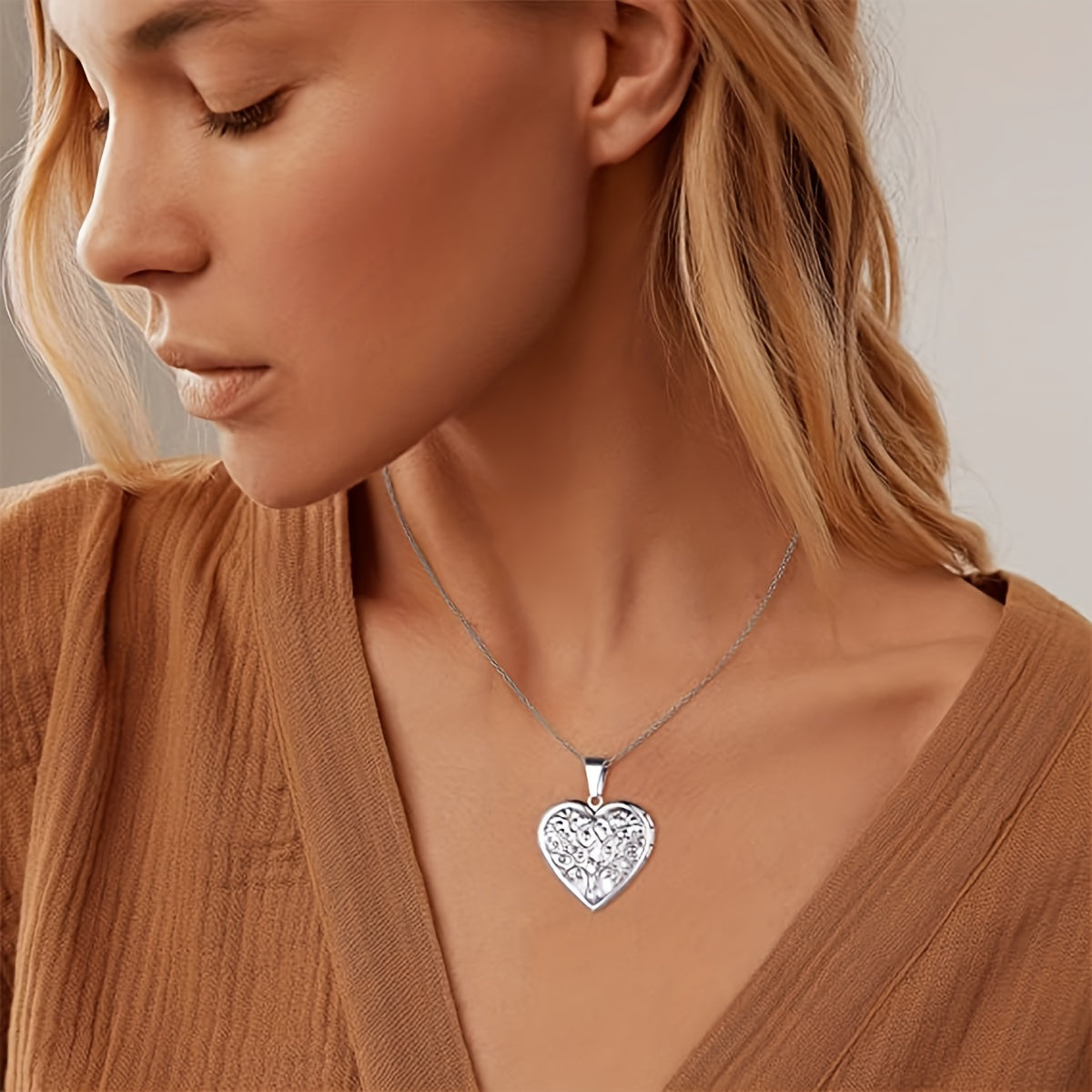 Stainless steel heart locket necklace with tree of life design. A beautiful and elegant piece to hold your precious memories.