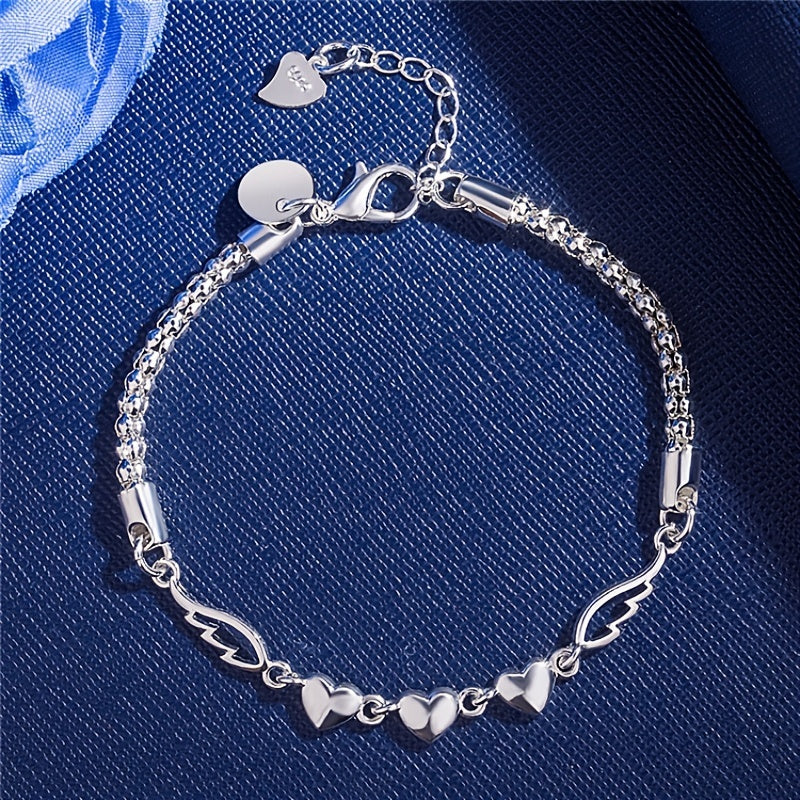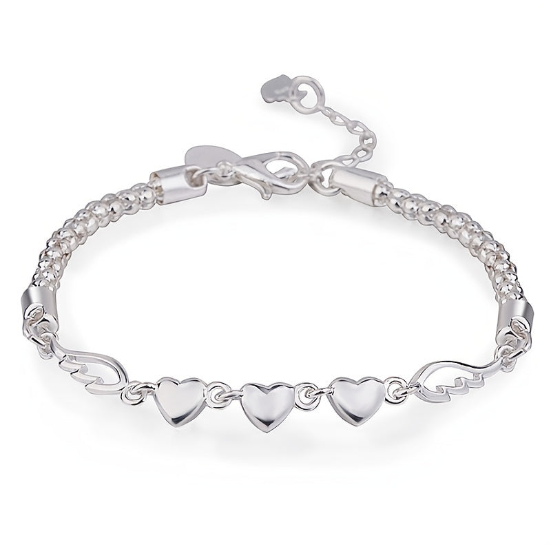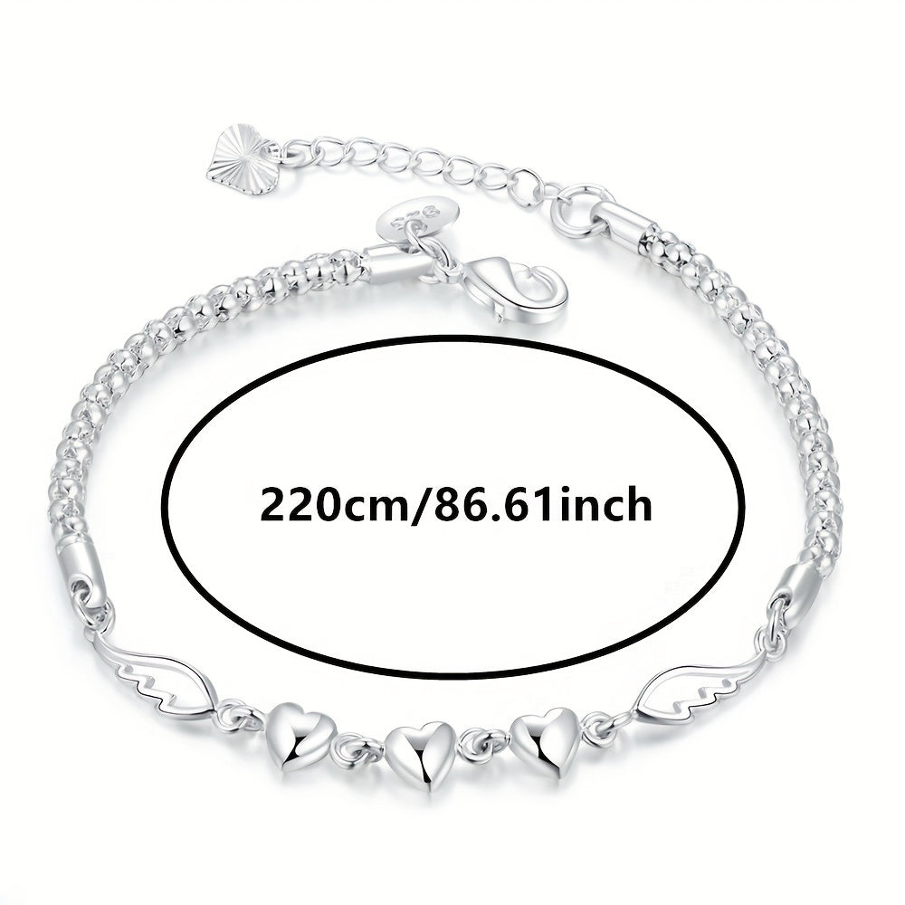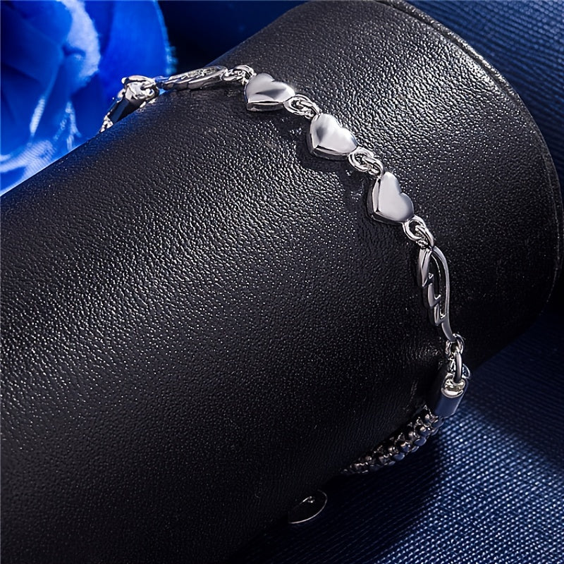 Show your love with this elegant silver plated bracelet featuring heart and angel wings design. Makes a perfect gift for any occasion.